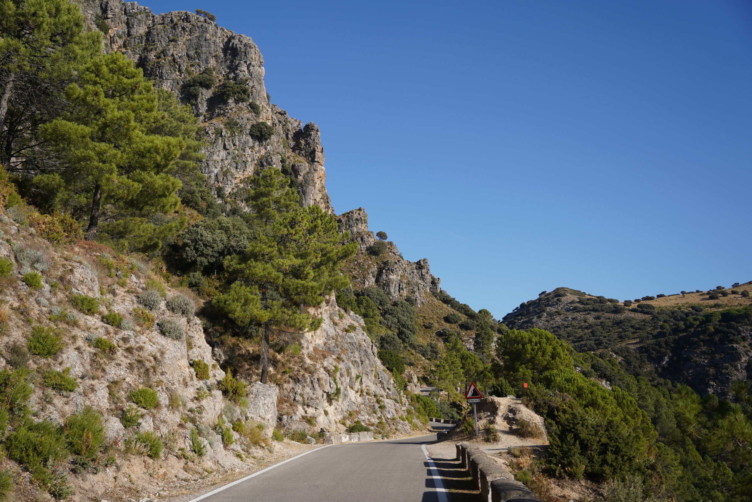 さて肝心のグラサレマからサアラへ歩くための道だが、はっきり言ってめちゃくちゃおすすめのトレッキングルートだった!既述したように基本的にはグラサレマからただひたすらに登り続け、その後サアラに向かってただひたすらに下り続けるのだが、つまりは峠を越える感じなので頂上から見下ろす眺めは素晴らしい絶景だし、10月のスペインアンダルシア地方は雲ひとつない快晴だったし、アスファルトの道は広くて歩きやすく、田舎すぎて車もほとんど通らず歩く人に関してはぼく以外皆無で、本当にスペインの壮大な大地に自分という人間一人だけが対峙しているという心地よさがあった。