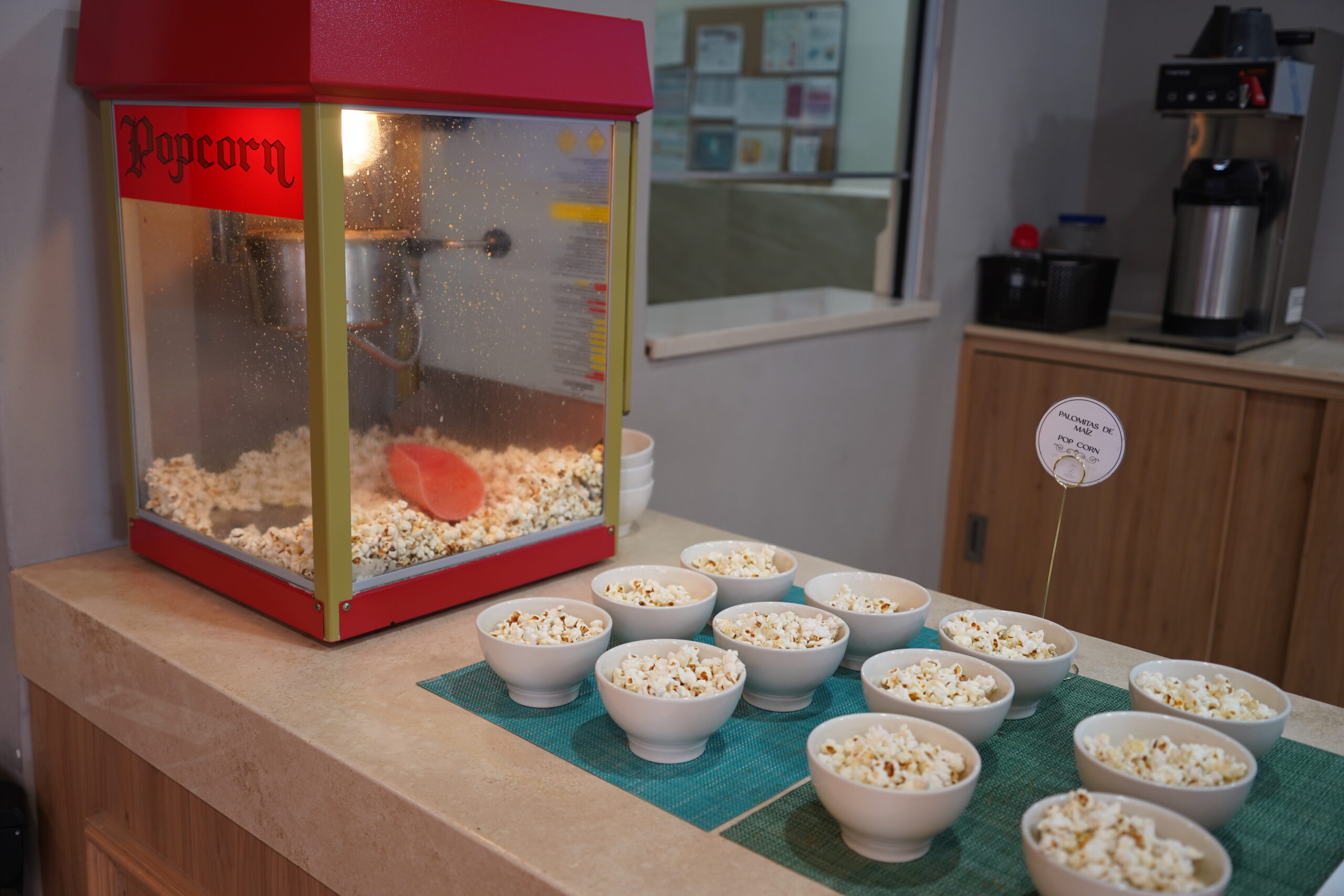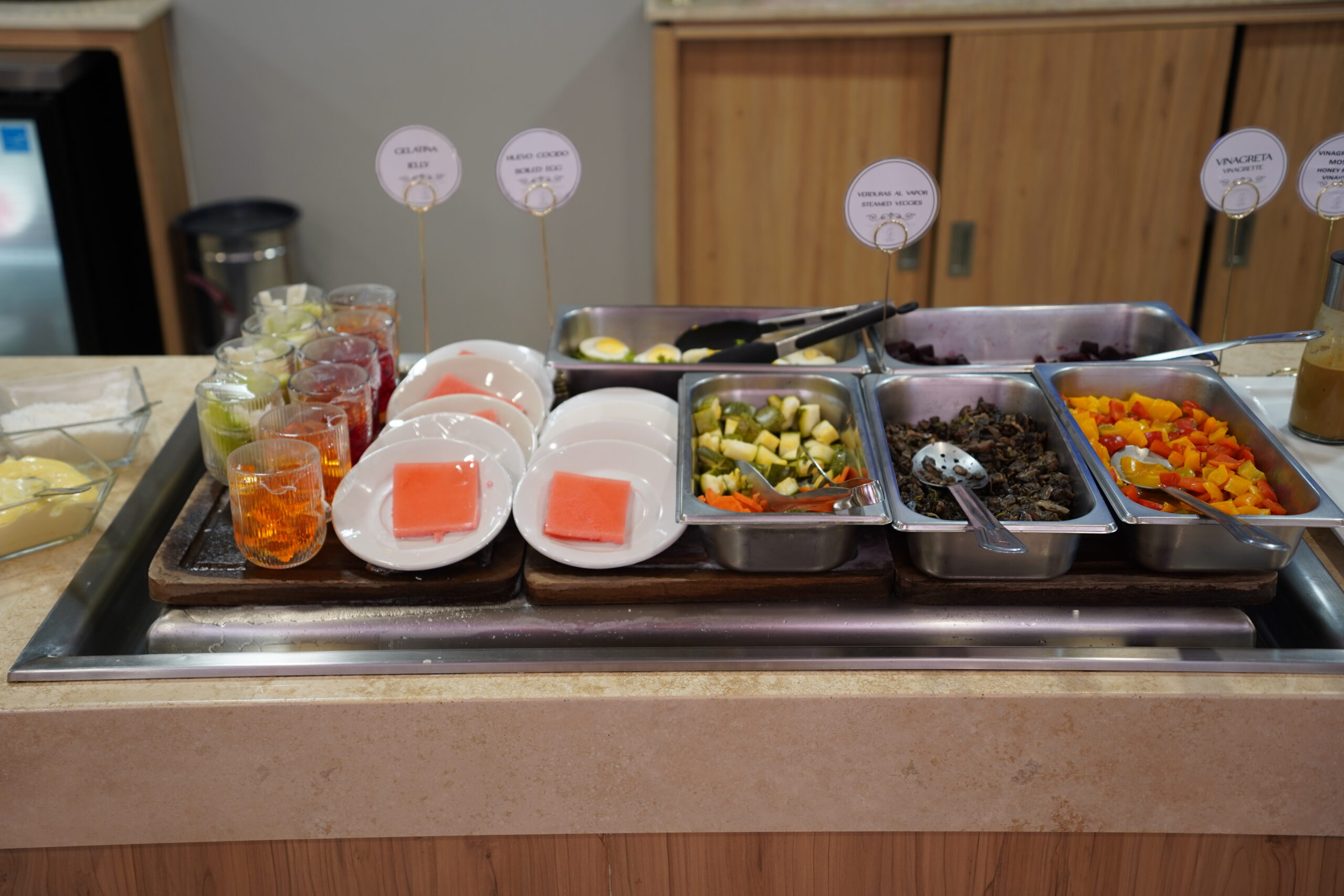 他のラウンジと同様にHacienda Santa Lucia by The Grand Lounge Eliteも食べ放題、飲み放題だったが、食事はビュッフェ形式の他のメニューから食事を選んで出来立ての料理を運んでくれるサービスもあって至れり尽くせりだった。ビュッフェのメニューも豊富で、ぼくの大好きなポップコーンまで並んでいて嬉しかった。