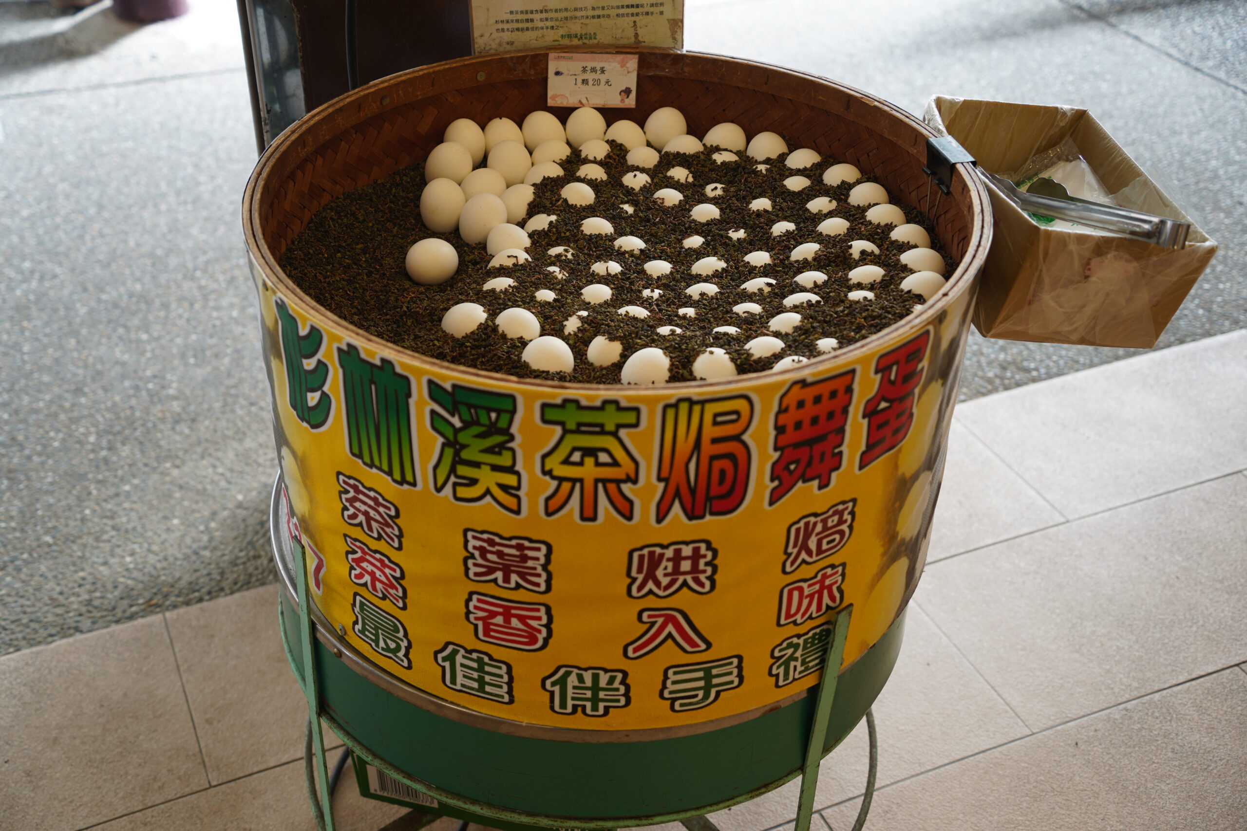 バス停で降りたところにはこんな山奥の秘境にも茶芸館やお土産屋さんがあり、まさに今「台湾茶を巡る旅」をしているのだと実感させられる。烏龍茶で蒸したゆで卵や烏龍茶のソフトクリームなど珍しい商品を眺めながら、松滝岩滝への方角を指し示す看板に従って歩みを進めていく。
