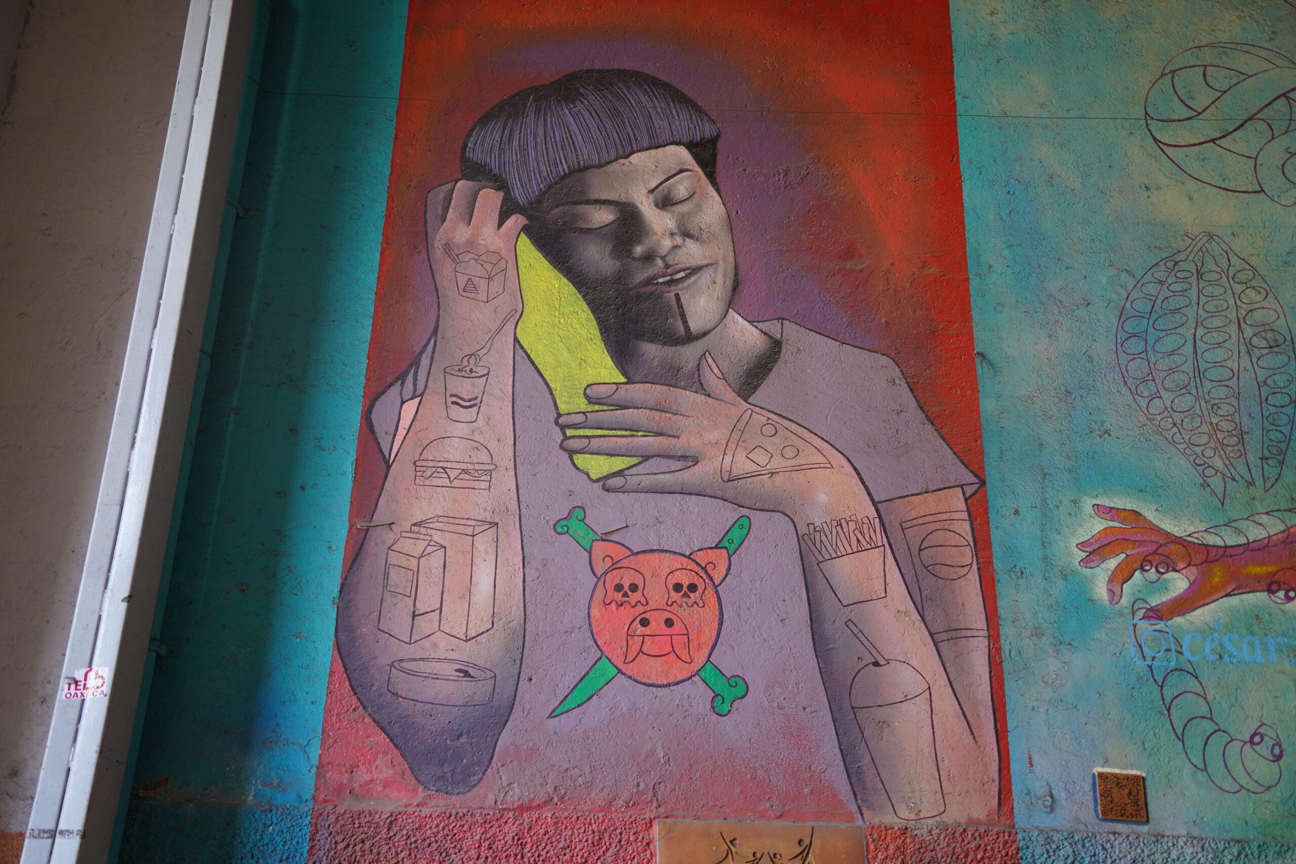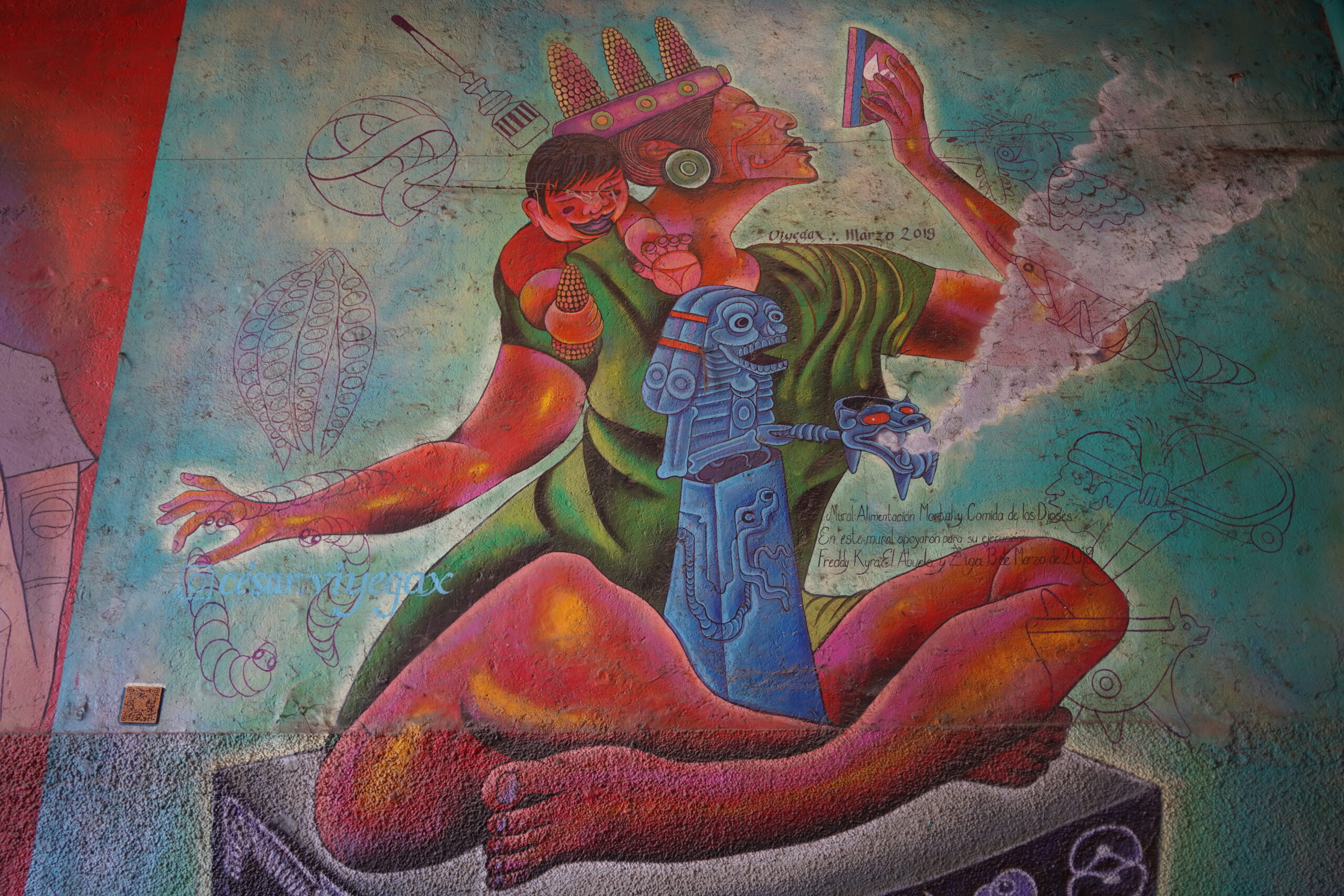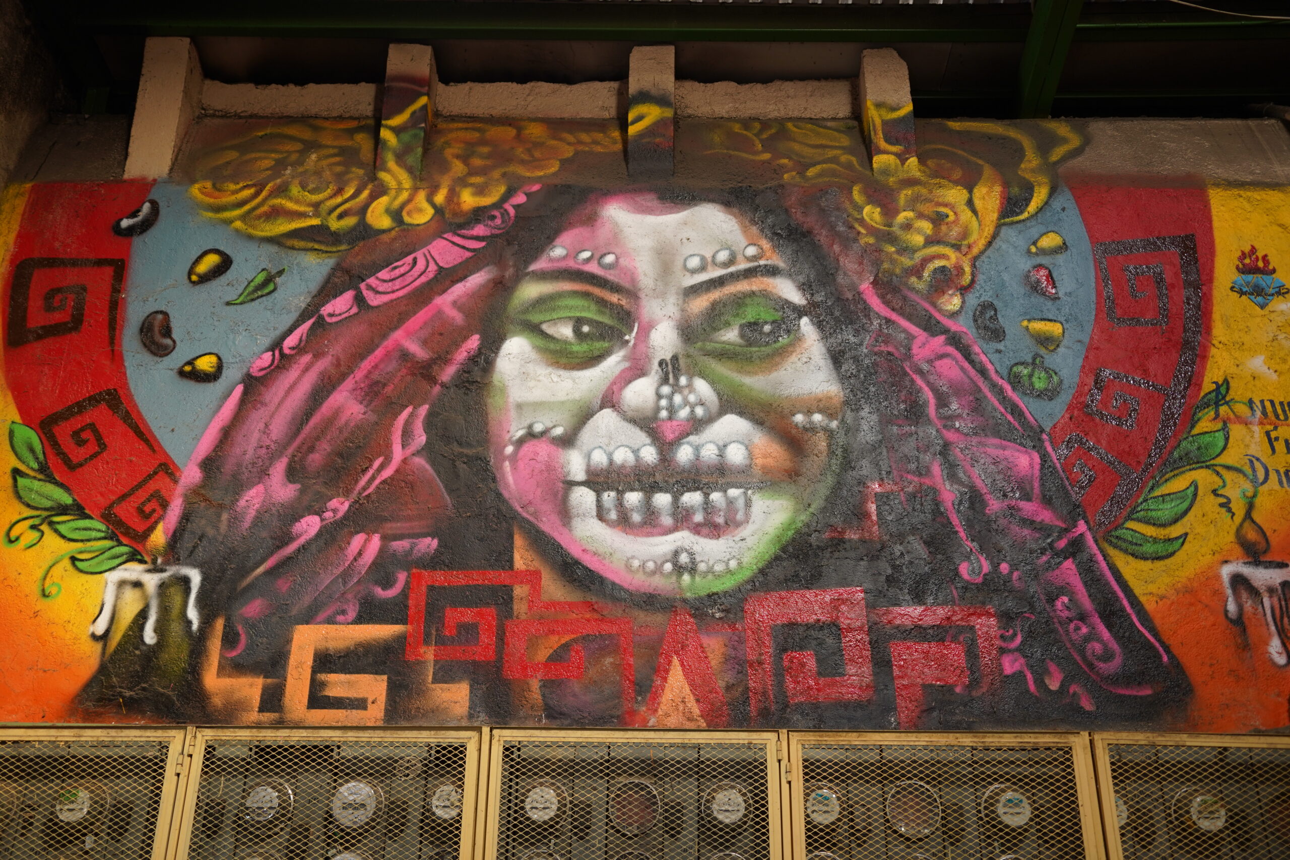 街中に描かれた壁面のメキシコらしい巨大絵画は、見応えがあって大迫力だった。オアハカはメキシコで初めての街だったので、メキシコとはどのような場所なのか、どんな文化や風習を持って人々はどんな感性で生きているのかということを、多種多様のアーティスティックな壁画から学び取ることができた。