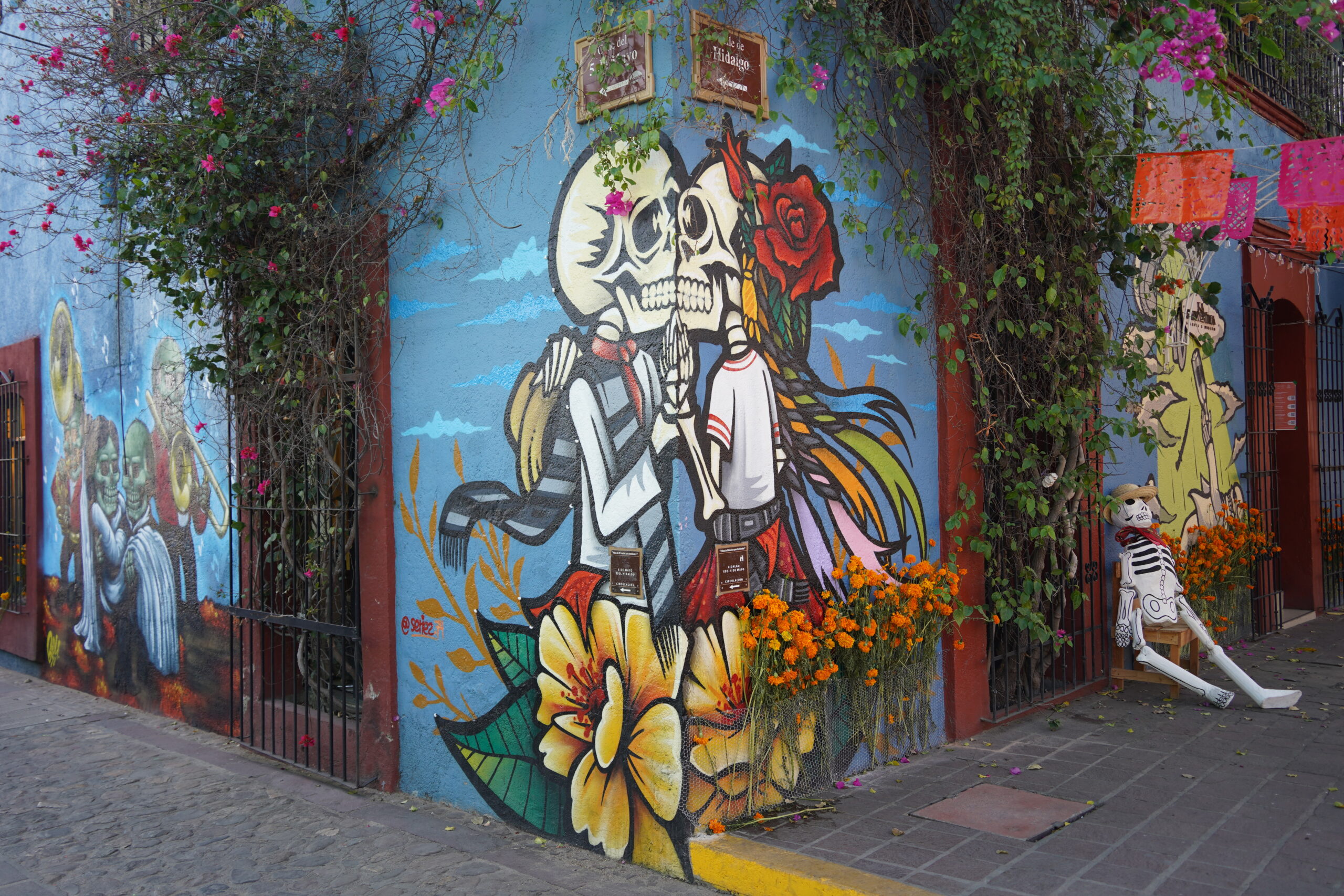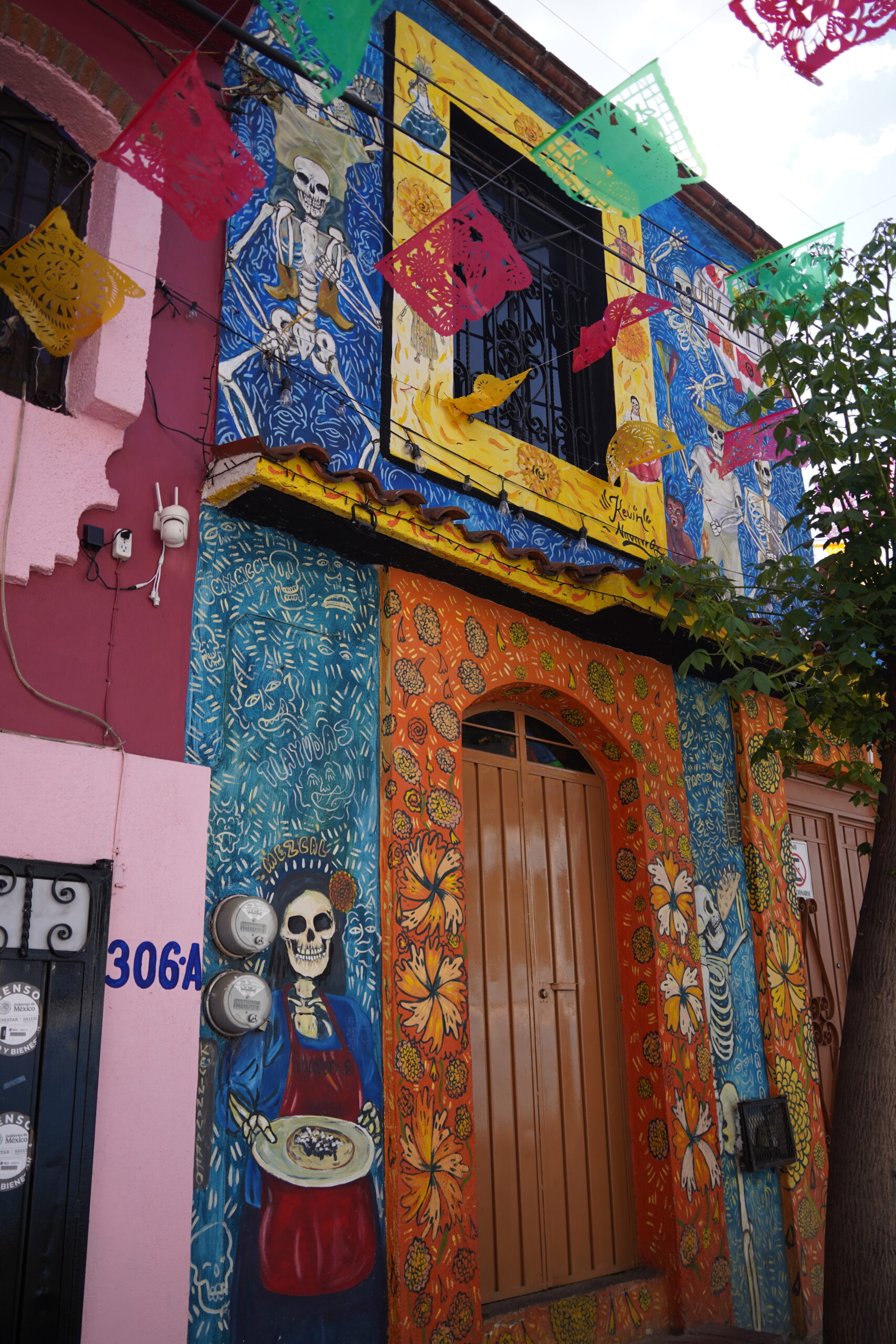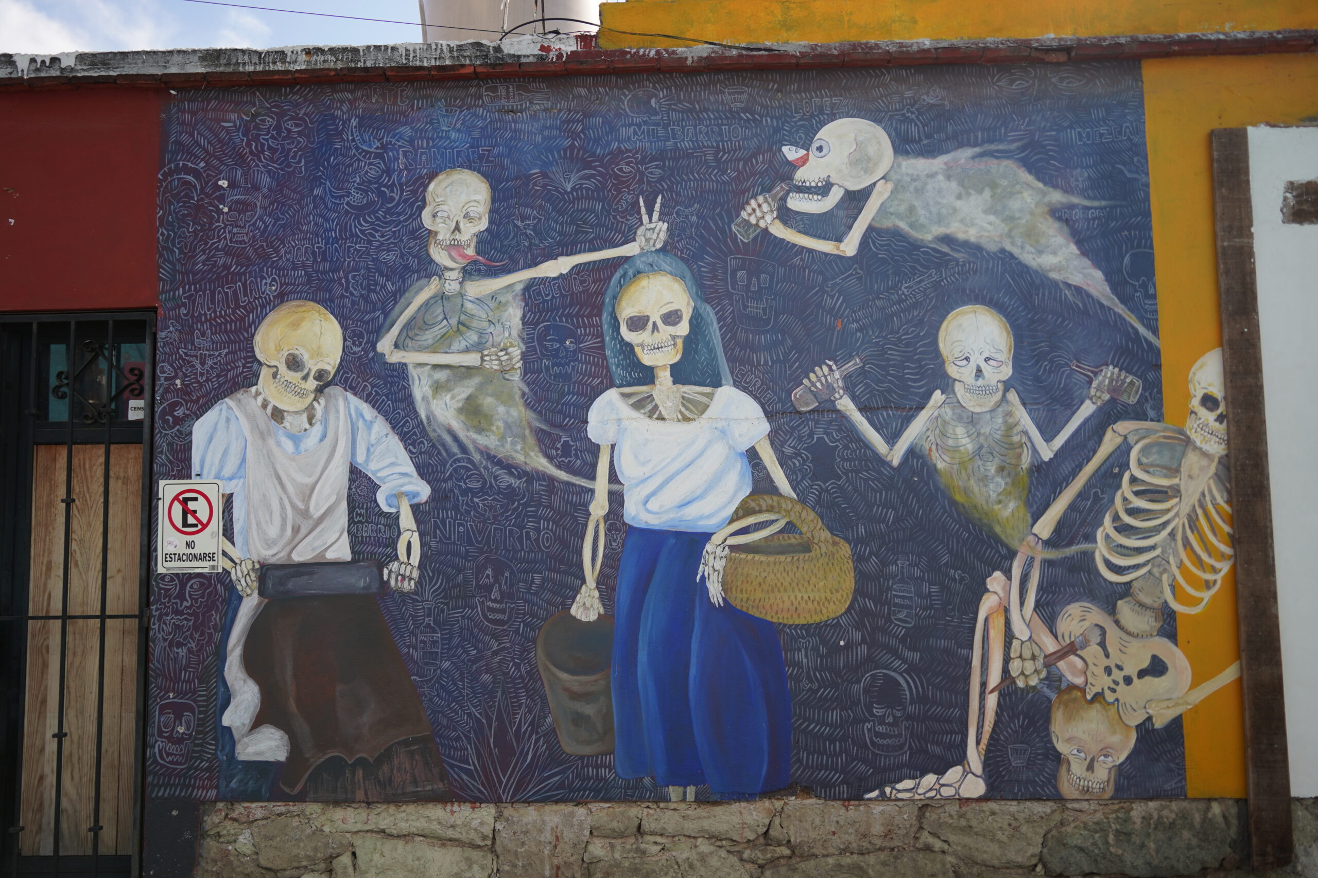 さらに「死者の日」にオアハカを訪れたこともあり、ぼくが訪れた時のハラトラコ地区は骸骨やドクロなど「死者の日」らしいアートで溢れていて、ますます活気のあるフォトジェニックなスポットになっていた。