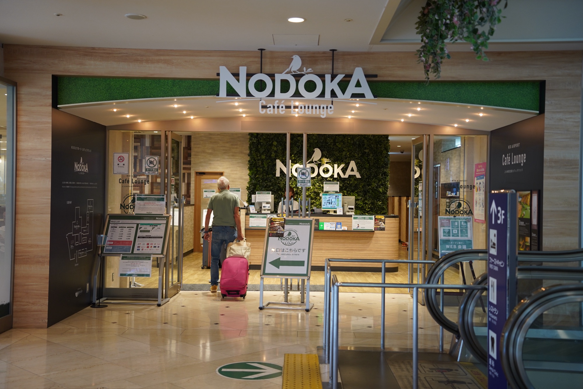 まず訪れたのはエアロプラザにあるKIX Airport Cafe Lounge NODOKA。エアロプラザは鉄道駅を挟んで関空の反対側にある建物なので、関空でチェックインしてフライトチケットを入手してからラウンジに来るというかなり面倒臭いことをしなければならないのかと心配したが、当然そんなことをする必要はなくスマホでeチケットを見せるだけで入れてくれた。