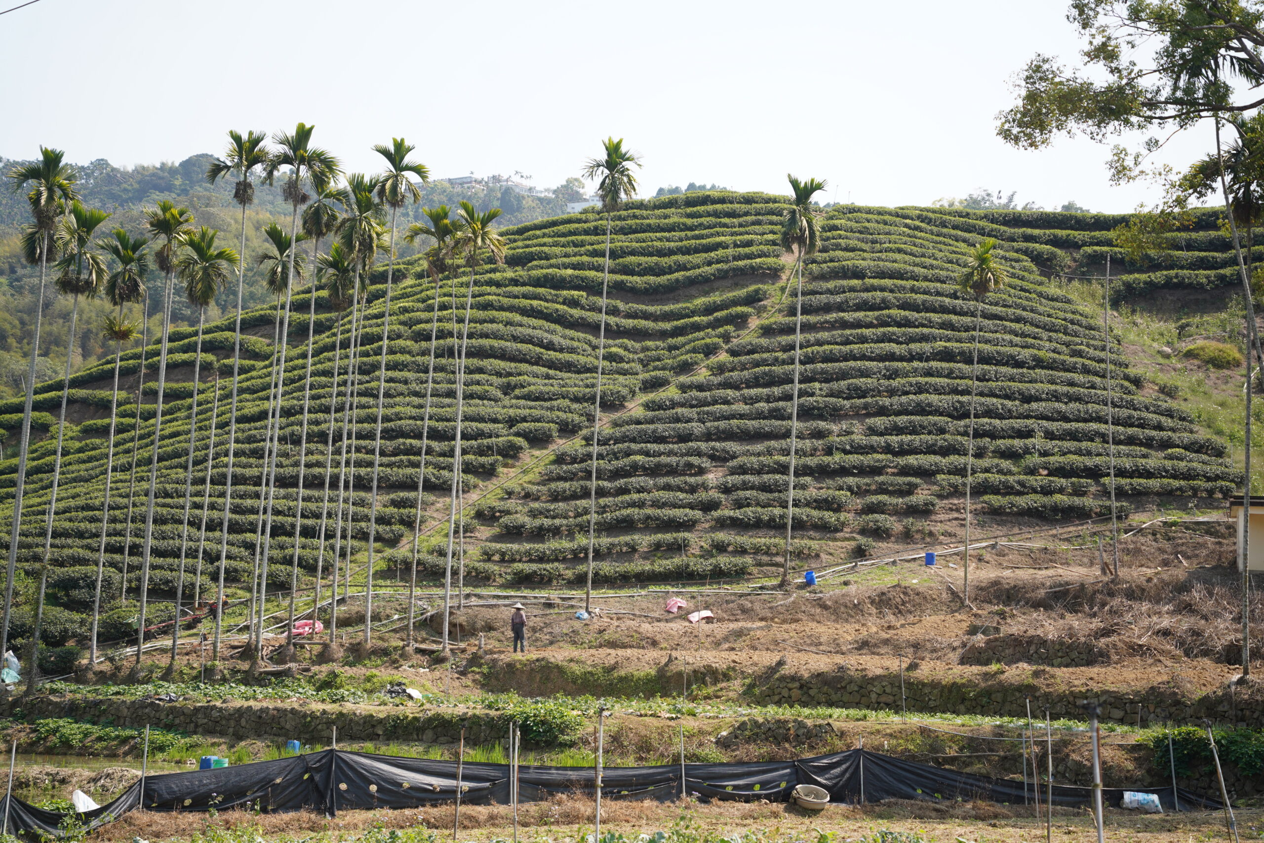 しかし鹿谷郷農会茶業文化館へと戻る道沿いに立派な茶畑を発見することができたので、結果的に降り損なってよかったと感じた。きっとこれは凍頂烏龍茶の茶畑なのだろう。憧れの凍頂烏龍茶の産地までやって来て、その茶畑を実際に見ることができるなんて感動的だ。昨日訪れた杉林渓では断崖絶壁に作られた大迫力の茶畑をバスの車窓から遠目に眺めることができただけだったが、今日はすぐ目の前に美しい凍頂烏龍茶の茶畑が広がっていて、今まさに「台湾茶を巡る旅」をしているのだと実感する。