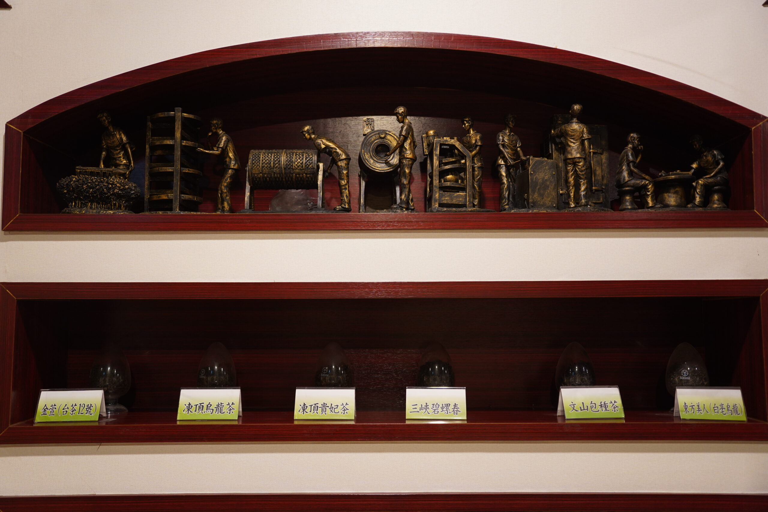 鹿谷郷農会茶業文化館ではまずお茶のショップに立ち寄り、凍頂烏龍茶を試飲させてもらった。ここでは毎年凍頂烏龍茶のコンテストが開催されているらしいが、残念ながら1位になった茶葉は既に売り切れてしまっているらしい。コンテストの結果が発表されたらすぐに買いに来なきゃいけないのかな。コンテスト1位の凍頂烏龍茶ってどんな味がするのか、いつか飲んでみたい。