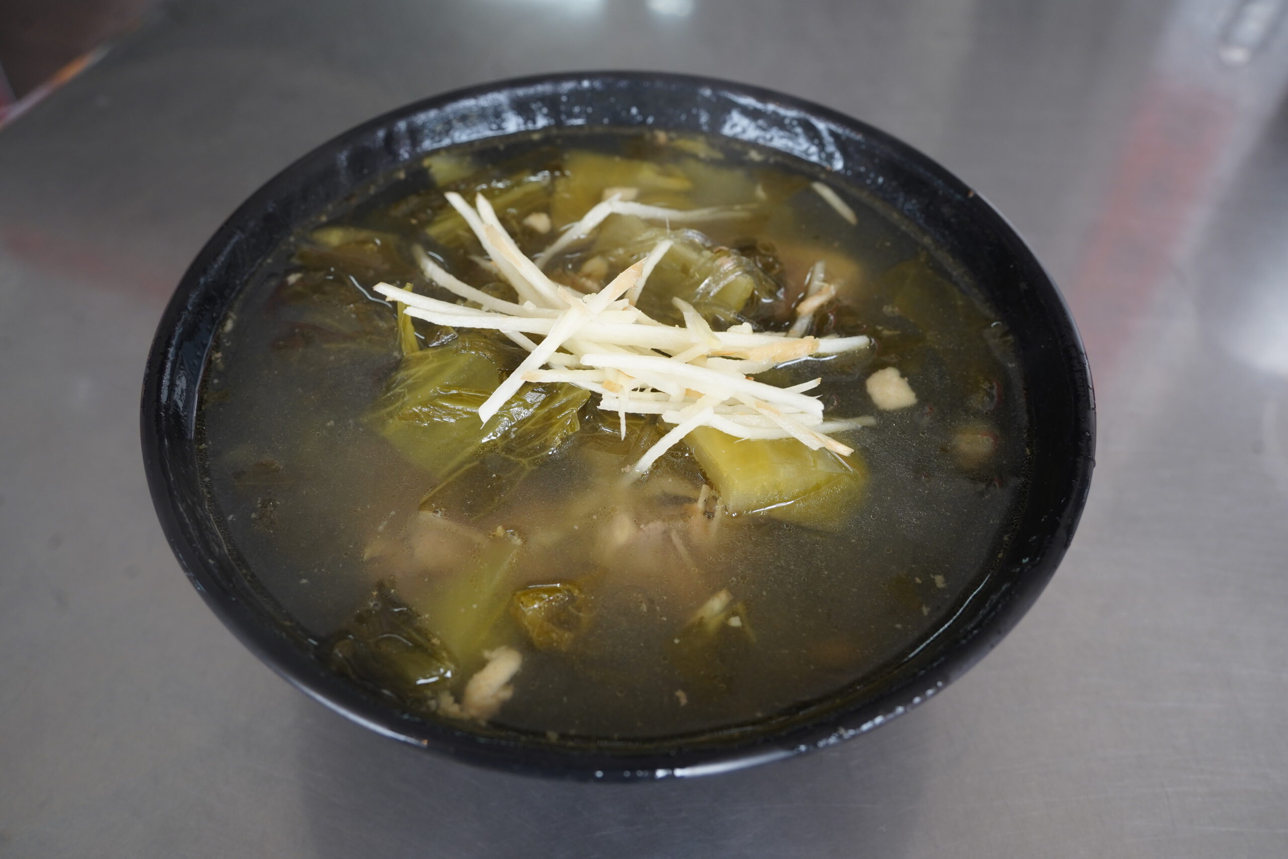 「鹹菜鴨冬粉」というものを何かわからないまま注文してみた。きっと鴨の肉みたいなのが乗っているんだろうけど、冬粉って何だろうと不思議に思っていたが、実際に来たのを食べてみると透明な麺でマロニーみたいな感じだった。中国語ではマロニーを冬粉と言うのかと、またひとつ賢くなった。
