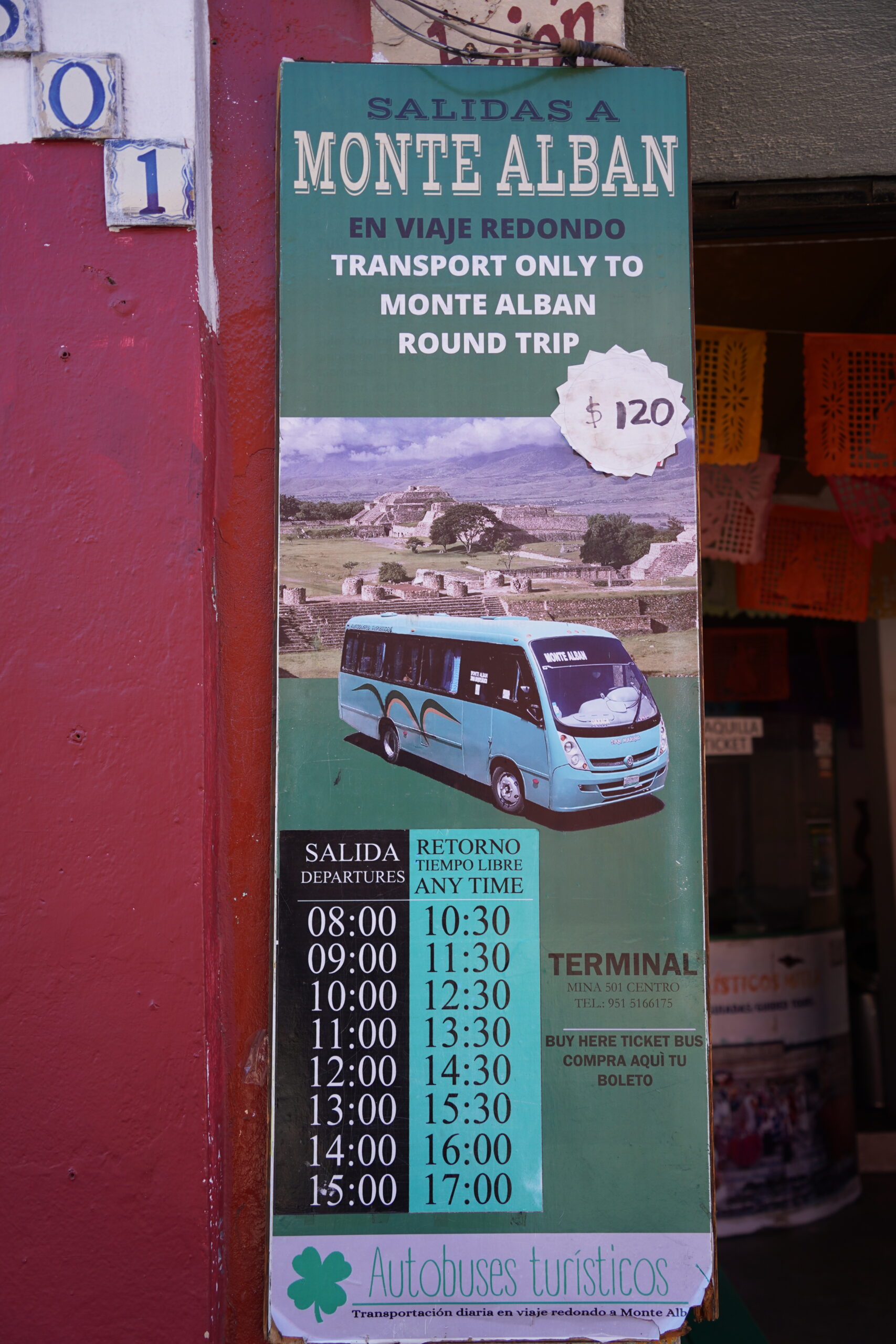 ★重要★オアハカからモンテ・アルバンへのバス時刻表