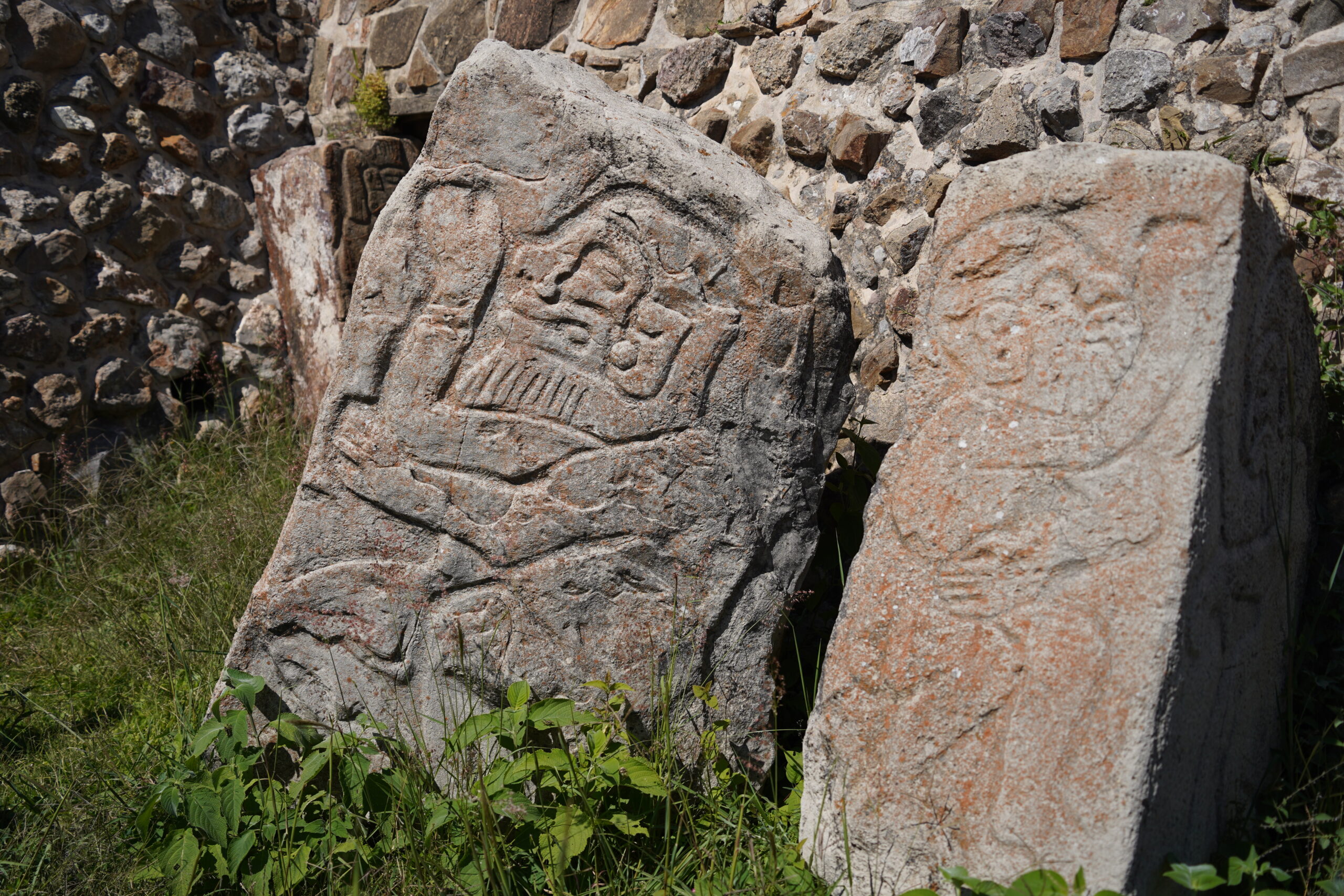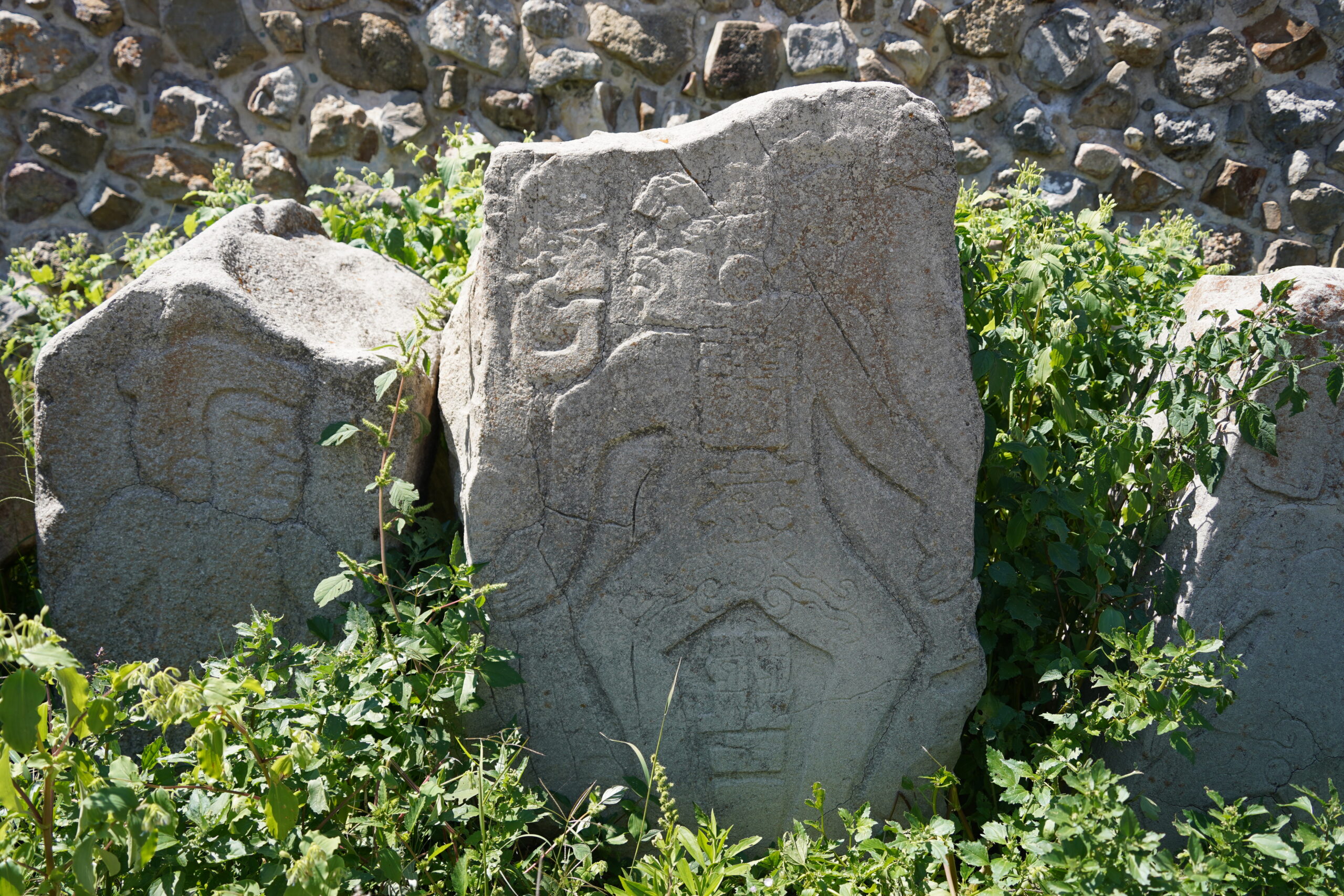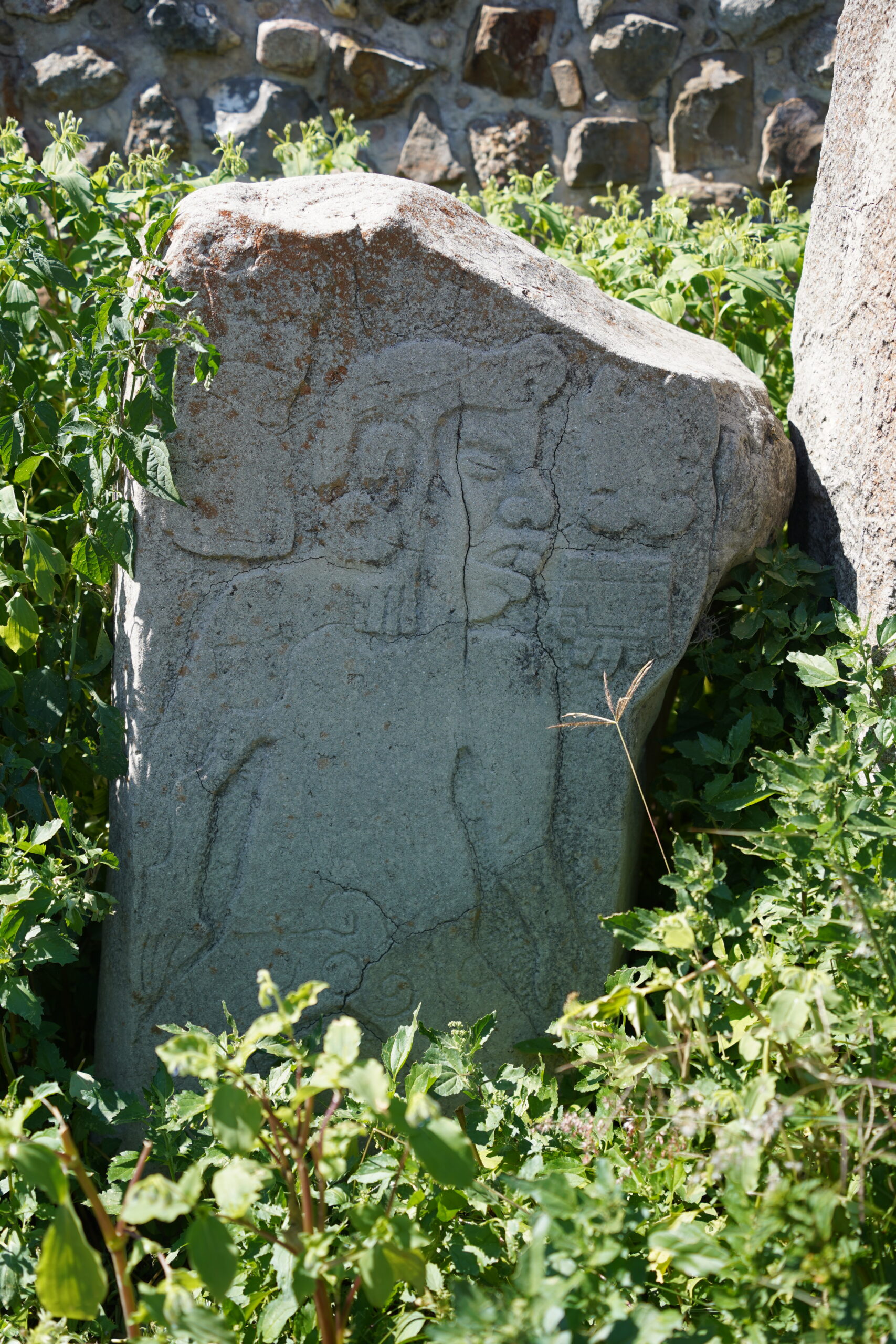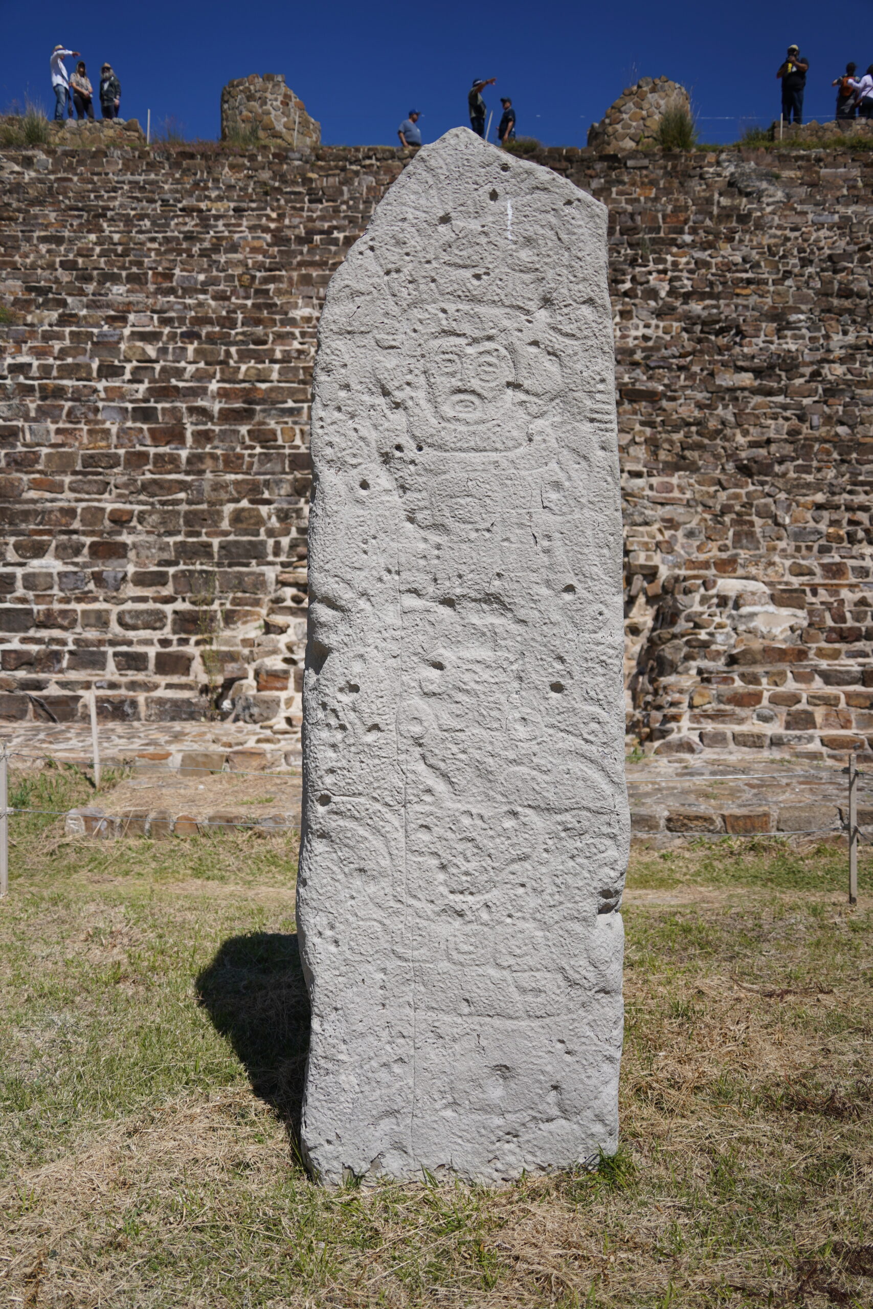 モンテ・アルバンで最も印象的だったのは「踊る人々のピラミッド」だ。ここはモンテ・アルバン最古の建造物のひとつで、壁面には300枚の巨石壁板に踊る人々のレリーフがあった。今はその複製が地面に並べられて、いくつも展示されている。踊る人々の壁画と聞くと何だか愉快で楽しそうな印象だが、実際に見てみると何だかどれも怖くて恐ろしい形相をしているように見えた。まぁ遥か古代の異文化の世界観だから感覚が違ってそう見えるだけかもしれないとも思ったが、ほとんどのダンサーの股間にクルクルや波のような模様が刻まれていたのも気になった。これは一体何を意味しているのだろうか、男根が新たな生命を生み出す神秘的な創造力を古代メキシコではこのように表現するのだろうか、しかしそれにしては男根がどこにも描かれていないのは不自然だ。