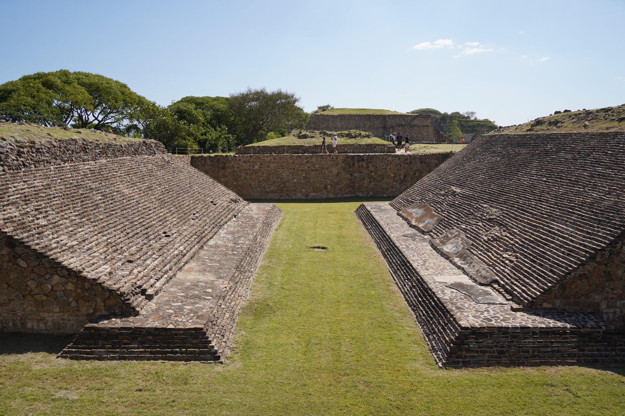 他のメキシコ遺跡でもよく見かける球技場が、ここモンテ・アルバンにも存在していた。マヤ文明やトルテカ文明と同じスタイルだが、ボールを入れるはずの石の輪がここモンテ・アルバンでは見つかっていないという。