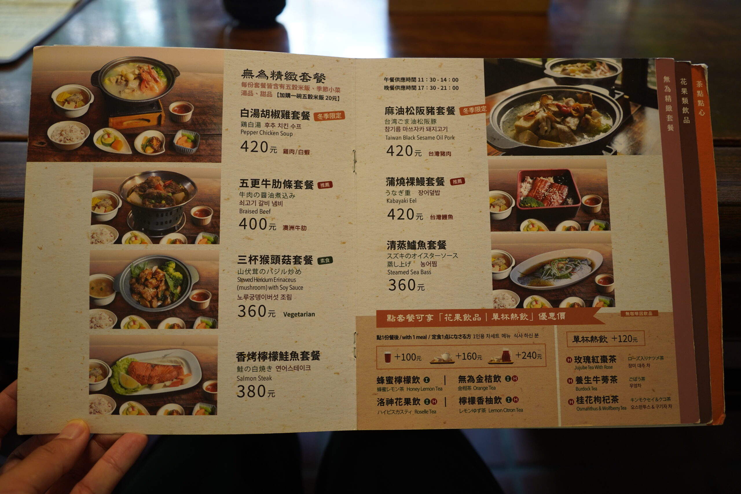 「無為草堂」のメニューはこんな感じ。台湾にしたらかなりの高級でやっぱり茶芸館はお金がかかるが、台湾にしかないこの特別な雰囲気を楽しむためには致し方ない。ぼくは今回ランチで訪れたので蜂蜜レモン茶(正確にはお茶ではない)を注文し、典型的な台湾茶を注文しなかった。なぜなら今日はこの後すぐにホテルに戻って、日月潭という場所へ移動しなければならないからだ。今日1日ゆっくりできる時間を確保できていたならば、せっかくなので台湾茶を楽しんだだろう。