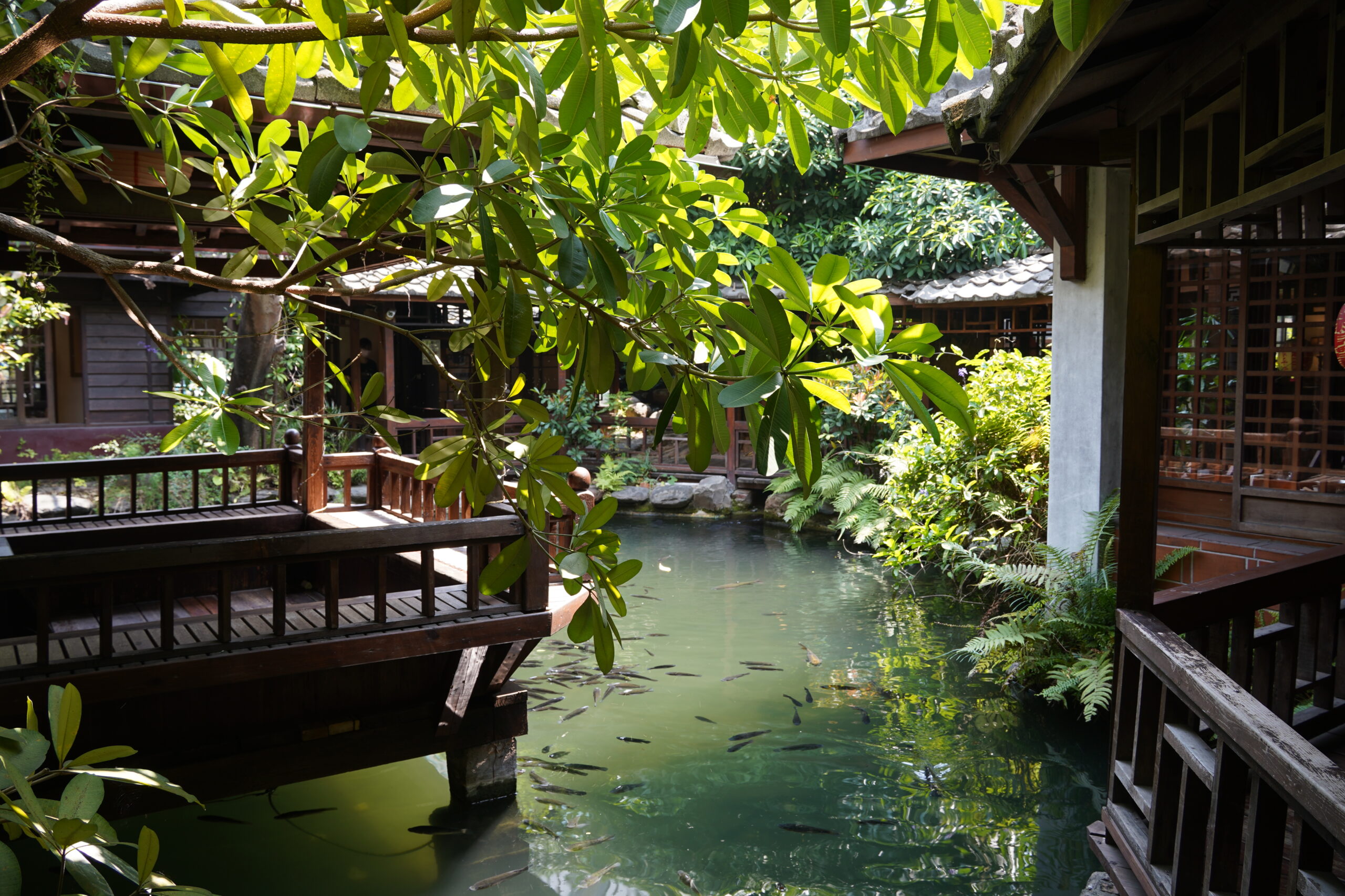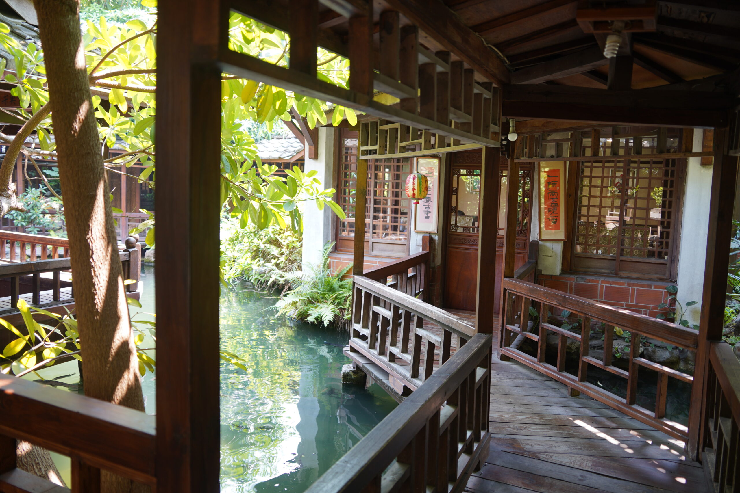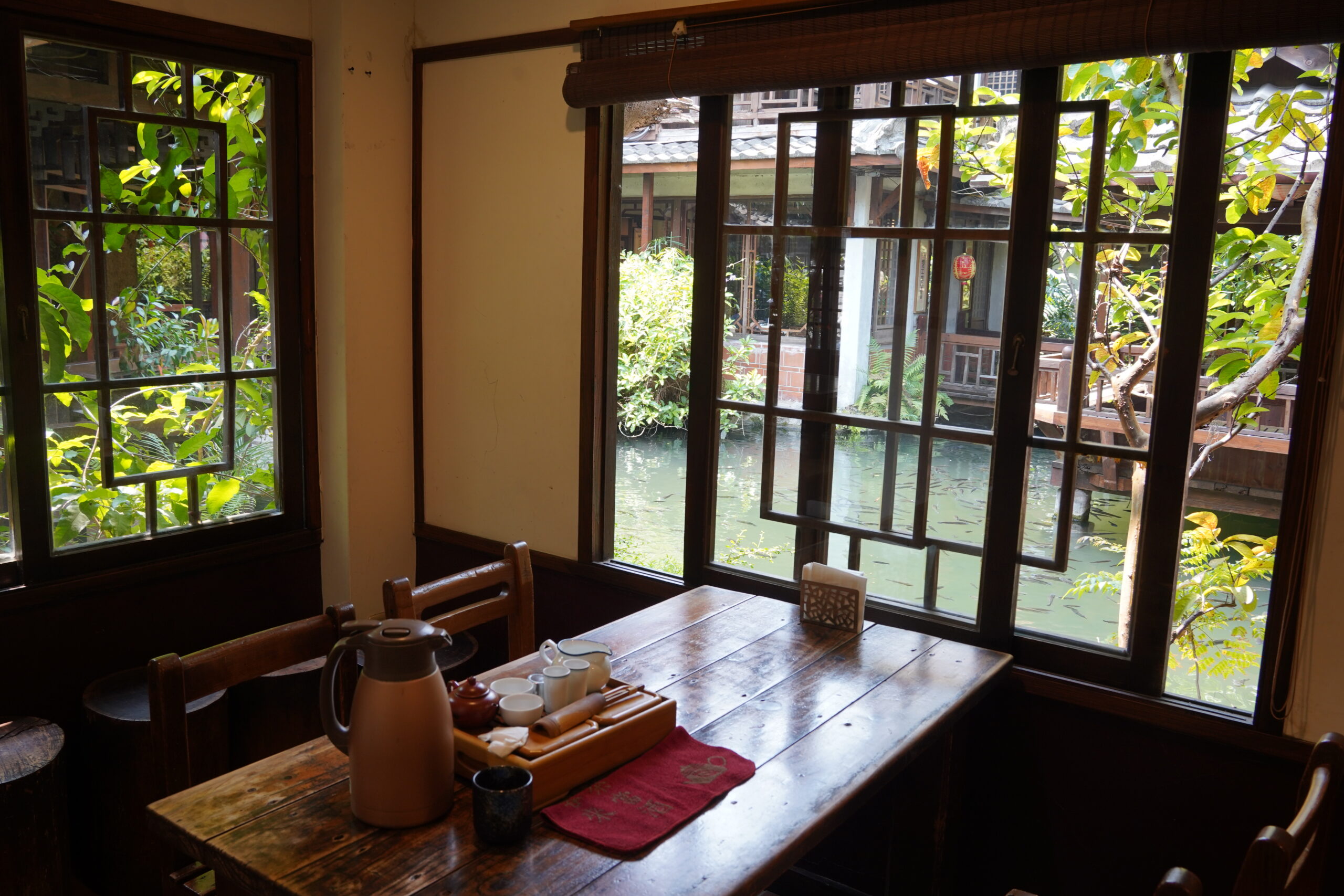 「無為草堂」はレトロ中国的な木造の建築物で構成されており、中には大きな池の中に鯉が泳いでいたり山奥の清流のように水が流れ落ちていたりして、そんな優雅な雰囲気の中で台湾茶や食事を楽しむことができる。まさにこれこそ台湾の茶芸館の真骨頂という風格を醸し出しており、そのような風情のある空間で台湾茶を飲んでいるとまるで古代中国にタイムスリップしたかのような感覚を味わえる。