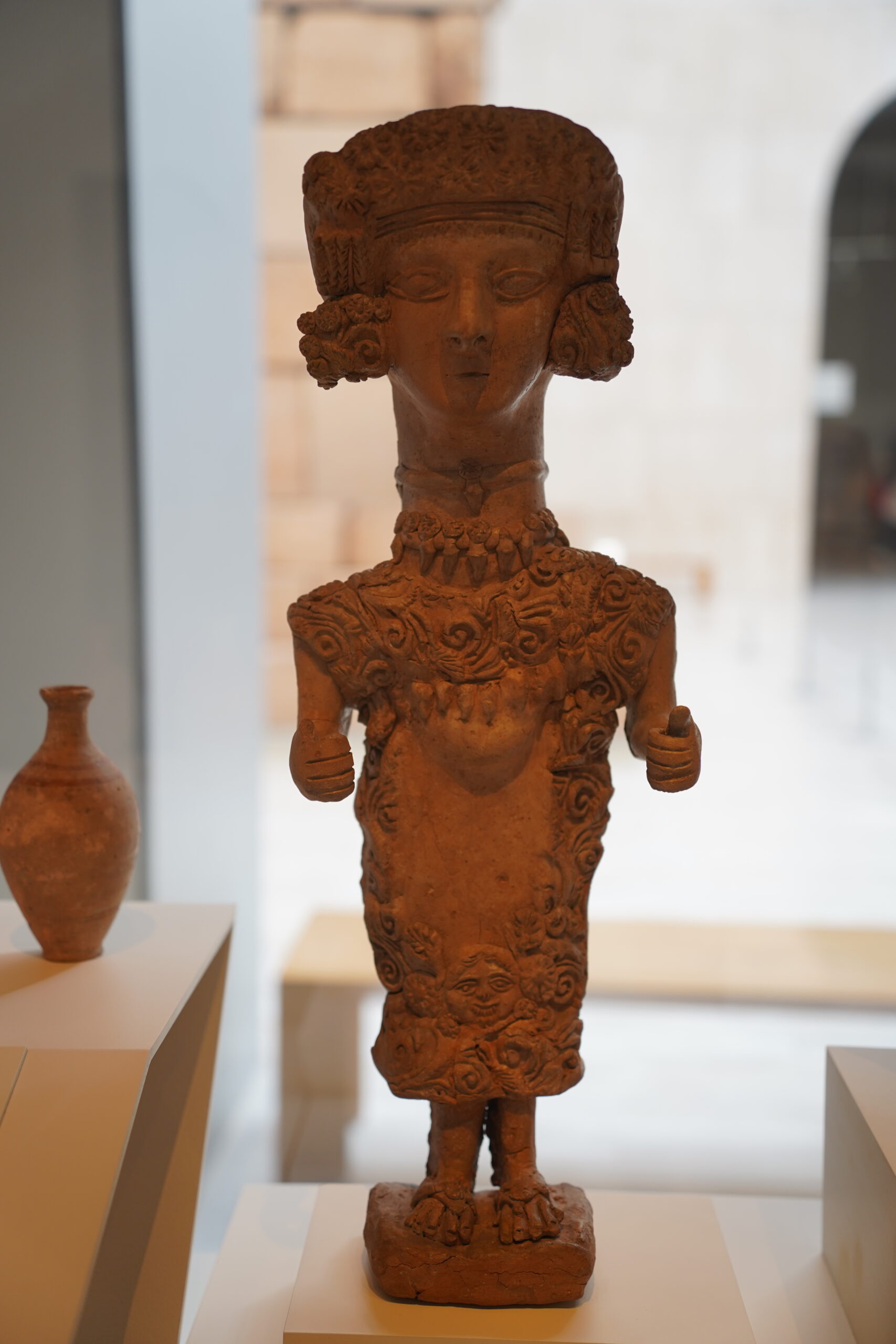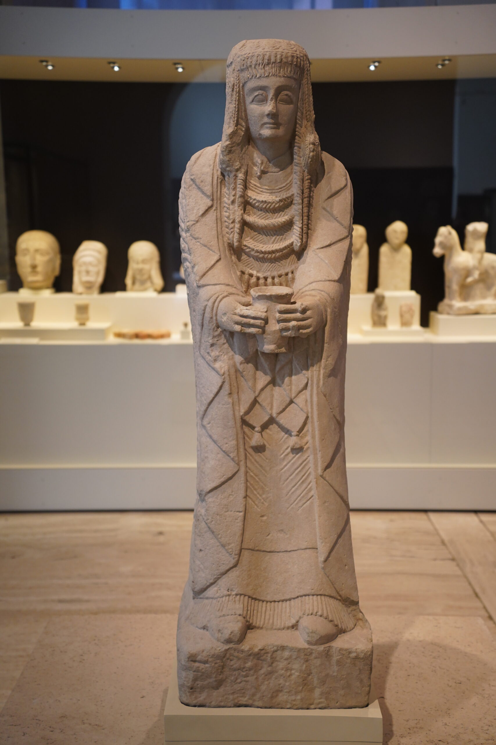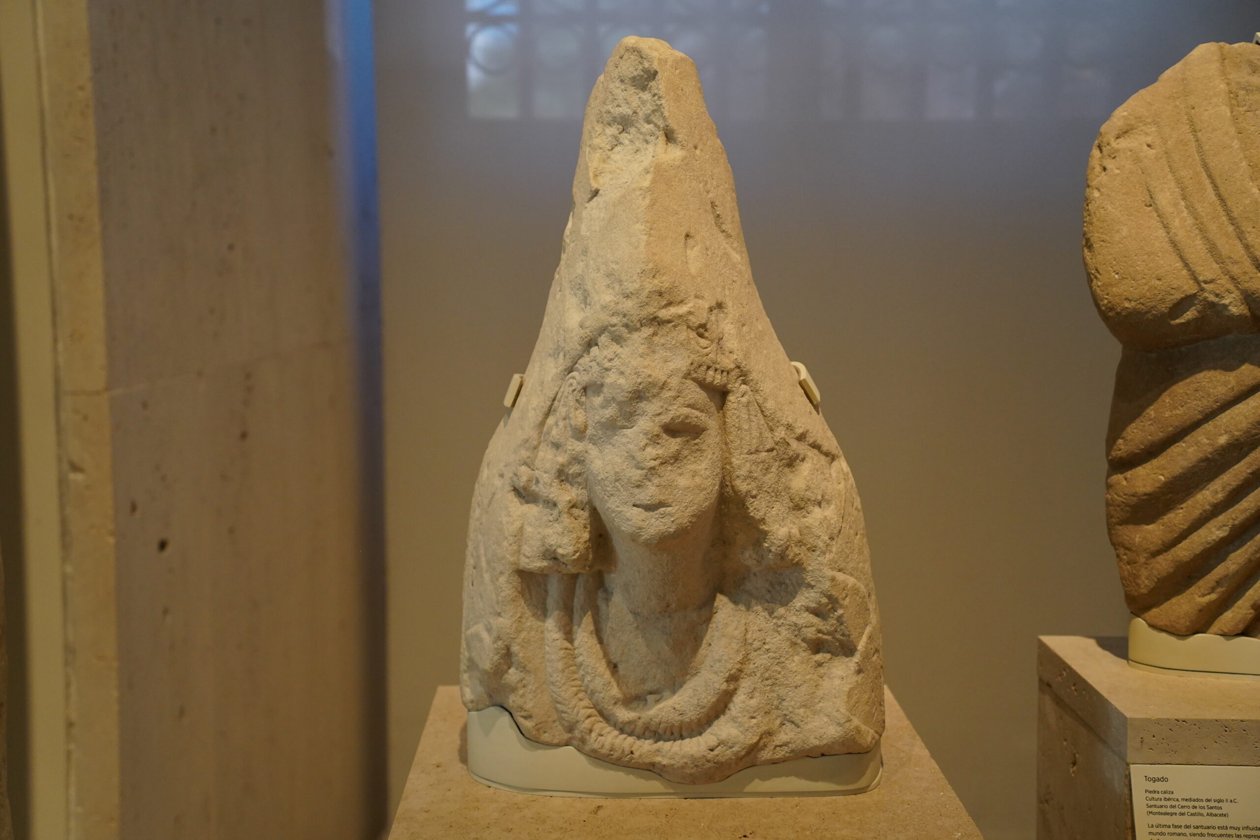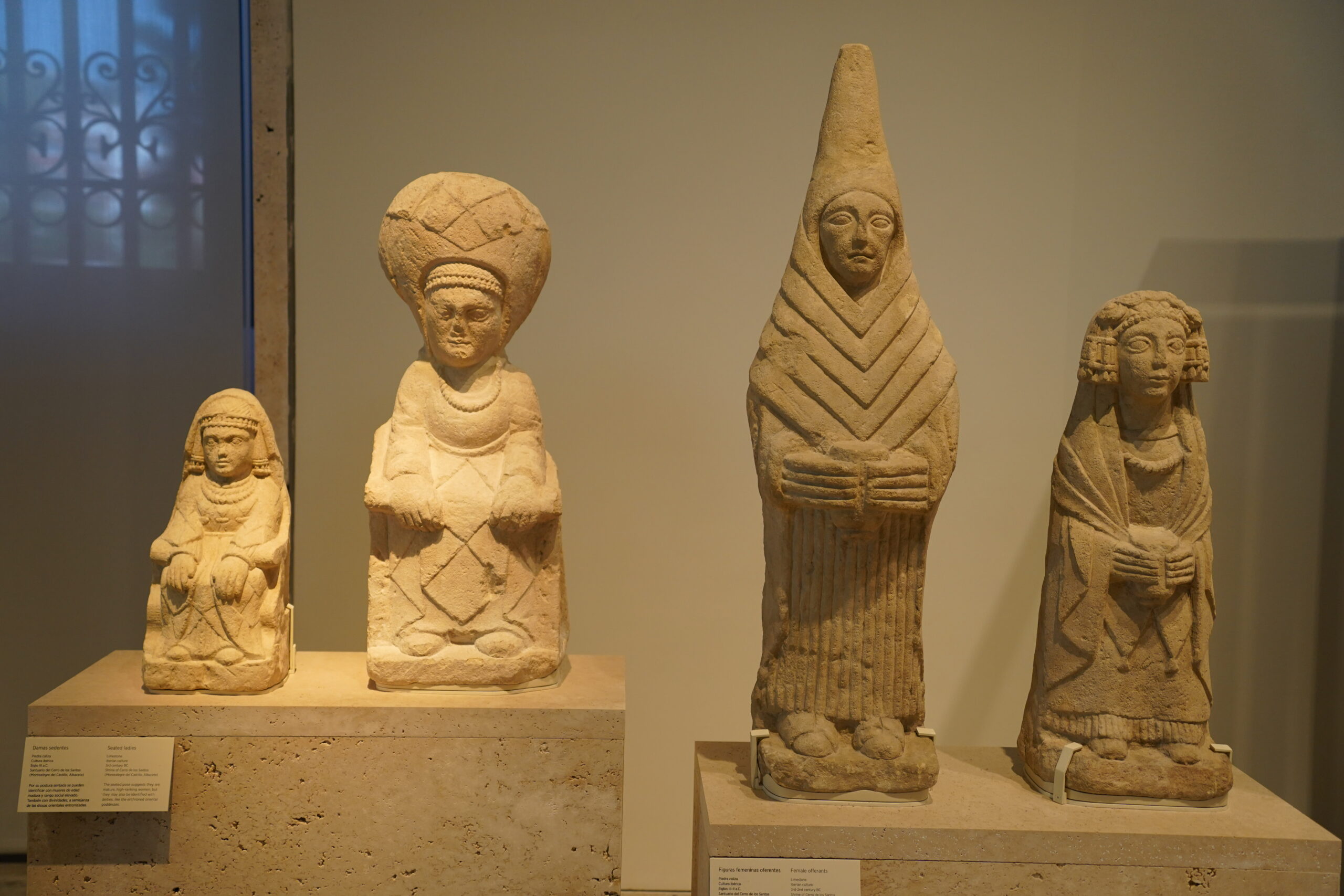 イベリア半島の原史を展示するホールには、貴婦人像の他にも有名ではなくても不思議で特徴的な像が沢山あってとても心に残った。特にトンガリ頭をした像がいくつもあったのが印象的だったが、これがモロッコのおじさん達が着ているジュラバという民族服のように見えて興味深かった。以前スペインからジブラルタル海峡を渡ってモロッコまで渡ったことがあったが、地理的にも近いのでやっぱりどこかで文化や感性が今でも繋がっているのかなと感じたりした。