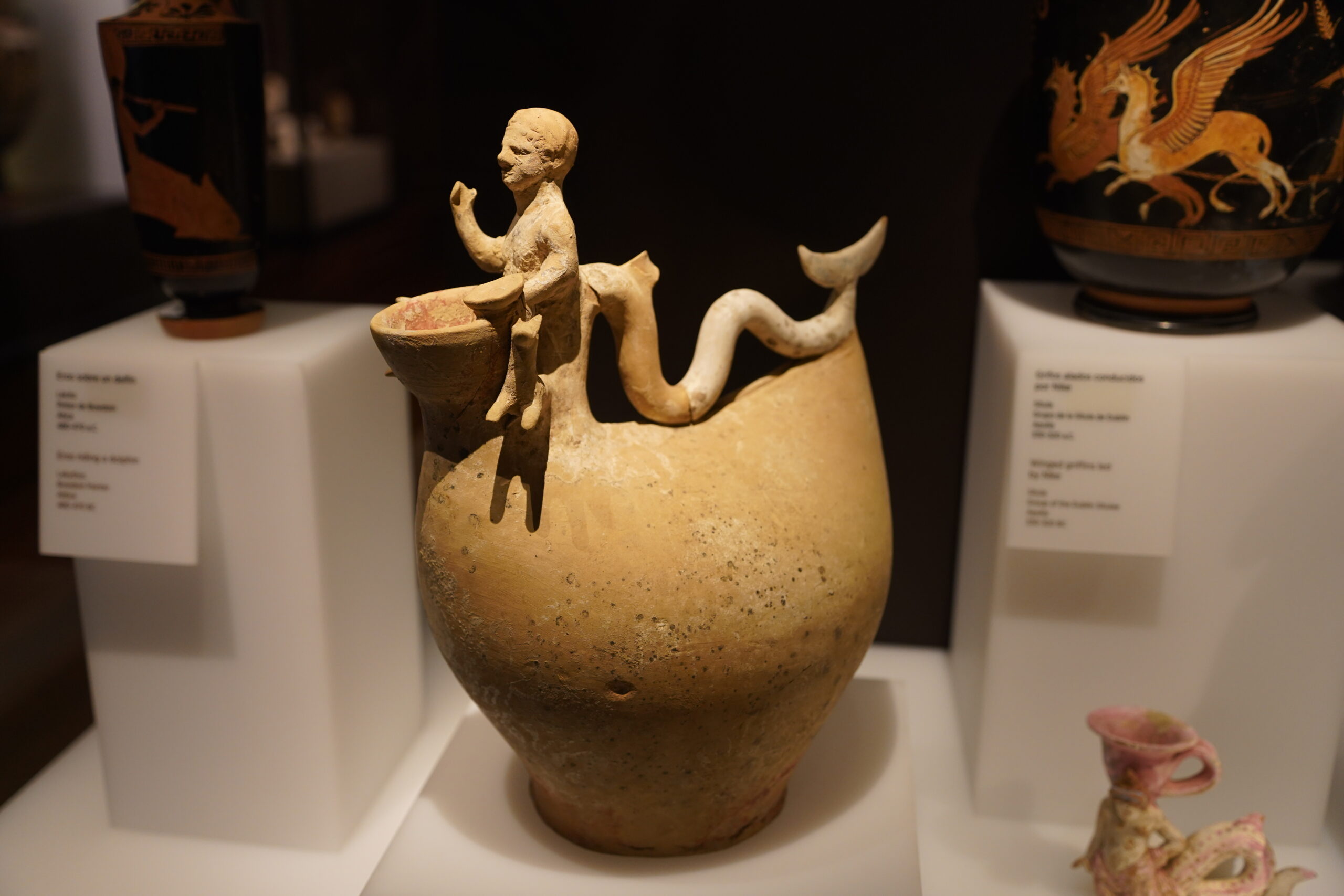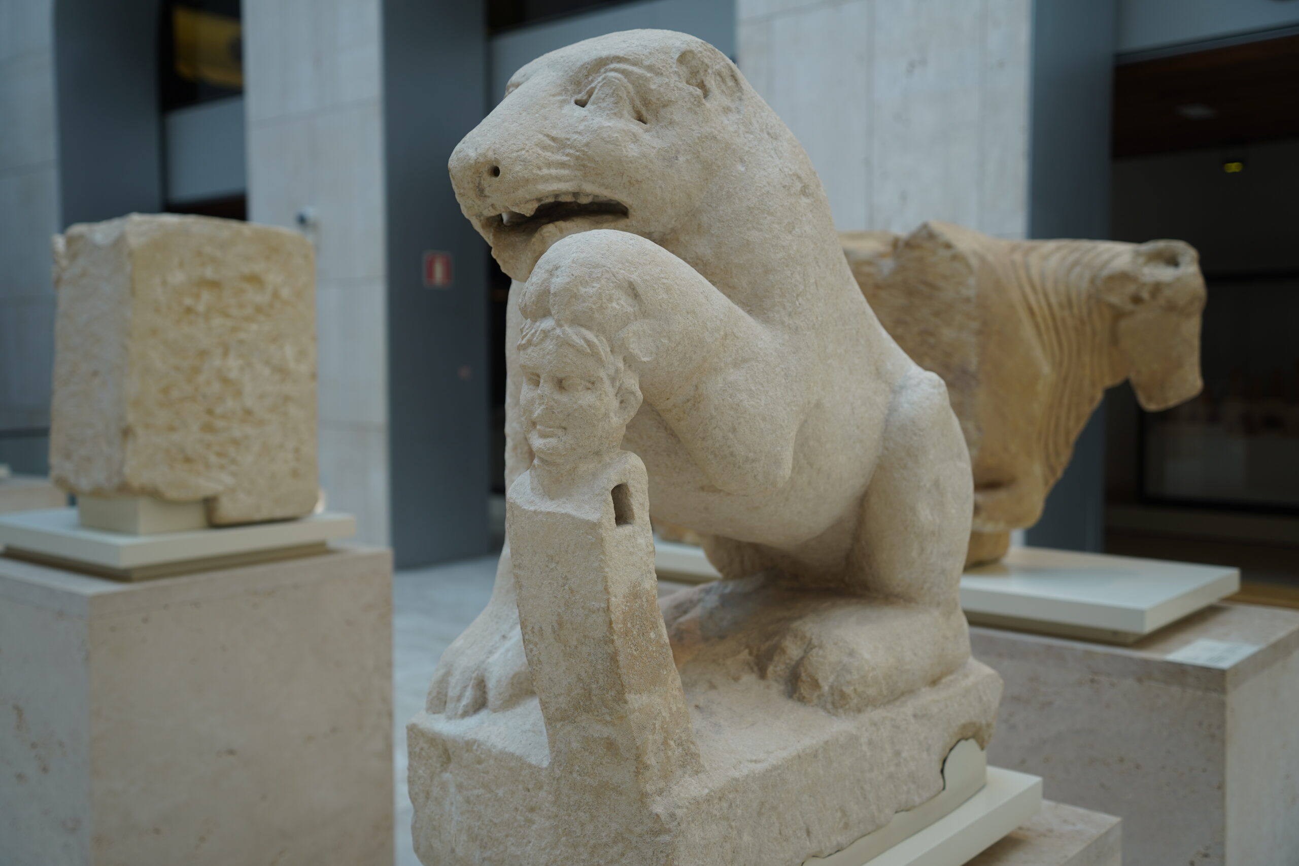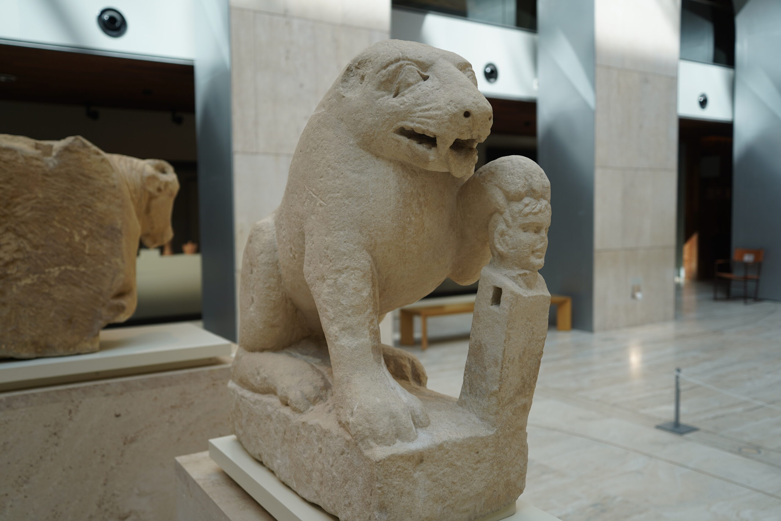 ポルクナの熊は紀元前1世紀に作られた彫刻で、ヘルマに寄りかかる熊または雌ライオンが表現されている。構図にヘルマが存在することは、ローマ時代の年代を強く示唆している。ギリシャを旅している中でもよく見かけた直方体の胴体に顔と男根だけが付いているヘルマが、ここでは踏み付けにされていたのが印象的だ。国立考古学博物館のヘルマはなぜかどれも顔だけで、男根が残っているものはなさそうだった。