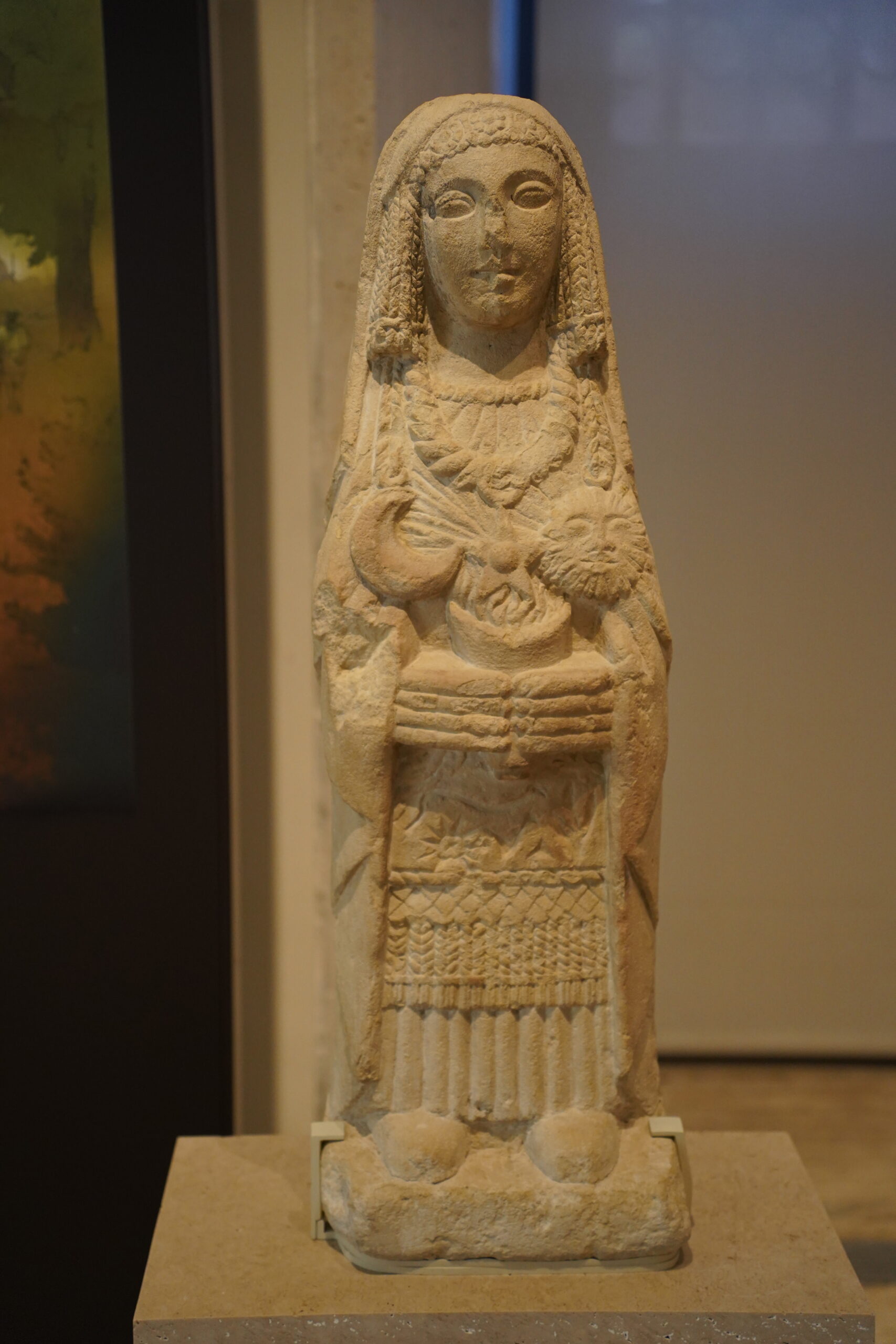 ガレラの貴婦人は紀元前7世紀に作られたアラバスター製の女性像で、近東の女神アスタルトを表していると考えられている。彼女は2体のスフィンクスの間に座り、胸の2つの穴から流れ出る液体を汲むボウルを持っている。髪型と衣装にはエジプトの影響が見られるが、その頑丈な姿はメソポタミアの彫像にも似ている。彼女は聖なる物として数世代にわたって大切にされ、その後副葬品として埋葬された可能性もある。フェニキアで作られたものと推測される。