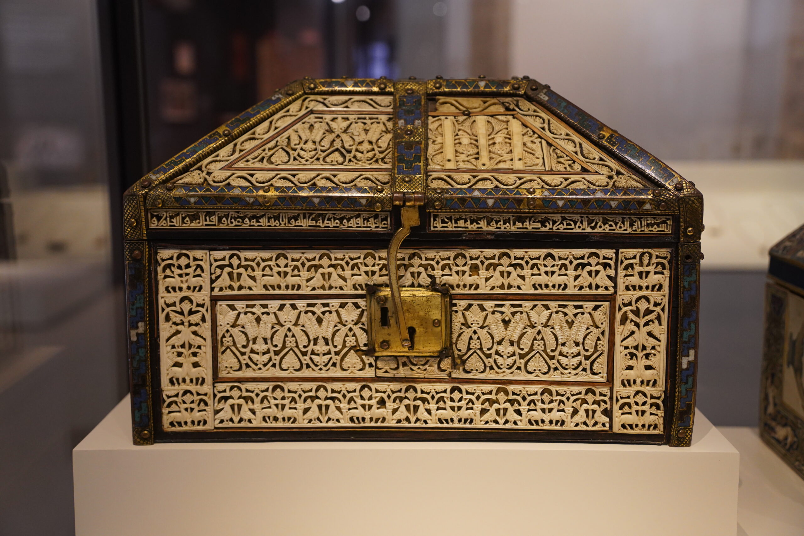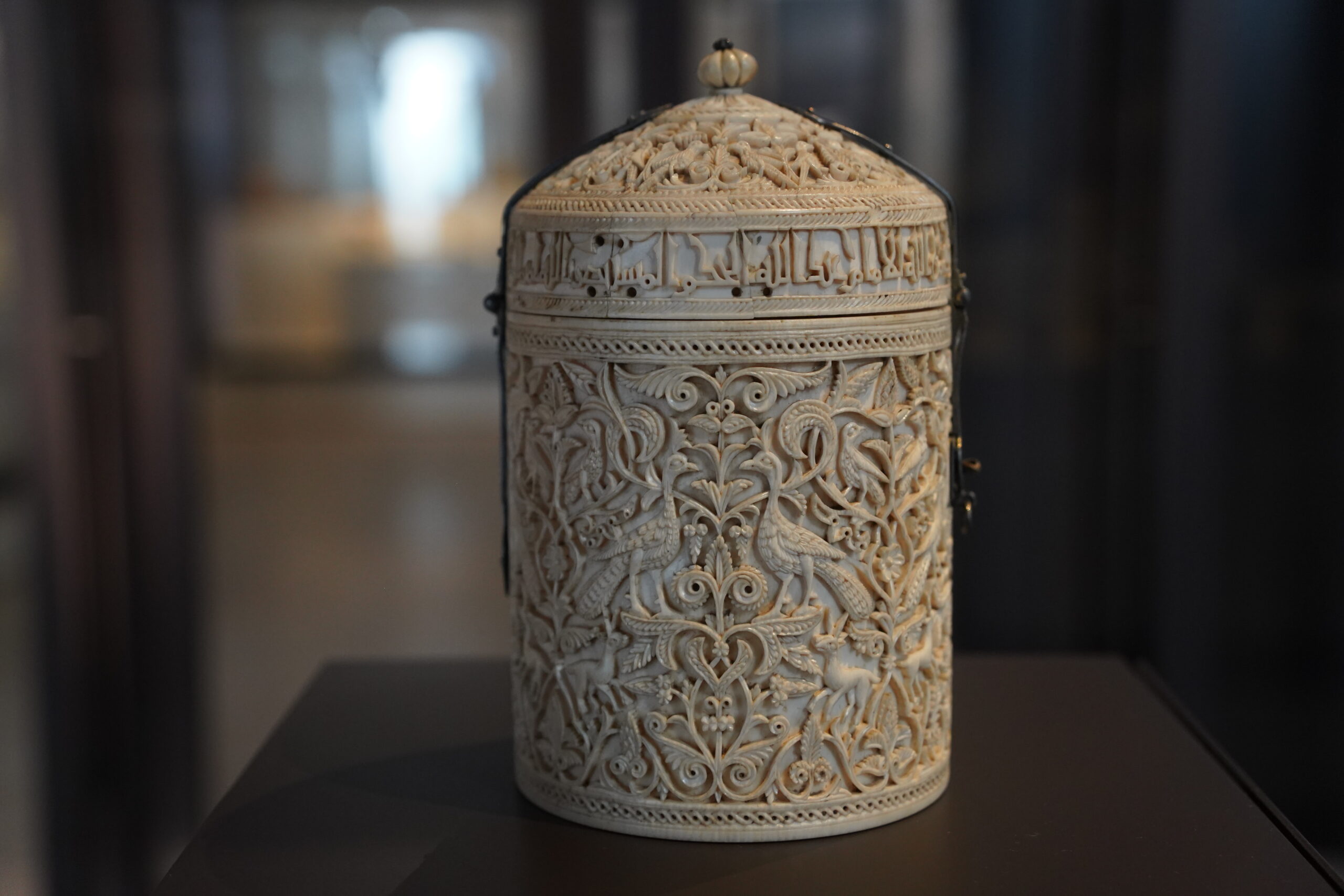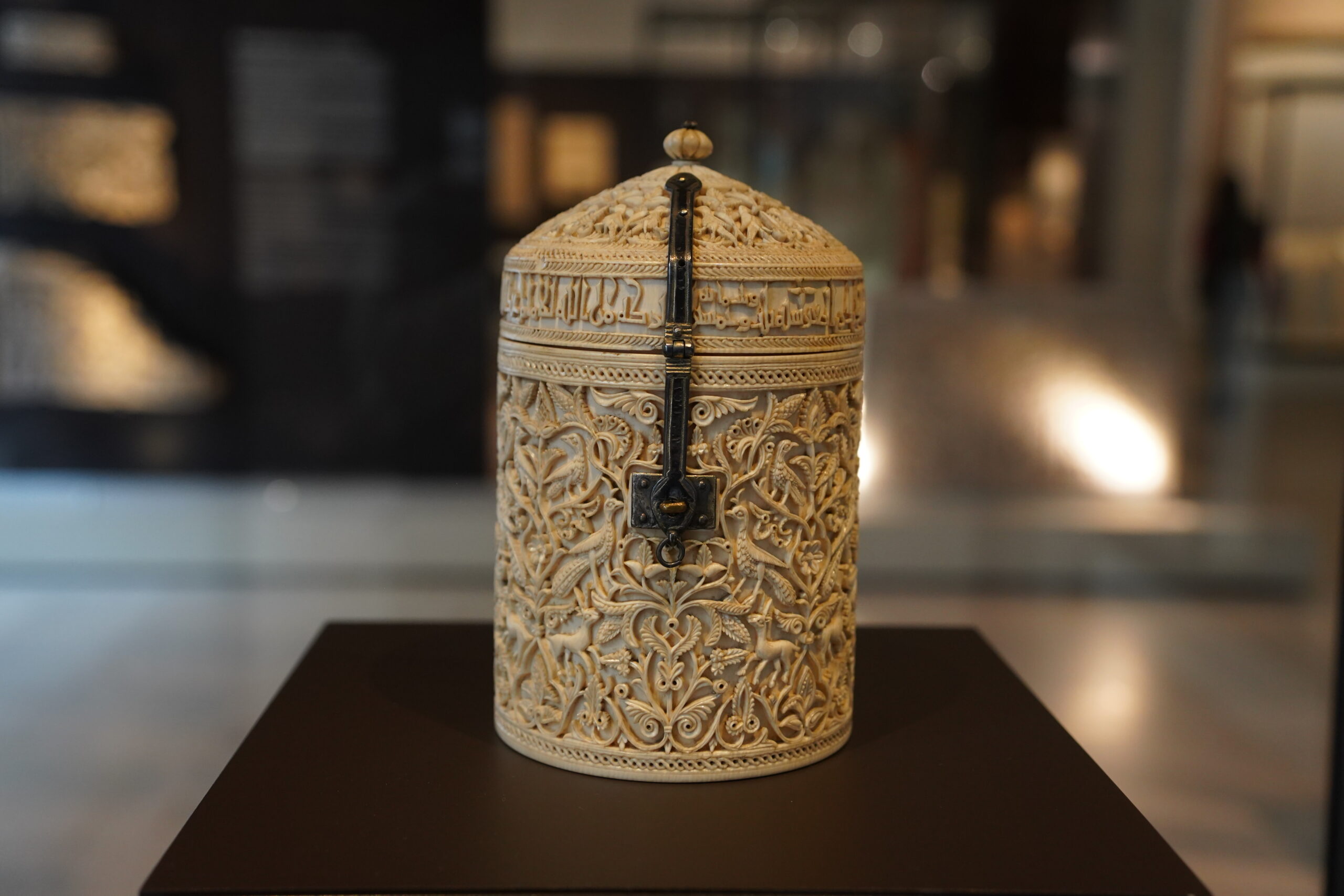 10世紀のイスラム支配時代(カリフ国コルドバ)に、カリフ アル=ハカム2世が愛妾であり後継者の母でもあるスブフのために注文した円筒形の象牙彫刻箱。主にアラベスク、孔雀、ガゼル、鳥の装飾が施されており、当時のイスラム文化の技術力と美意識の高さを示す代表例とされている。日常的な道具ではなく、王侯貴族やカリフ(イスラム君主)の宮廷で用いられる贅沢品として作られたもの。