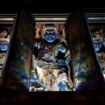 まず訪れたのは大きな枝垂桜が有名な奈良県五條市西吉野町の「圓光寺」。境内の枝垂桜は雨で散りかけではあったものの、それでも十分な迫力と美しさがあった。親鸞聖人像と合わせて撮影するとなおいっそう荘厳で神秘的な雰囲気に。