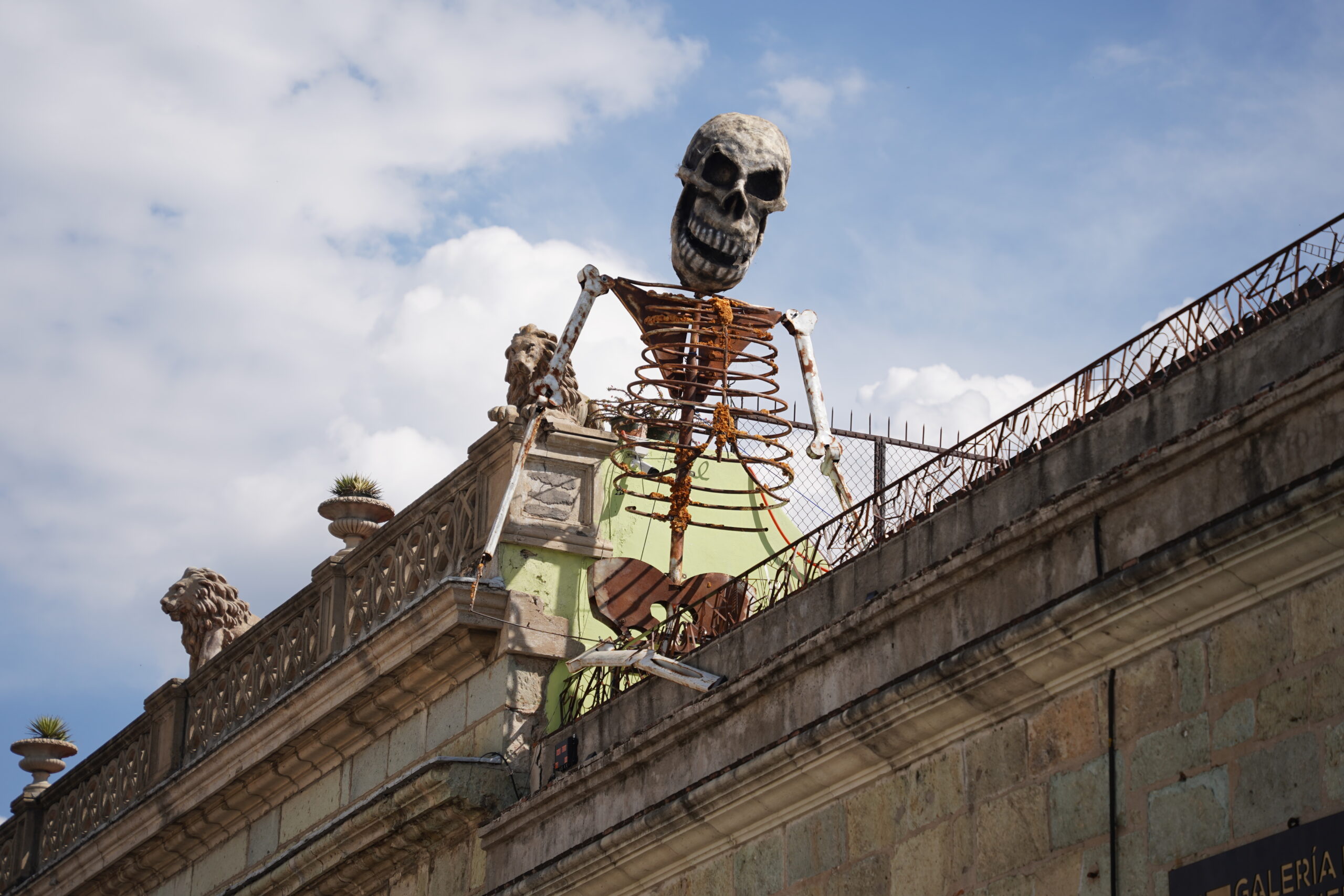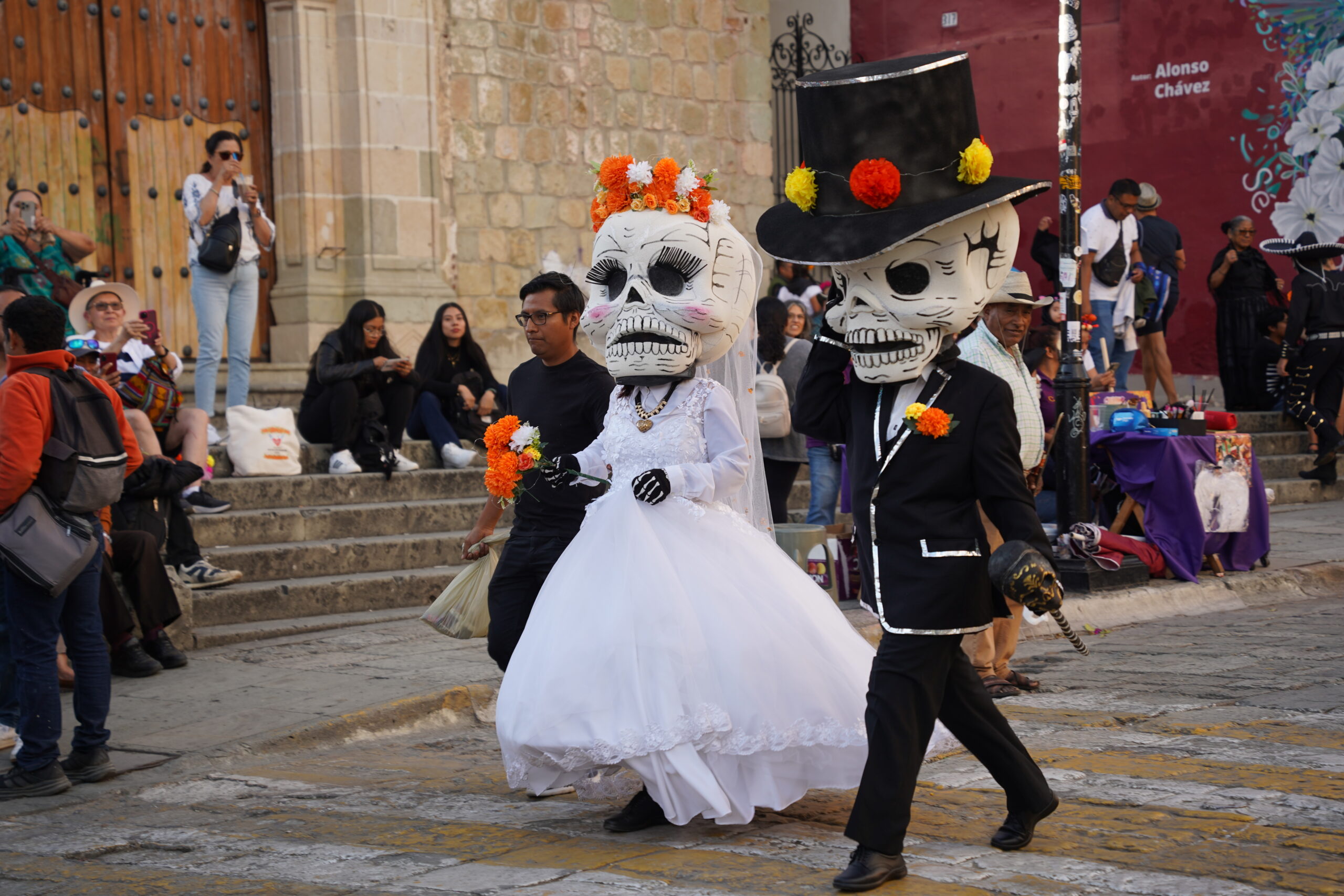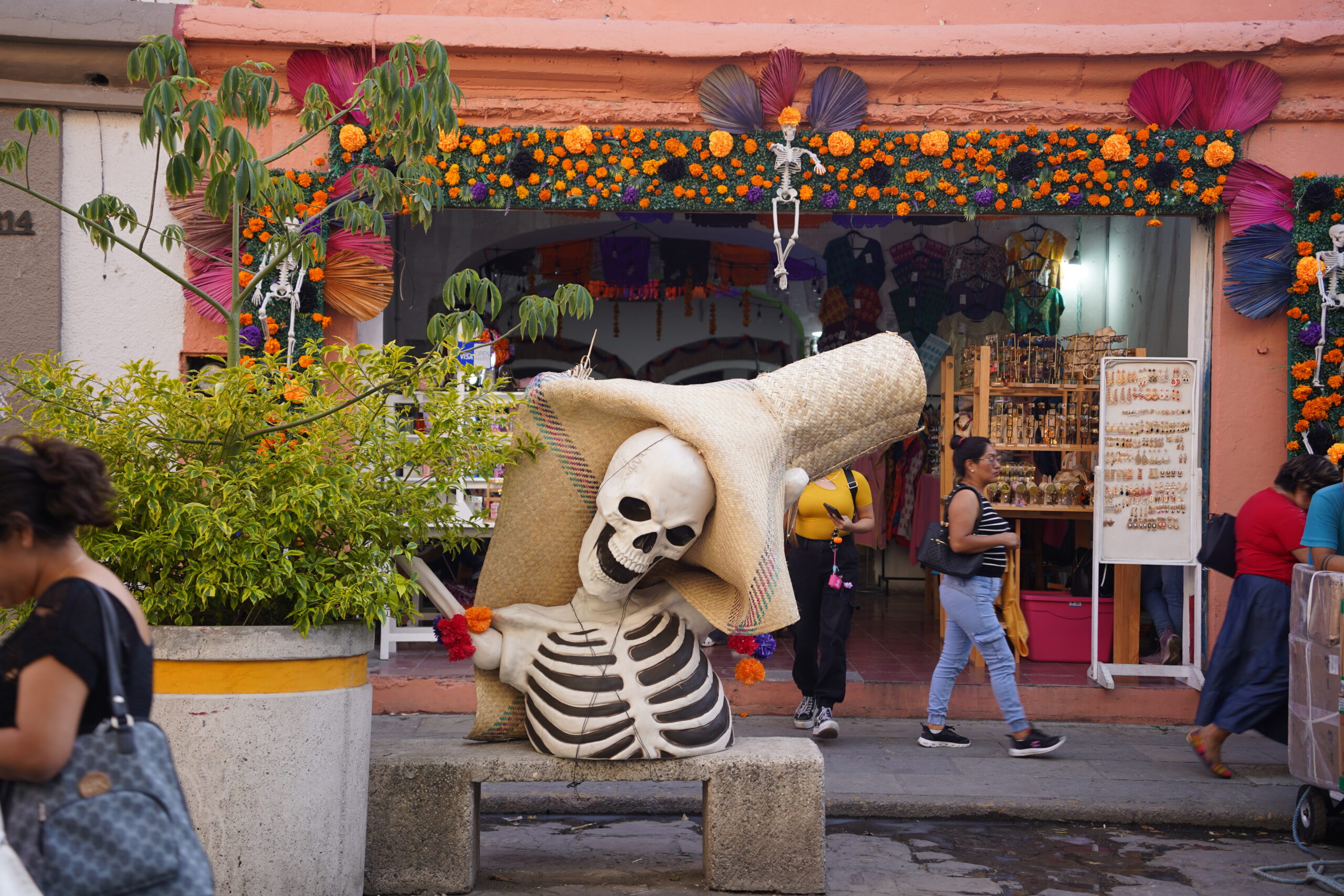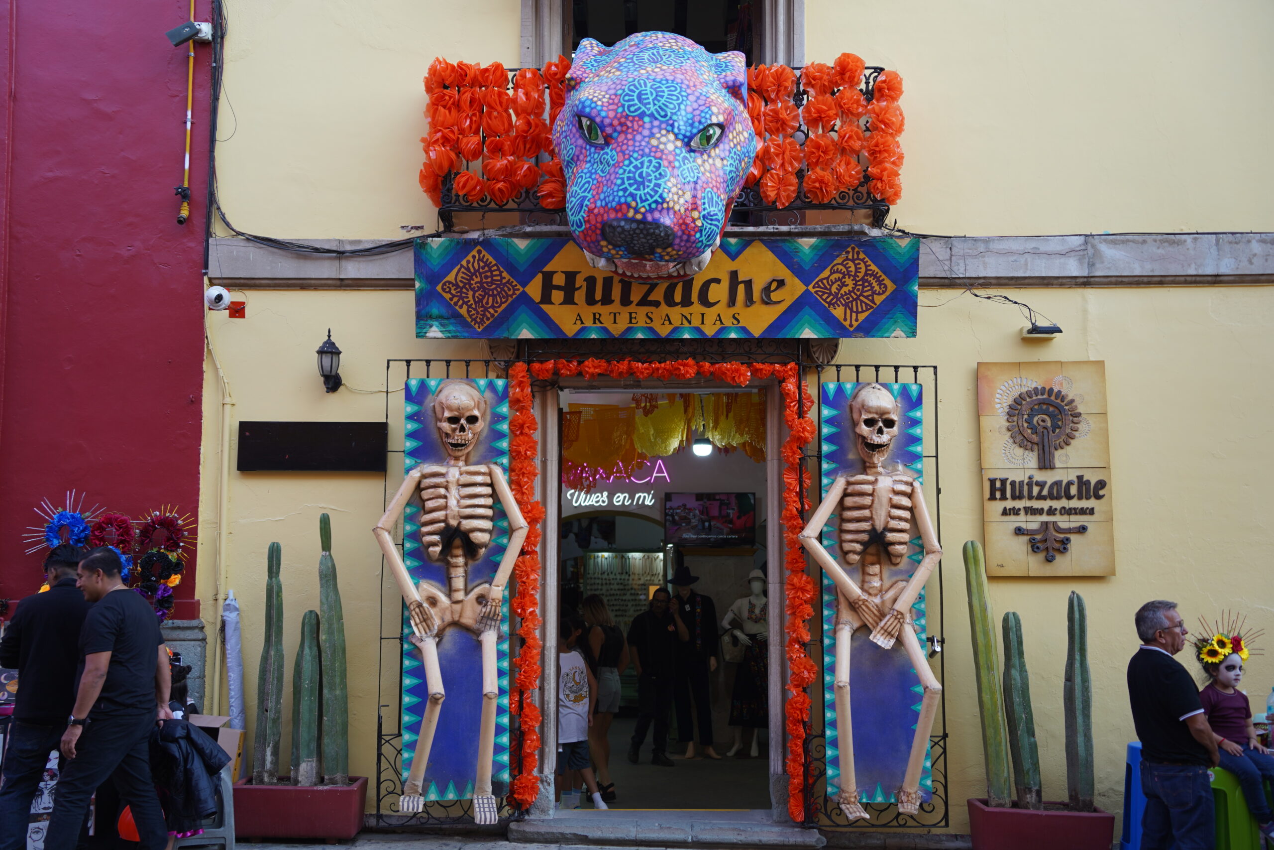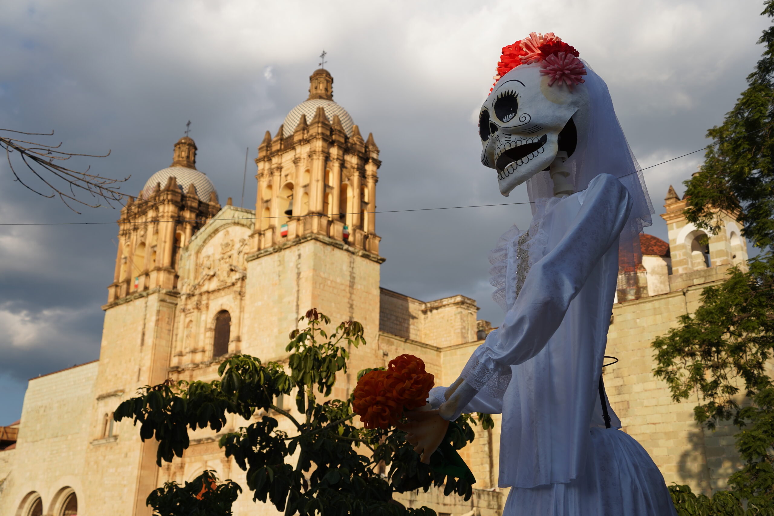 パレードのある10月31日以前からもオアハカでは「死者の日」の準備が着実に進められていた。最も印象的なのは骸骨やドクロで、大小問わず様々なスタイルのドクロの絵や像や旗がオアハカの街中に溢れていた。