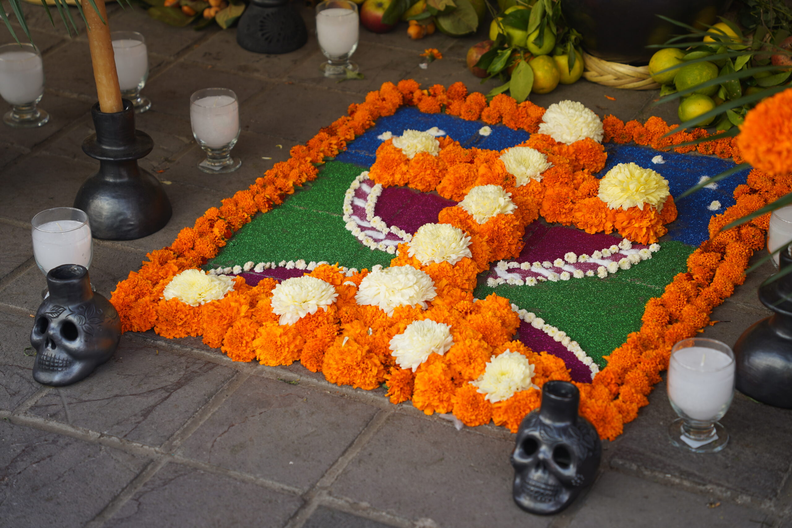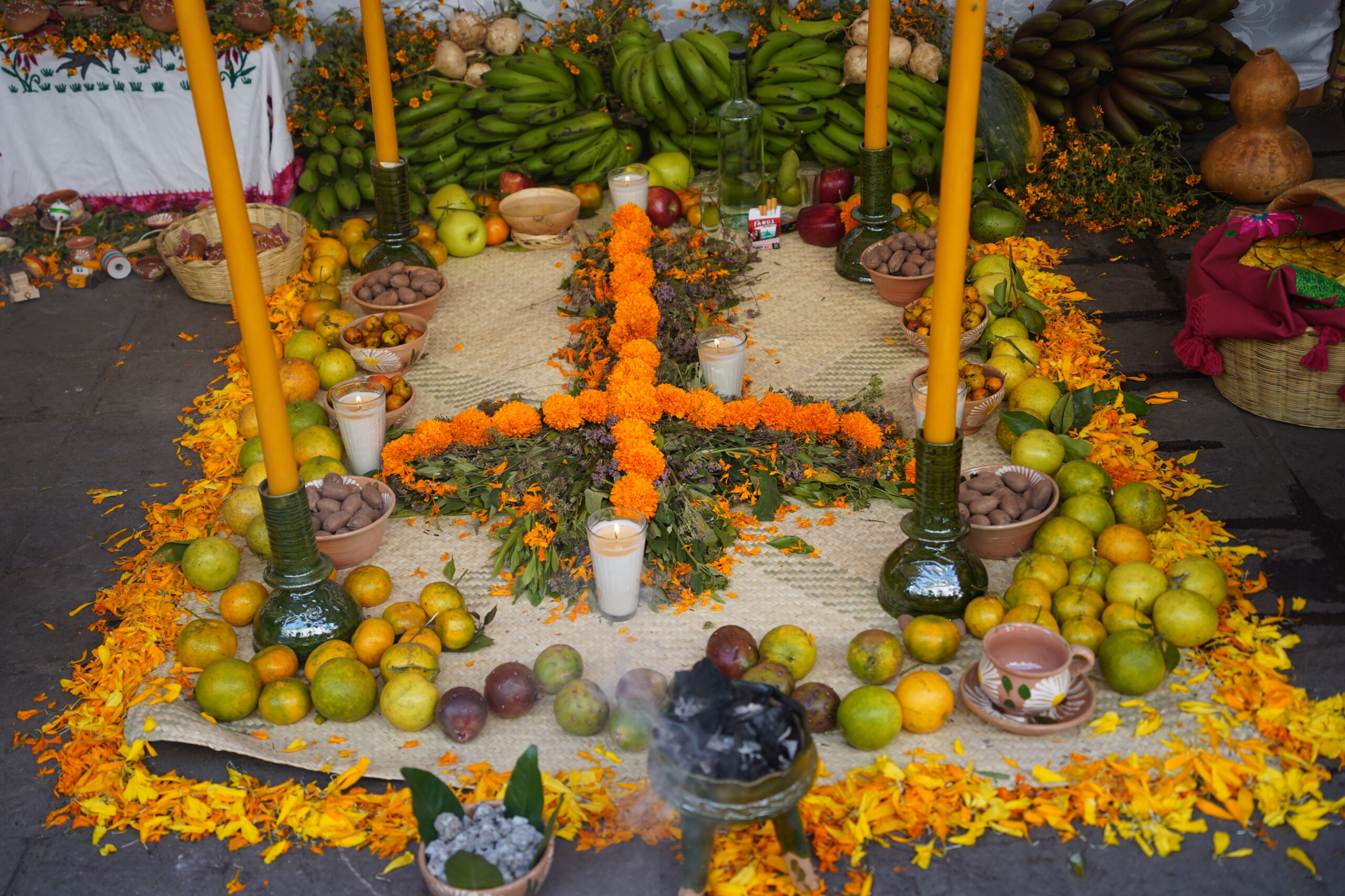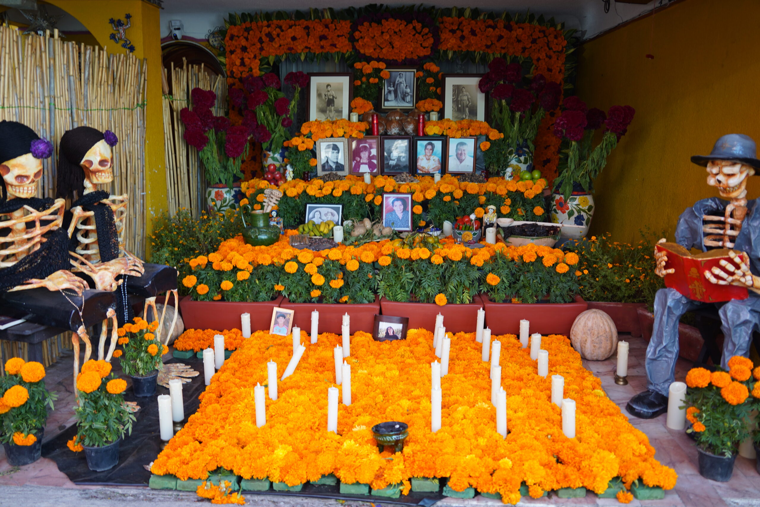 ・マリーゴールドで彩られた色鮮やかな「死者の日」の祭壇