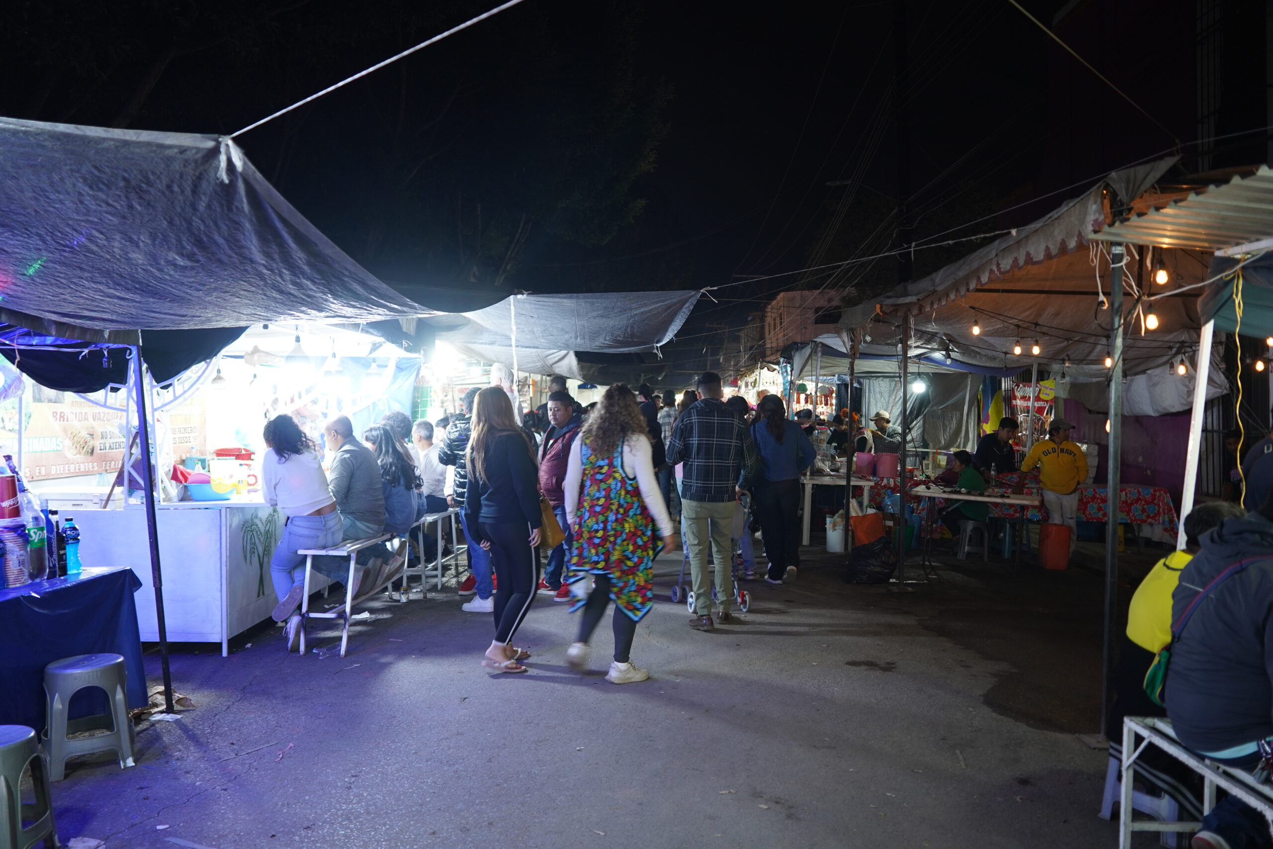 そしてぼくは「Panteón General」というオアハカの墓地に夜向かうことになった。「Panteón General」の前の通りは露店がいっぱい出ていてものすごく盛り上がっていた。