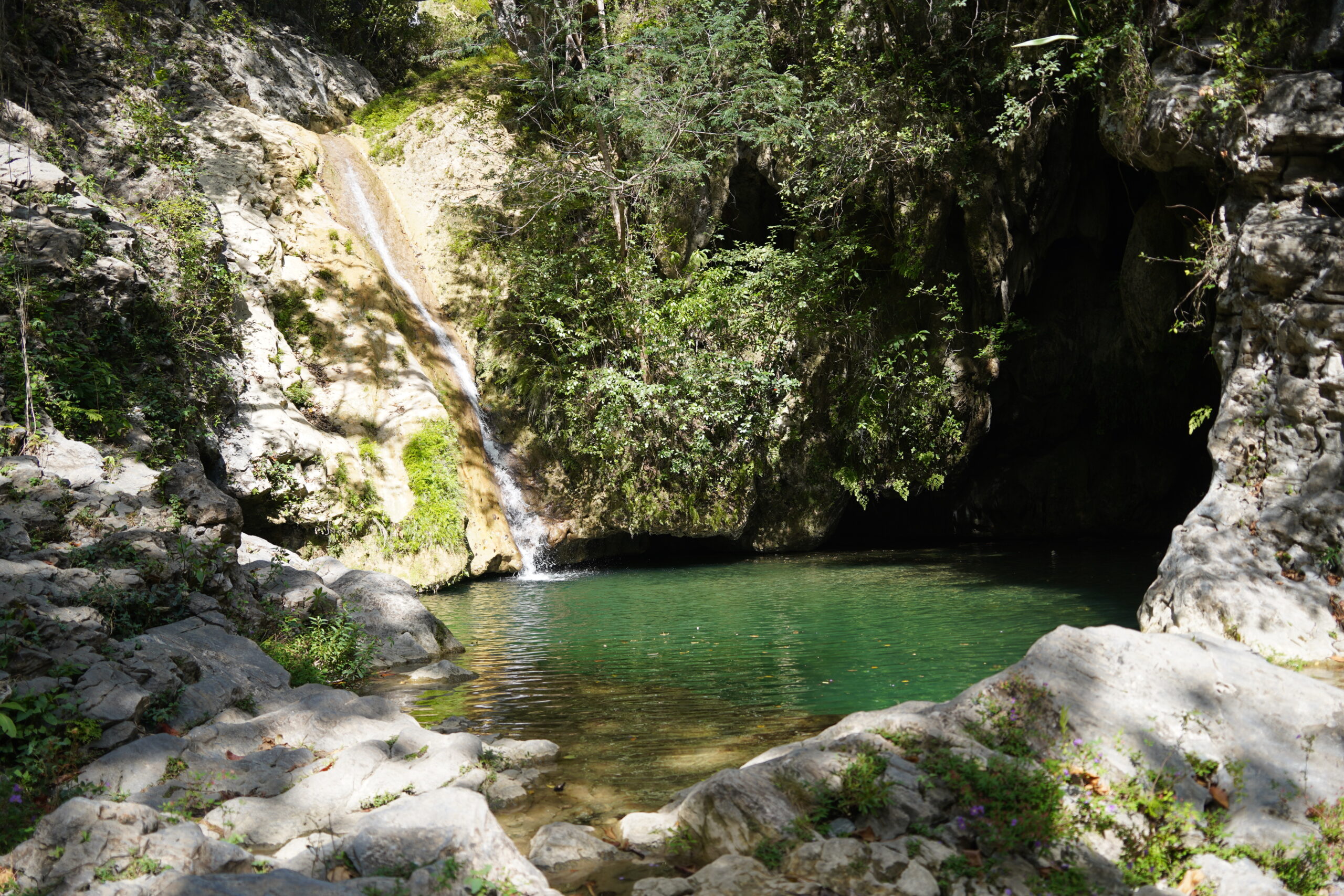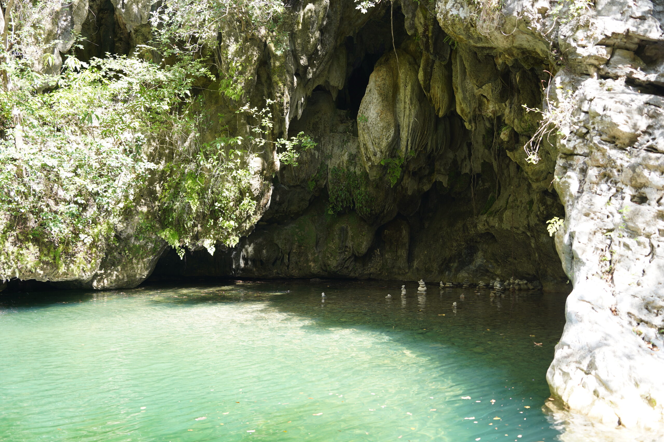 最終目的地の滝では、何と11月なのに泳ぐことができた。さすが温暖な気候のキューバ!滝の下にはまるでメキシコで言うセノーテのような洞窟的空間もあり、神秘的な雰囲気が漂っていた。世界中のあらゆる聖地でそうされるように石が積まれているのを発見したりして、ここは地元の人々にとっての聖地のような滝なのかもしれないと予測した。