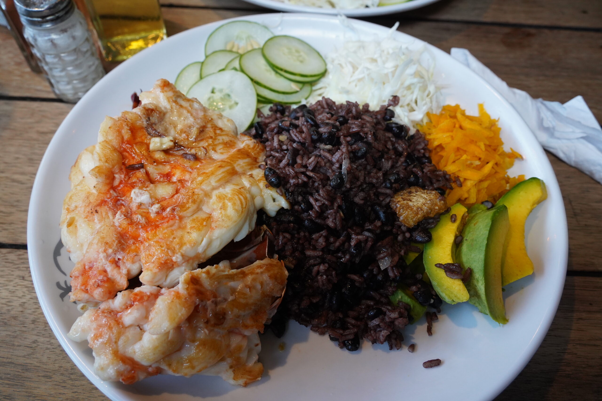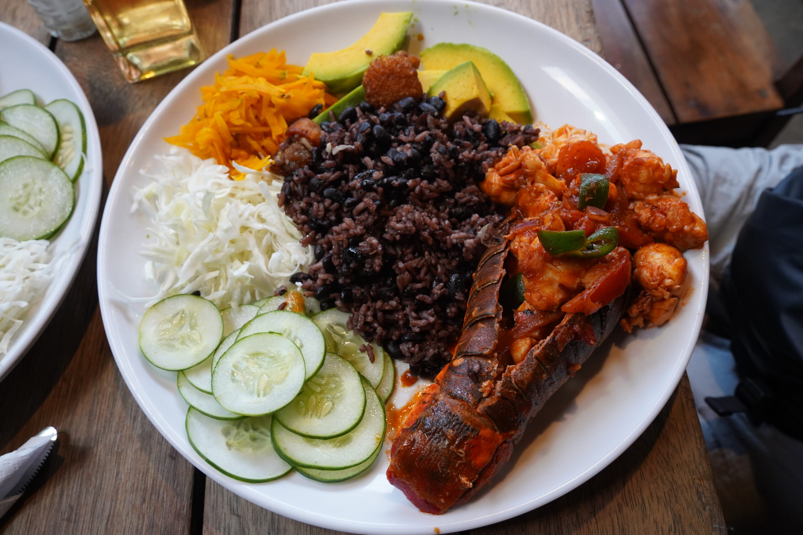 おおぉ、めちゃくちゃでかい!しかもロブスターだけじゃなくて野菜やご飯もちゃんと豪華に添えられている。キューバって物資不足で卵すらろくに買えないのに、レストランに来ると安い値段で豪華な食事が食べられるから謎すぎる。エンチラーダのロブスターは濃厚な味わい、ニンニク味のロブスターはシンプルな塩味という感じで、肝心のロブスターは弾力があって大きくて食べ応えがあってめちゃくちゃ美味しかった!黒豆のご飯はキューバでよく出てくるけれど、少し塩味が効いている印象。