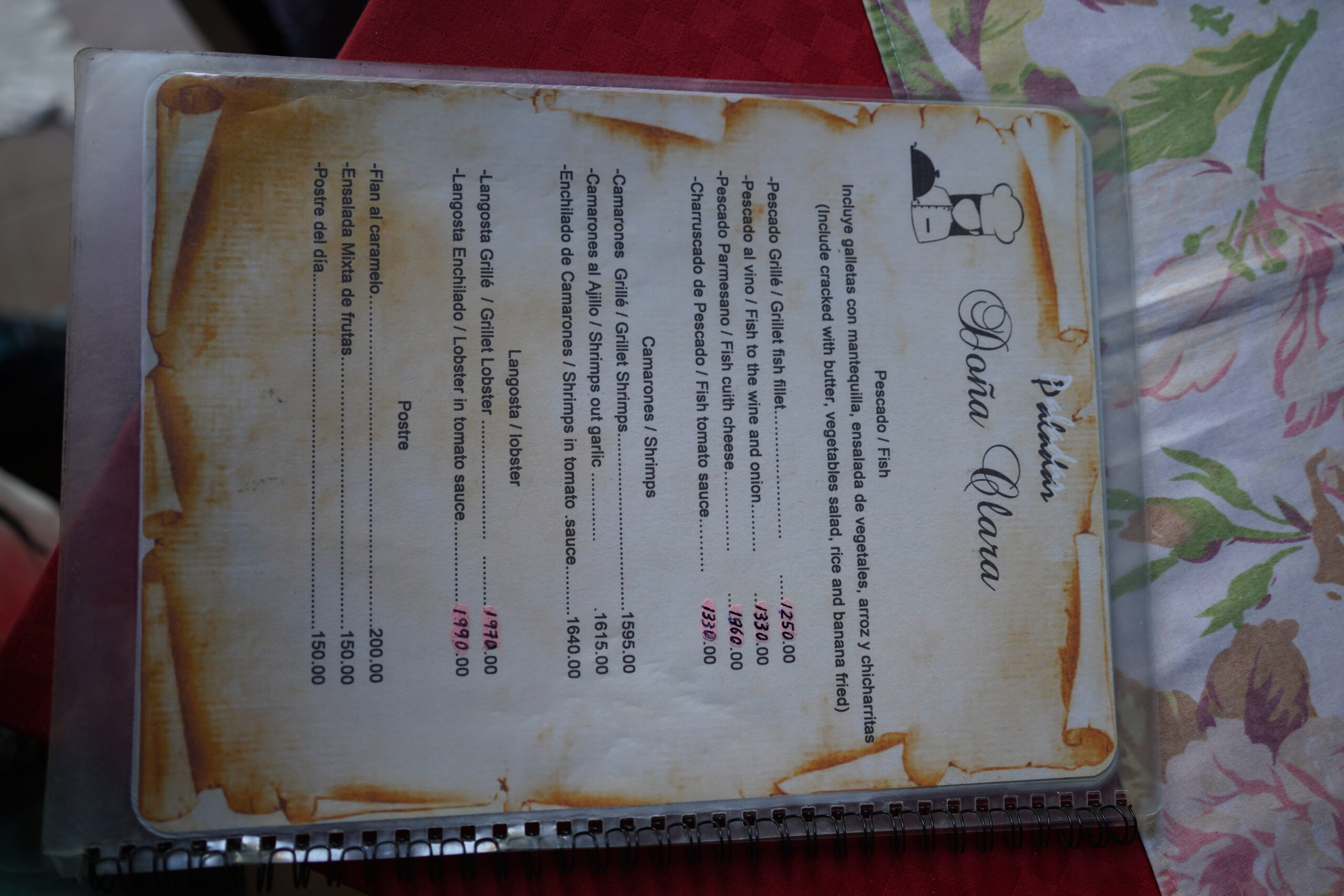 Doña Claraのロブスターのメニューも、エンチラーダとガーリックだった。キューバのロブスターはこの2種類が定番なのかも。値段はそれぞれ1990と1970で、どちらも5ドルいかないくらい…本当に安い!
