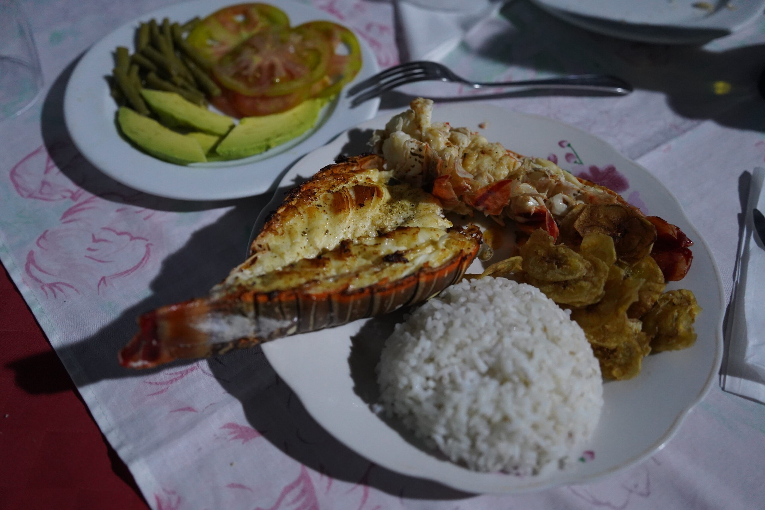 大きさも首都ハバナで食べたのと同じくらい巨大で、バナナチップスやサラダ、ライスも付いていて大満足だった。ぼくはここで3日連続でロブスターを食べて、それ以降はさすがに飽きたのでロブスターは自重した。