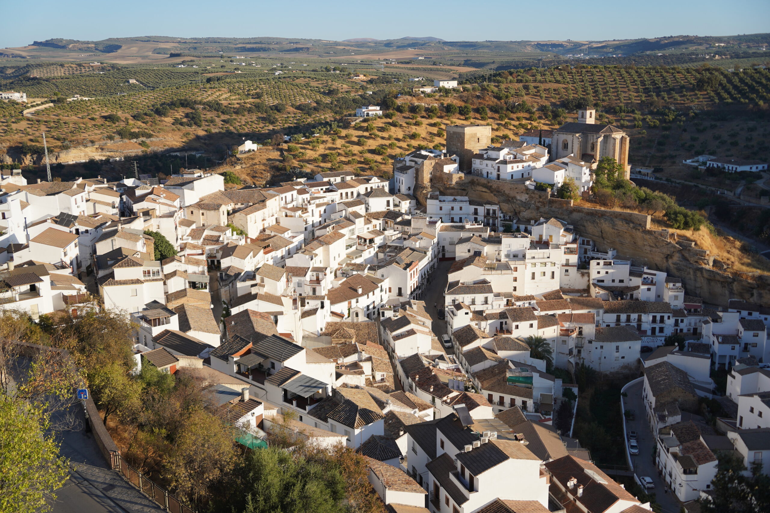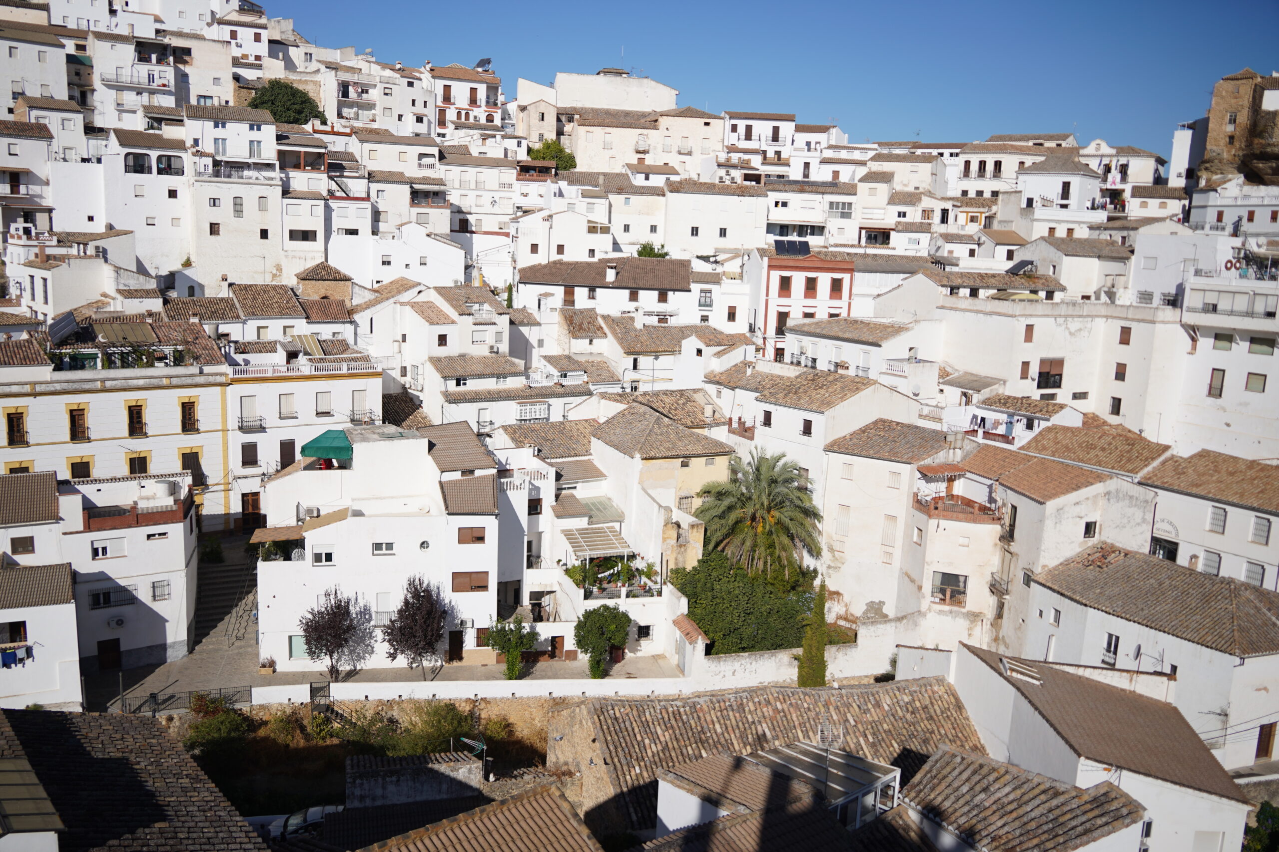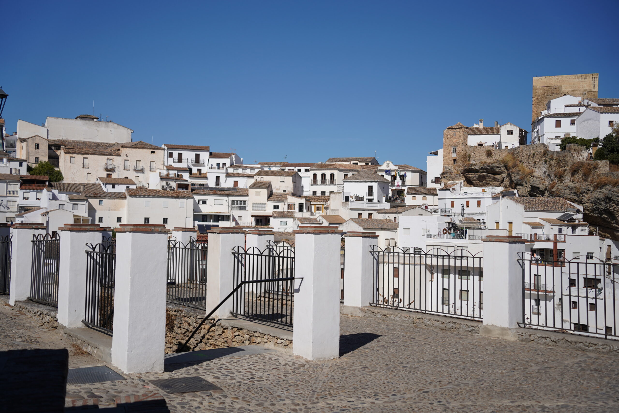 セテニルへ到着すると、高台のような場所で降ろされた。展望台から眺めると、到着早々セテニルの白い町の絶景を見渡すことができた。昨日のグラサレマやサアラと同様、まさにアンダルシアを旅しているという気分が高まってくる。早朝で人もほとんどいないので静かで過ごしやすく、早速2人で記念撮影した。