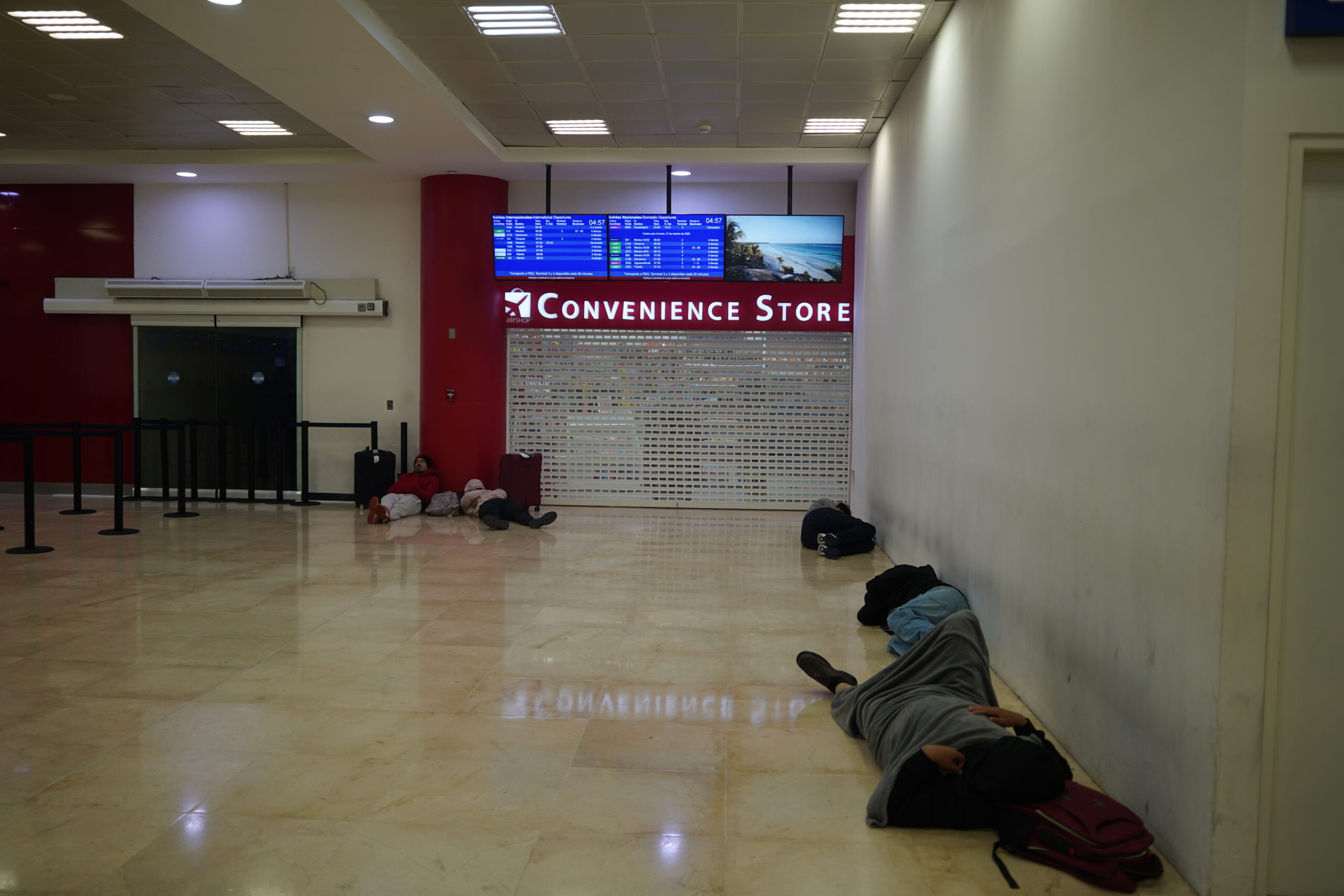 ・カンクン空港の到着時にバゲージクレームの椅子で寝ることは許されなかった