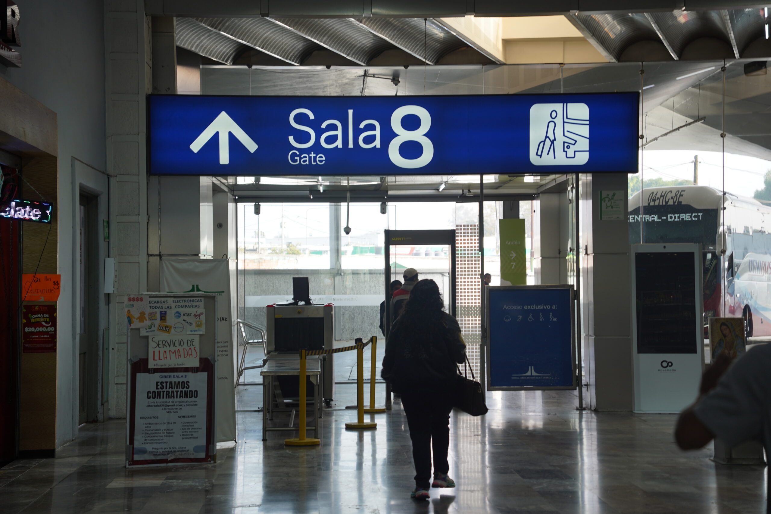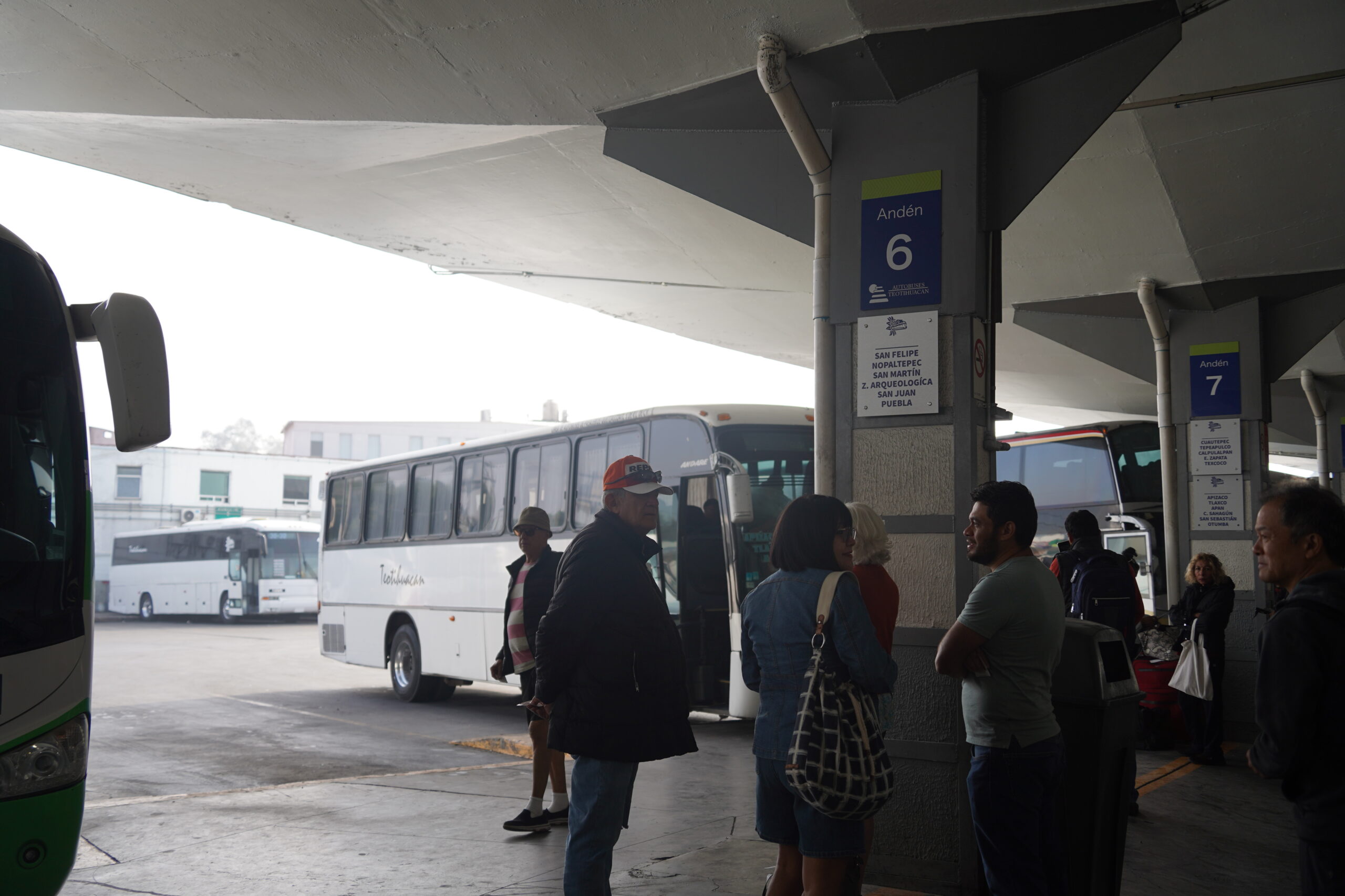 8番出口(Sala 8)から出て、6番乗り場(Anden 6)でバスを待つ。テオティワカンはかなり有名な観光地なのでバスは15分ごとに頻繁に出ている。所要時間1時間ほどでテオティワカンへと辿り着いた。
