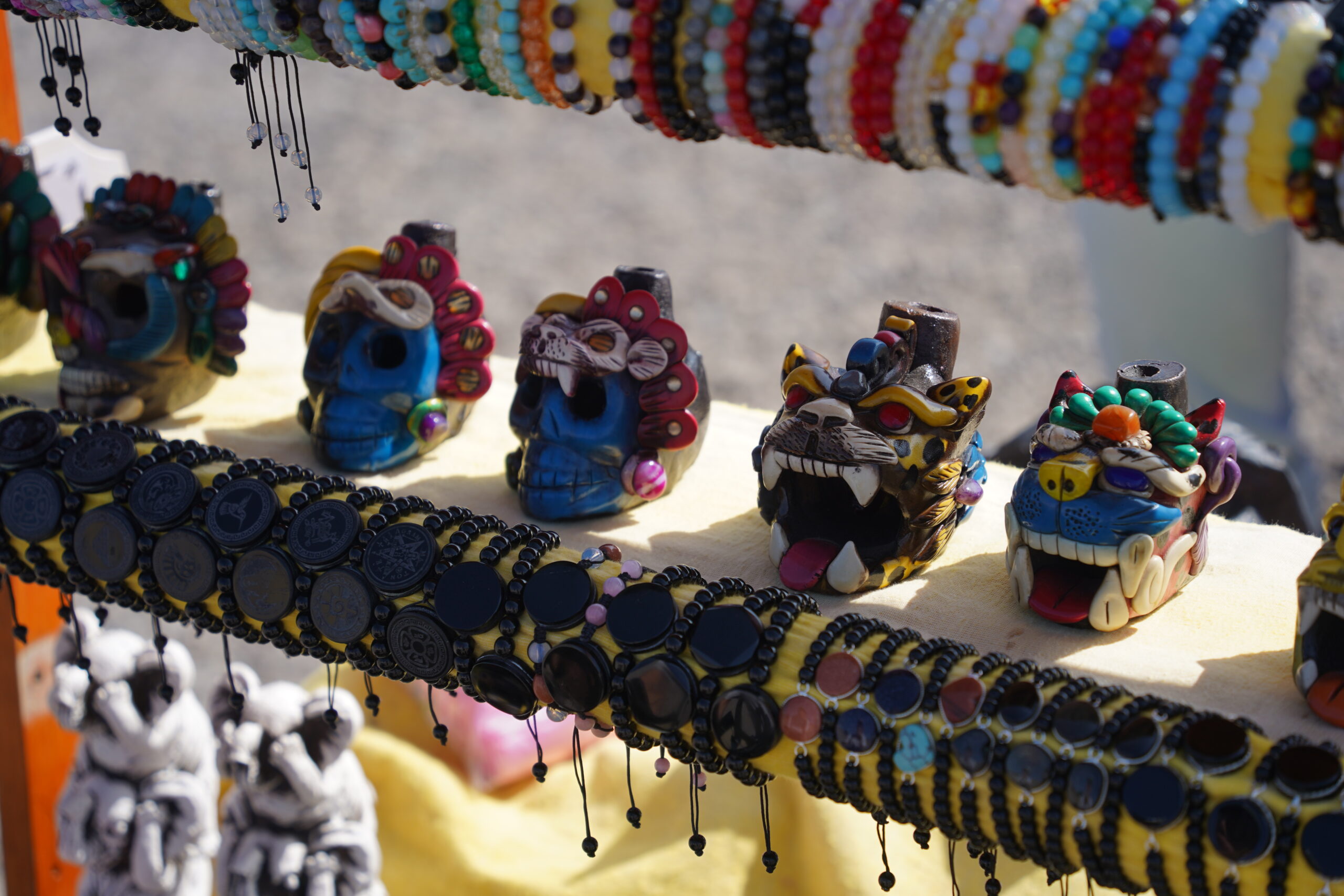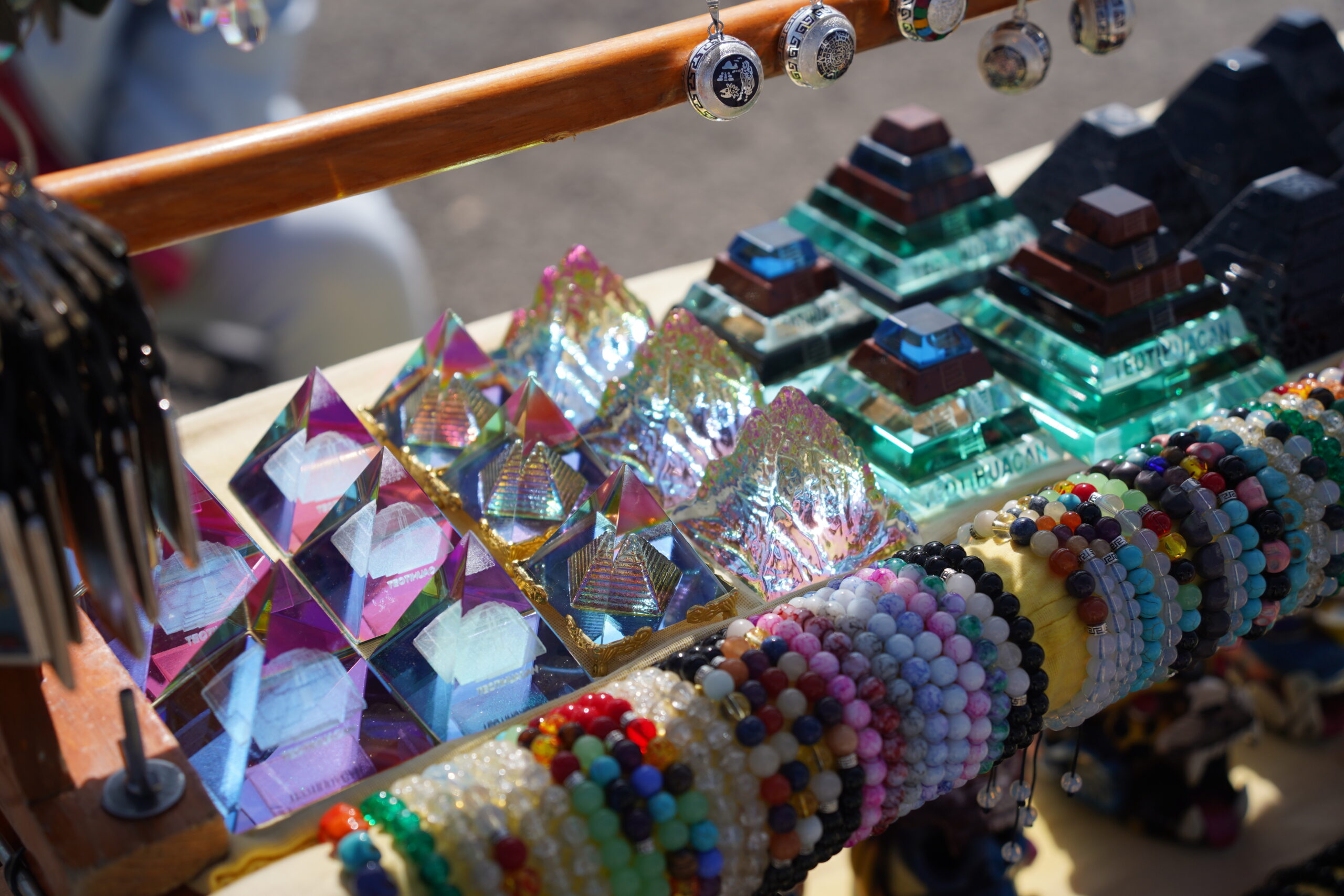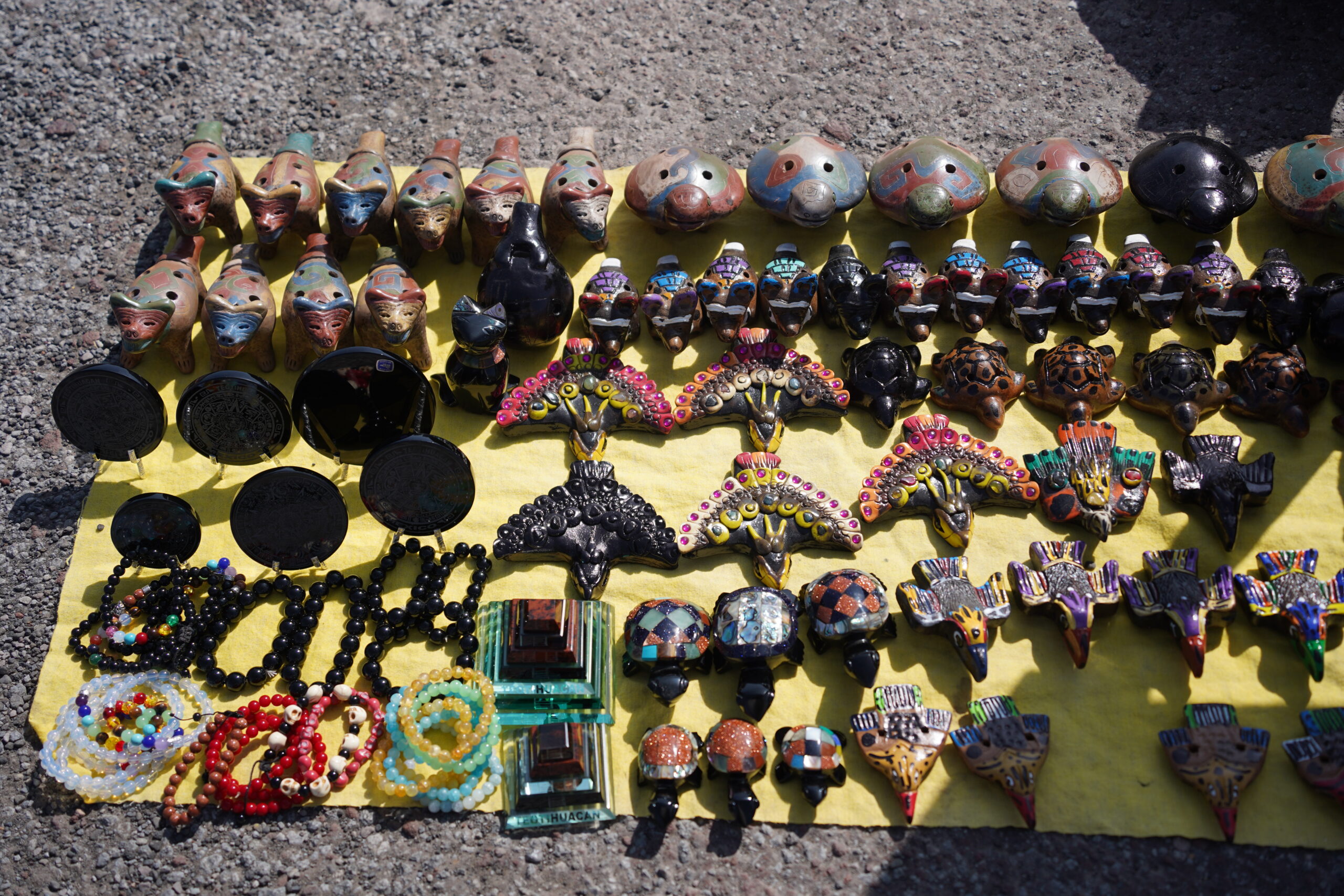 「太陽のピラミッド」の前に横たわる大通りは「死者の道」と呼ばれている。16世紀のナワ族がこの道路に沿って建てられたテオティワカンの廃墟を埋葬塚だと誤って考えたことが、この名称の語源となっている。「死者の道」には大勢のお土産売りが並んでおり、ピラミッドの置物やメキシコ定番の動物の声が出る笛などがいくつも売られている。