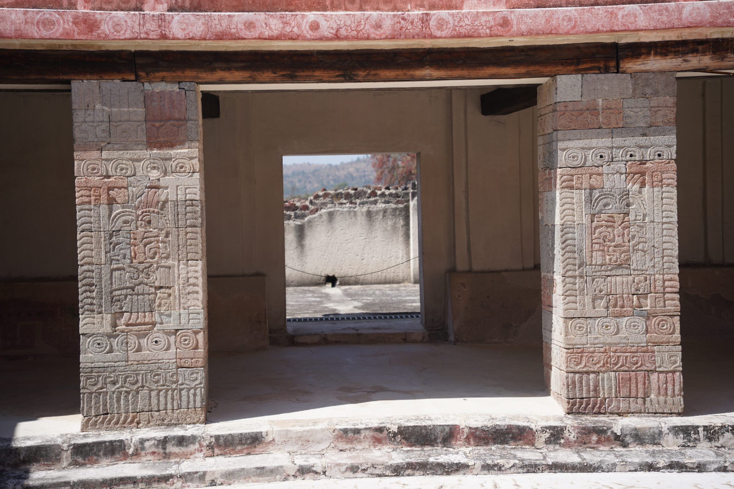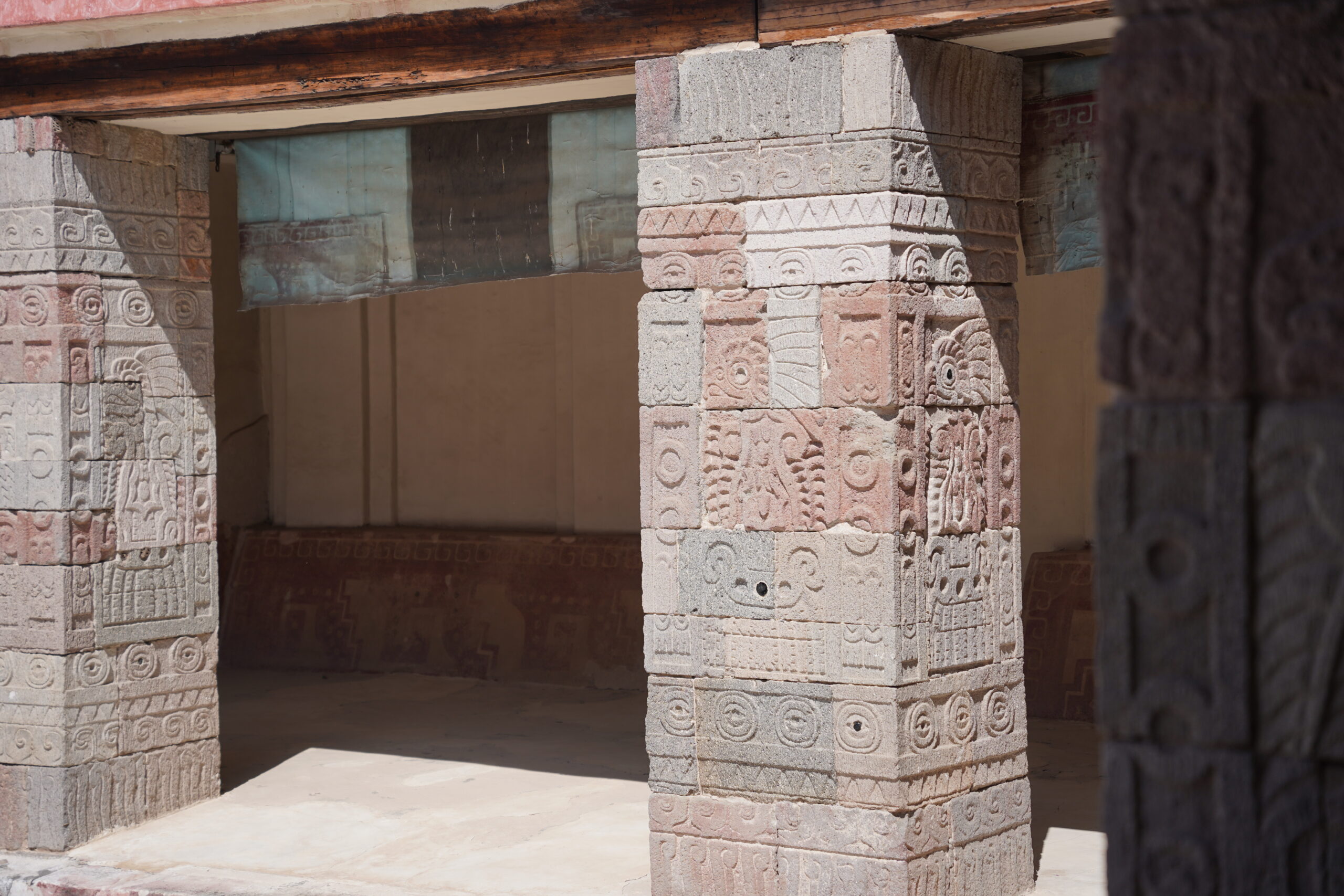 こんなにも美しくて神秘的な古代神殿がピラミッドの裏に隠されているなんて全く思いもよらなかったので、本当に古代の世界に精神が埋没してしまったような感覚に陥ってしばらく動き出すことができないほどに感動した。これまでの「太陽のピラミッド」や「月のピラミッド」は壮大だったものの緻密な彫刻や模様などは特に見られなかったが、「ケツァルコアトルのピラミッド」へ来て初めてぼくの好きな古代芸術に触れられた思いがして、わざわざここまで歩いて来て本当によかったと感じた。ぼくは旅をする中でも、なかなか人に見つからないような秘境の風景や秘境温泉に出会うと感動してしまうが、ここ「ケツァルコアトルのピラミッド」はまさに、テオティワカンで一番素晴らしいのに一番人に見つからないように隠されている、知る人ぞ知る秘密のスポットだと感じた。