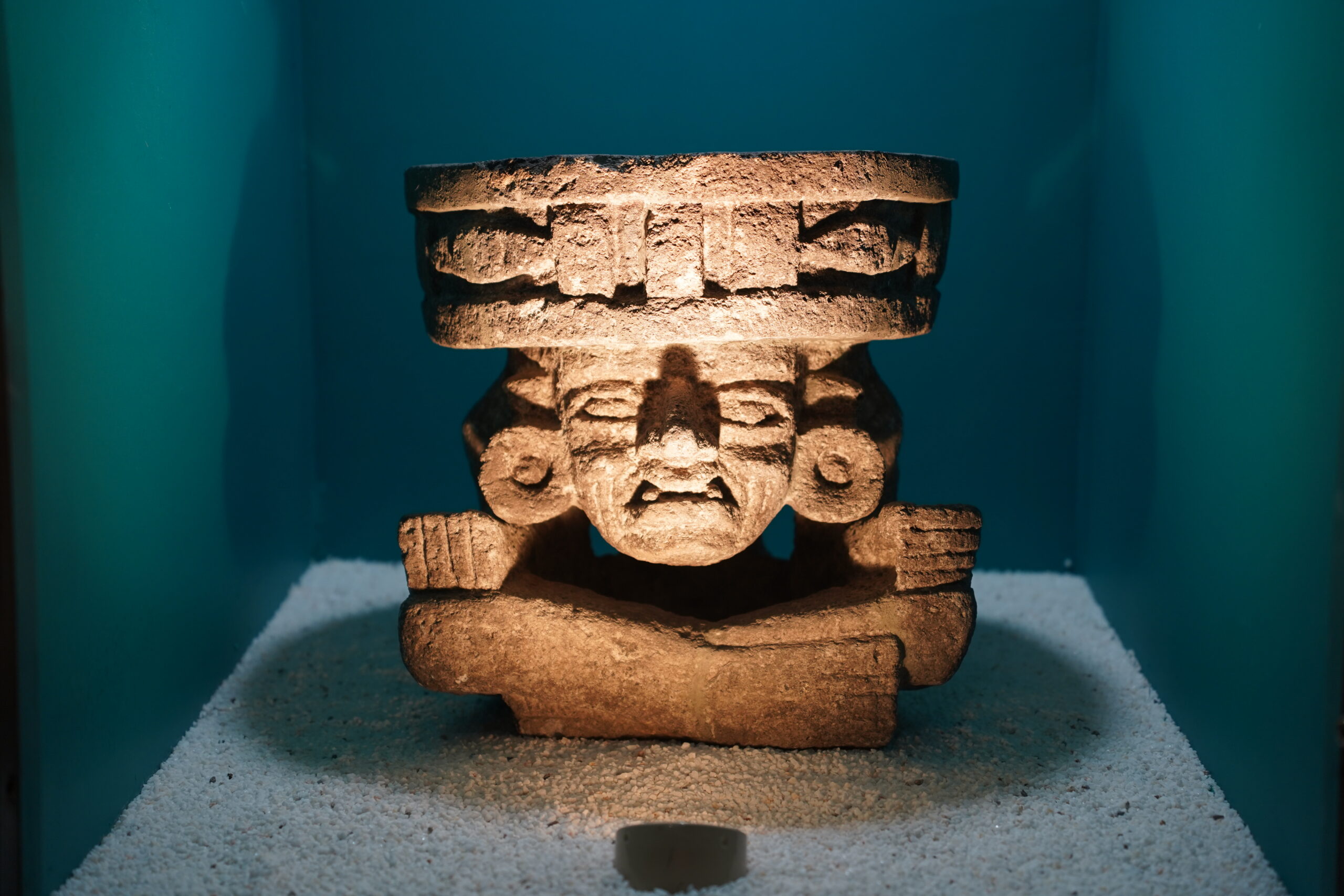 ぼくが気に入ったのは「ウェウェテオトル」という火の神の像だった。お爺さんがあぐらをかいて何かに押しつぶされているような独特な表現は、タイ寺院の鬼神を彷彿とさせる。