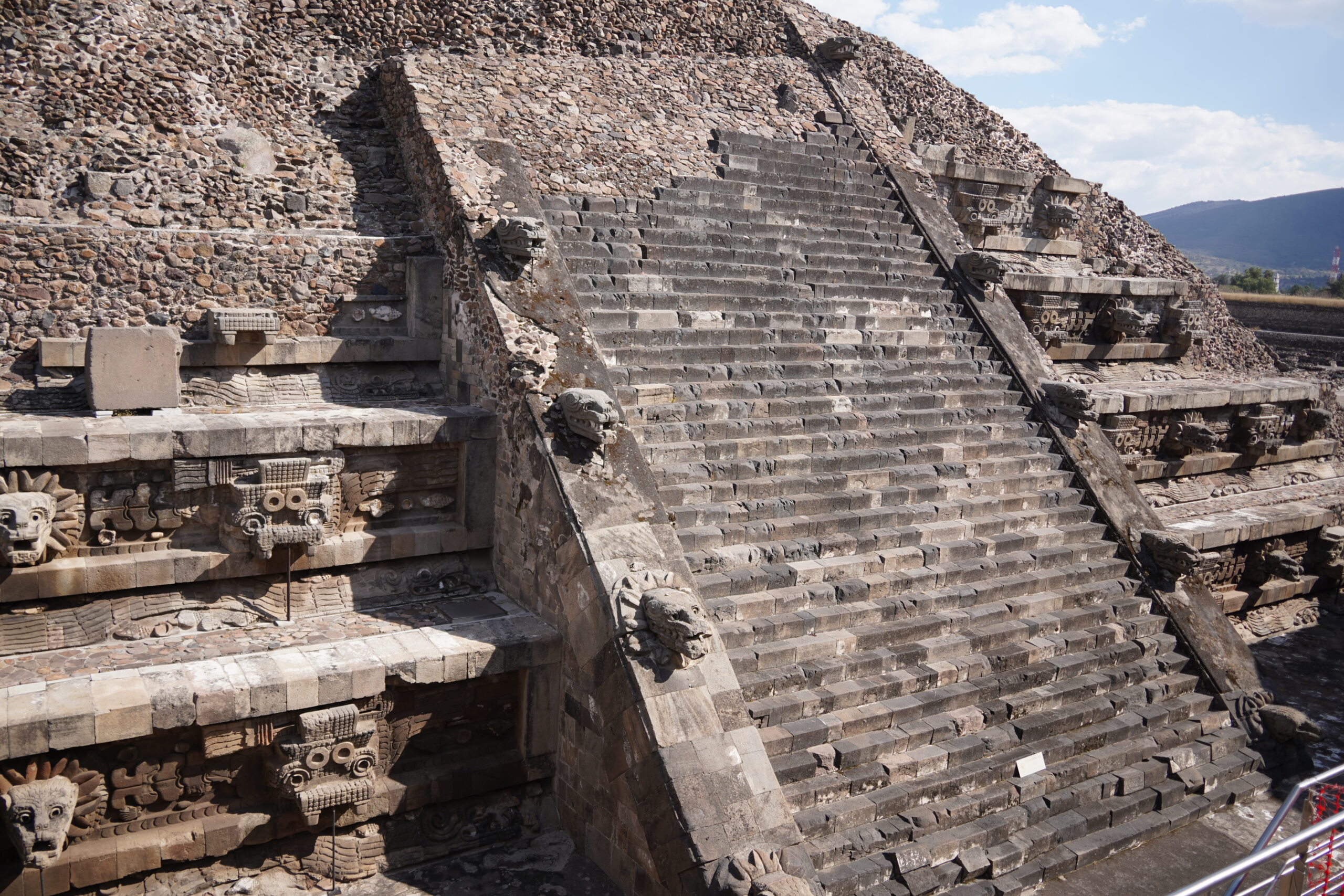 「ケツァルコアトルのピラミッド」は距離が近いのに壮大で、全体の写真を撮るのが難しかった!全体像を撮影したYouTube動画はこちら!