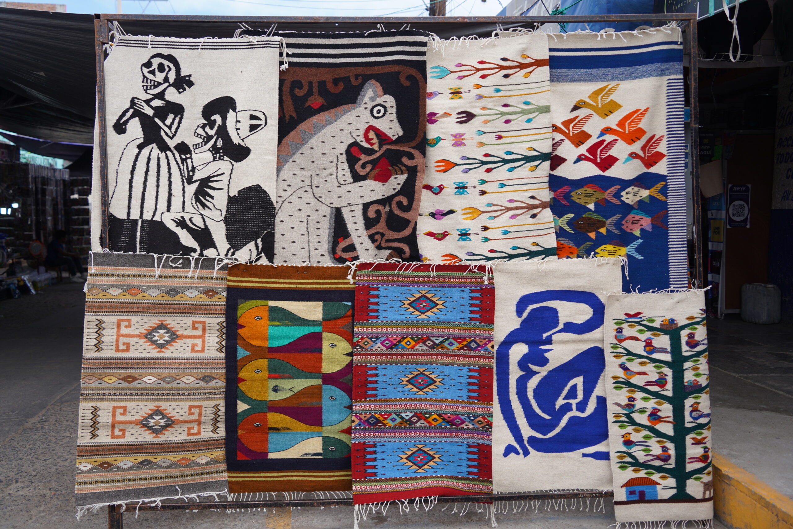 残念だったのはオアハカがぼくの中南米を巡る旅の第一ヶ国目であるメキシコのしかも第一ケ所目の街だったので、ここで売っているお土産品がここでしか買えない先住民の珍しい品物なのか、どこにでも売っているようなここで買うほどでもないほどの商品なのか見分けが付かなかったことだ。特に不思議な模様をした独創的な布製品などは買いたい気持ちも多少あったが、どこにでもあるのかここにしかないのか全くわからずに結局買わず終いだった。メキシコ一周をした今になって振り返ると、トラコルーラの布製品は他にはない特別な商品だったので、そんなに高くもなかったし買ってもよかったかもと思う。羊毛を用いたタペテというラグは、オアハカの特産品なのだそうだ。