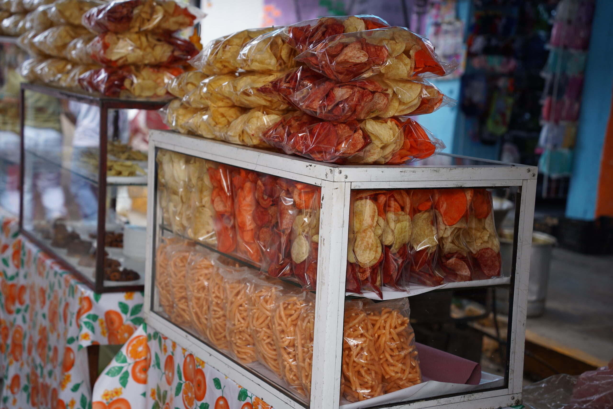ローカルバスは広い国道で降ろされるが、そこから町中に歩いていけば自然と青空市場を通ることになる。