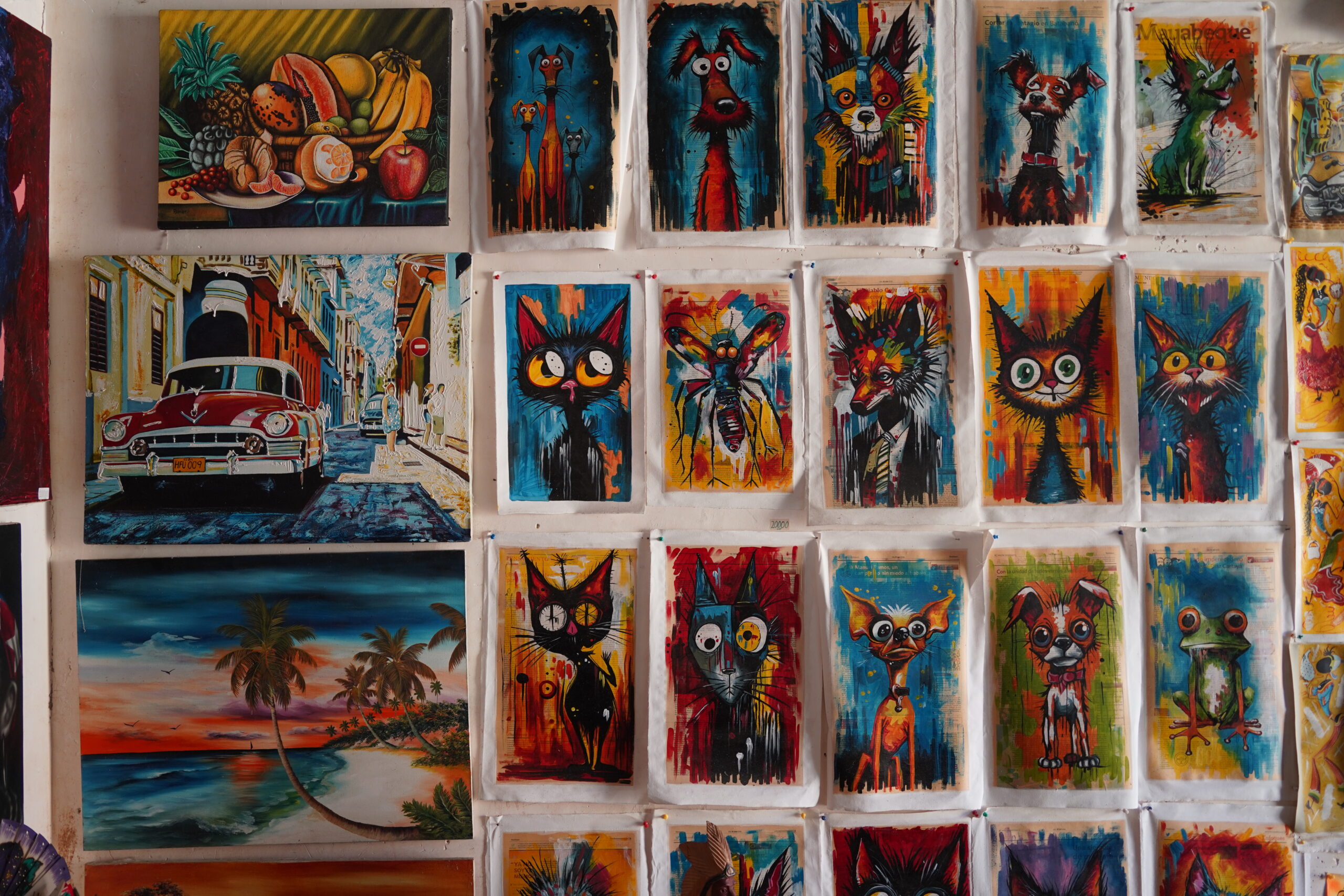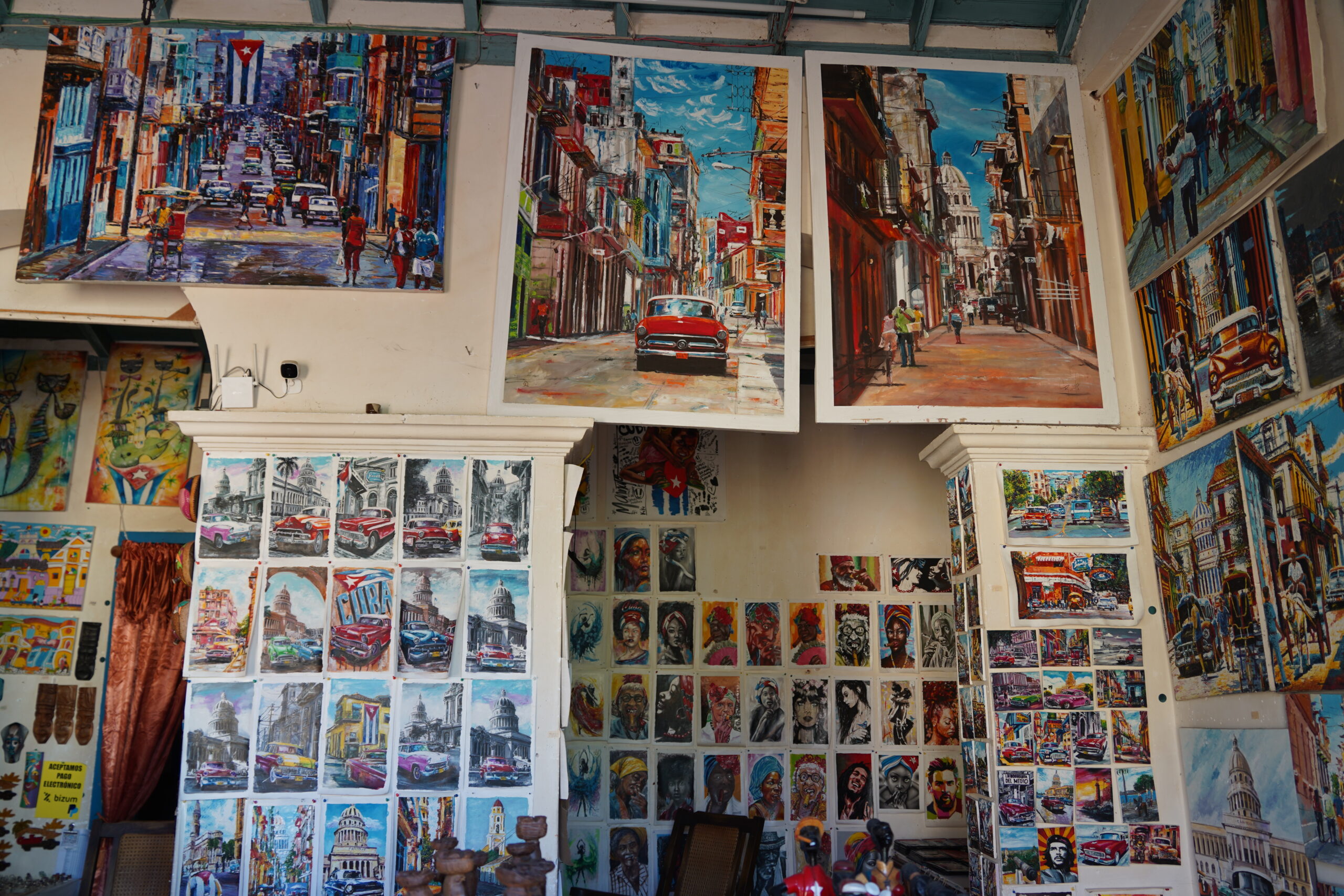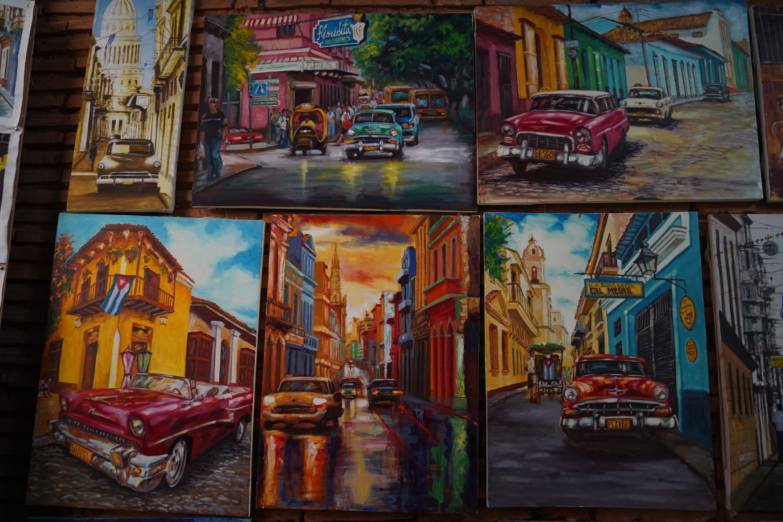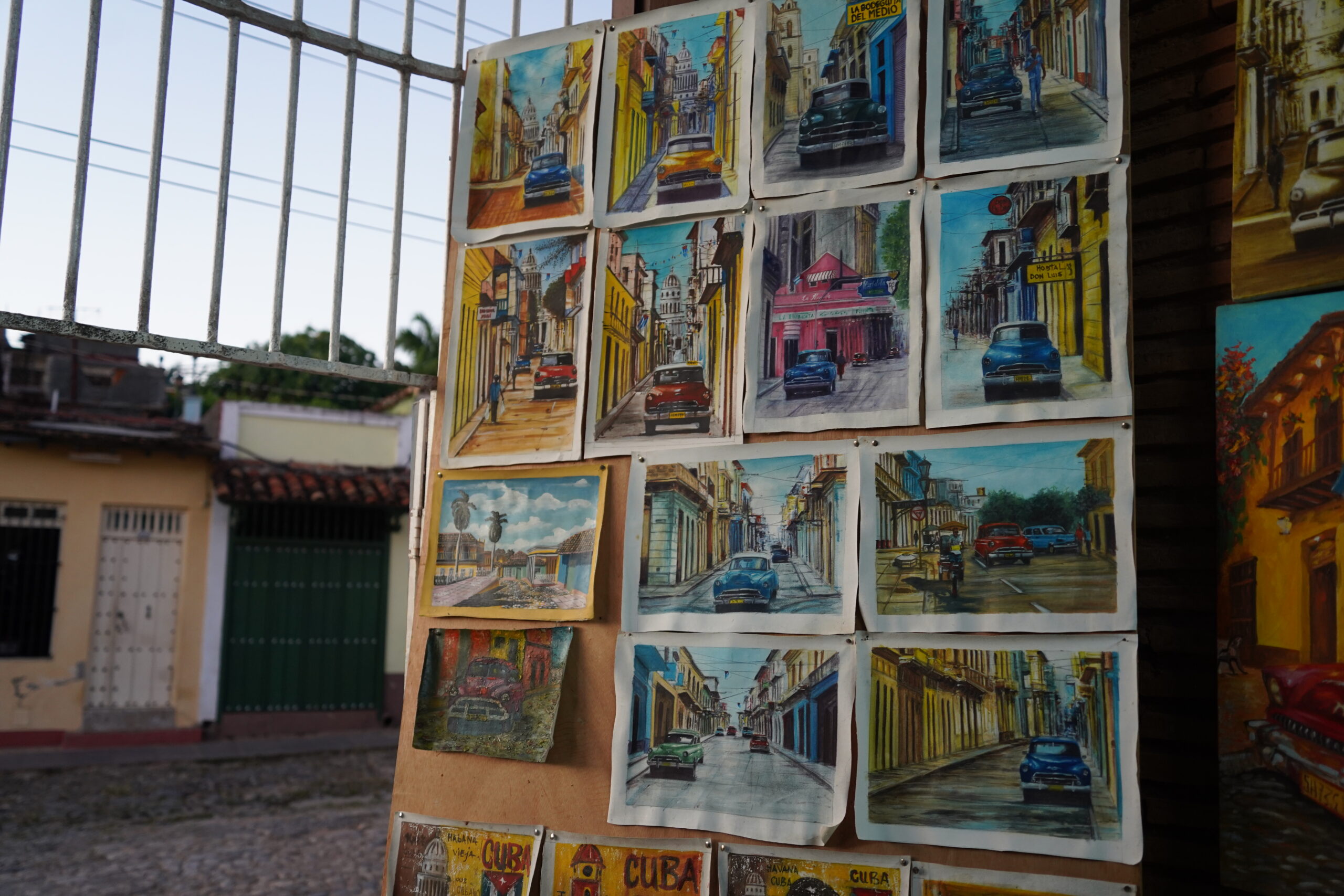 キューバのお土産で最も心惹かれたのは、レトロな車とキューバの街並みが描かれている独特な絵画。トリニダードは芸術的な街で多くのアーティストが住んでいるらしく、絵画のお土産屋さんも豊富にあった。