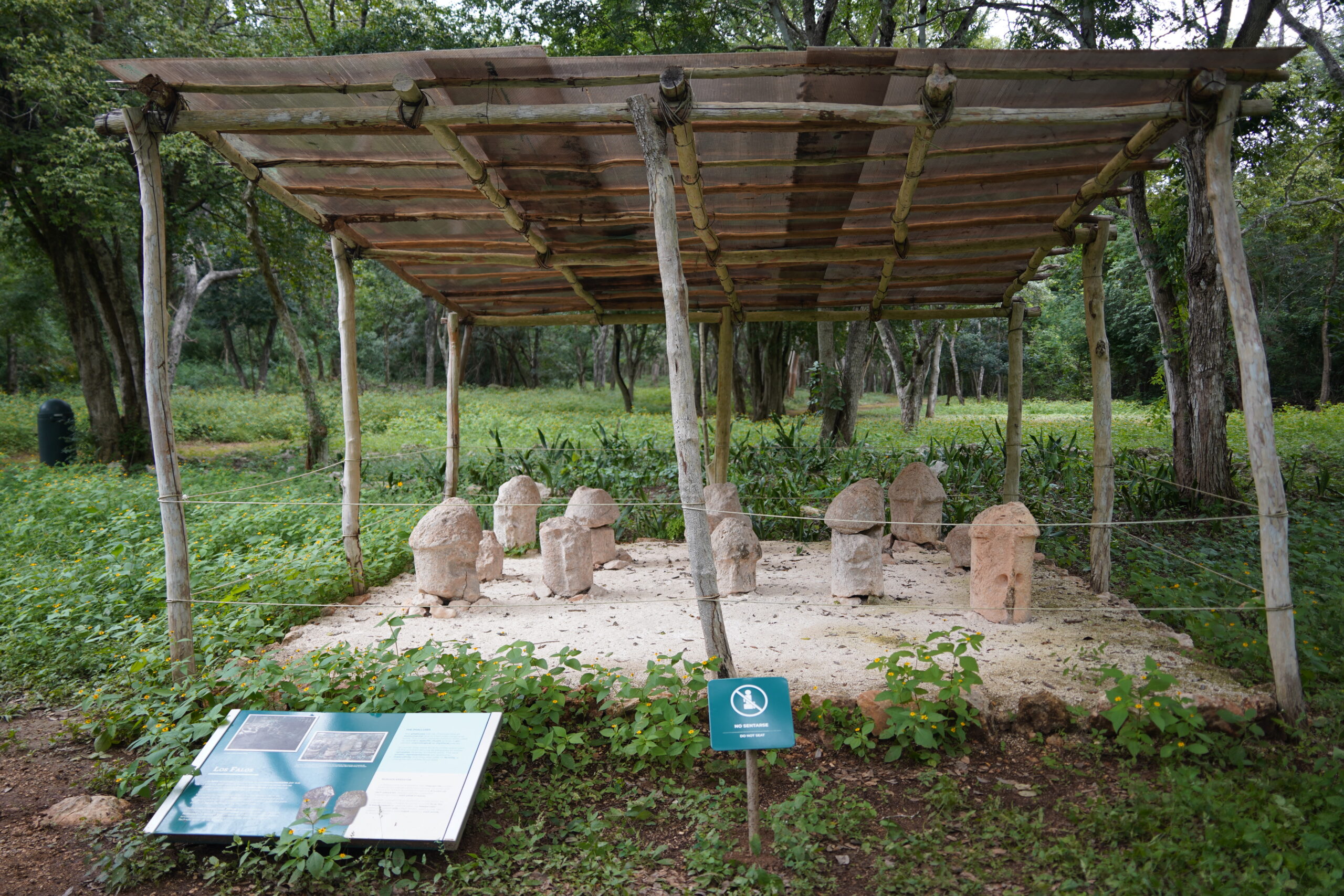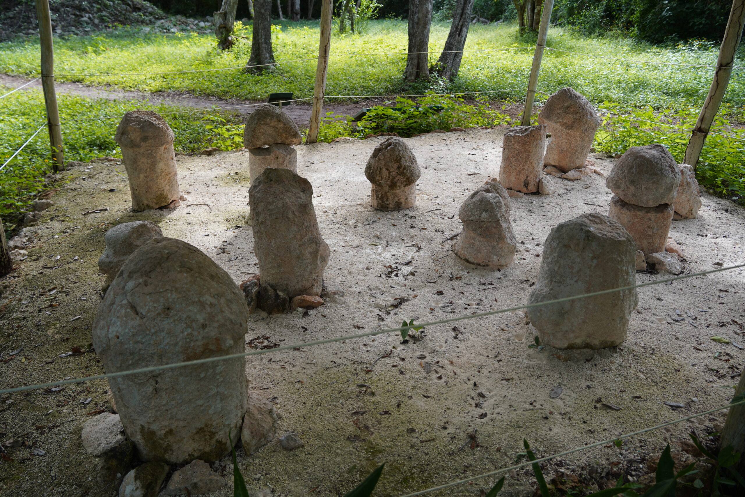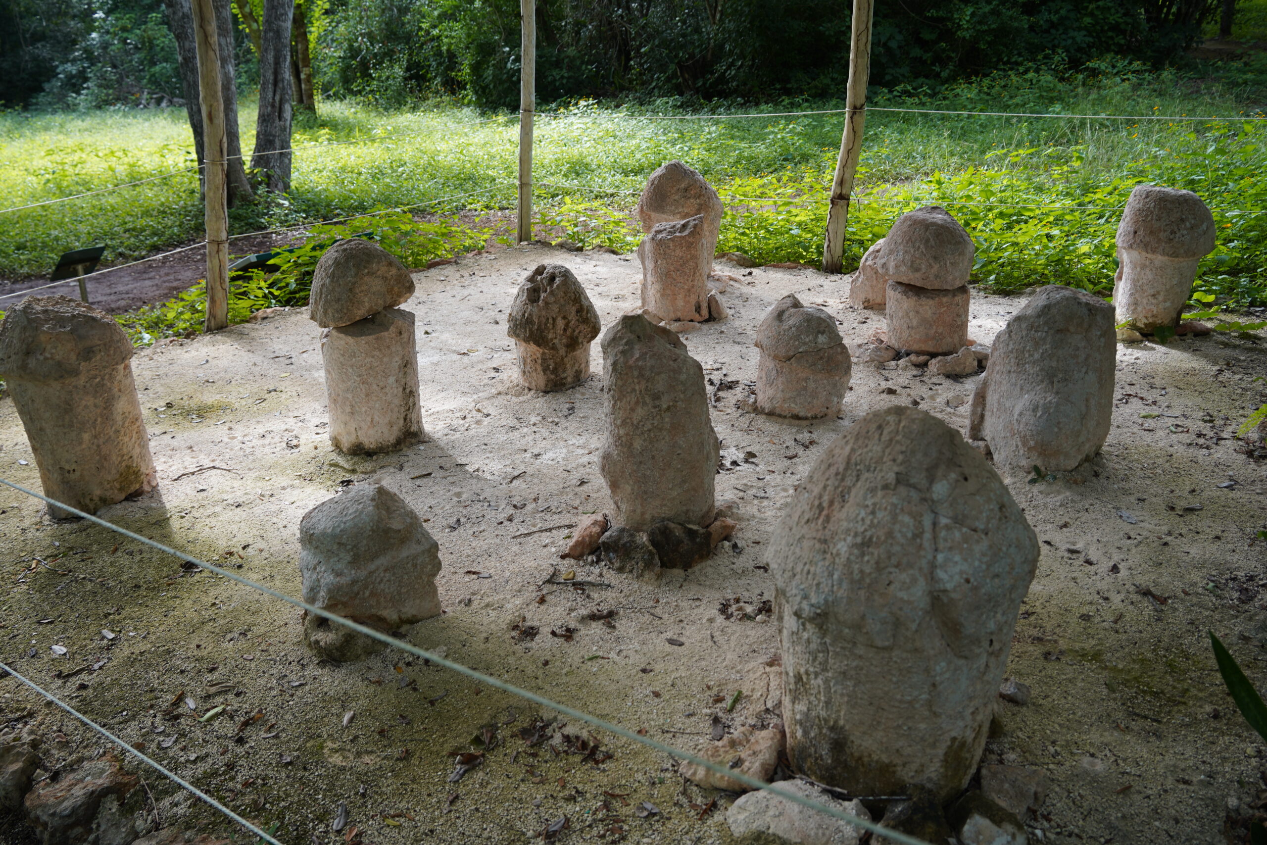 ま、ま、まさかの大地に並べられた無数の男根像!えーまさかこんなメキシコの森の中で出会ってしまうなんて!確かにさっきまでウシュマルには男根崇拝の気配がそこはかとなくしていたが、それはピラミッドの前の石棒とか宮殿の前の柱とか、全ての観光客が訪れる場所にあったのに、こんな風に誰も来ないような森の中の隠された場所でひとりきりで巡り会ってしまうなんて、何だか男根像に呼ばれた気さえしてしまった。