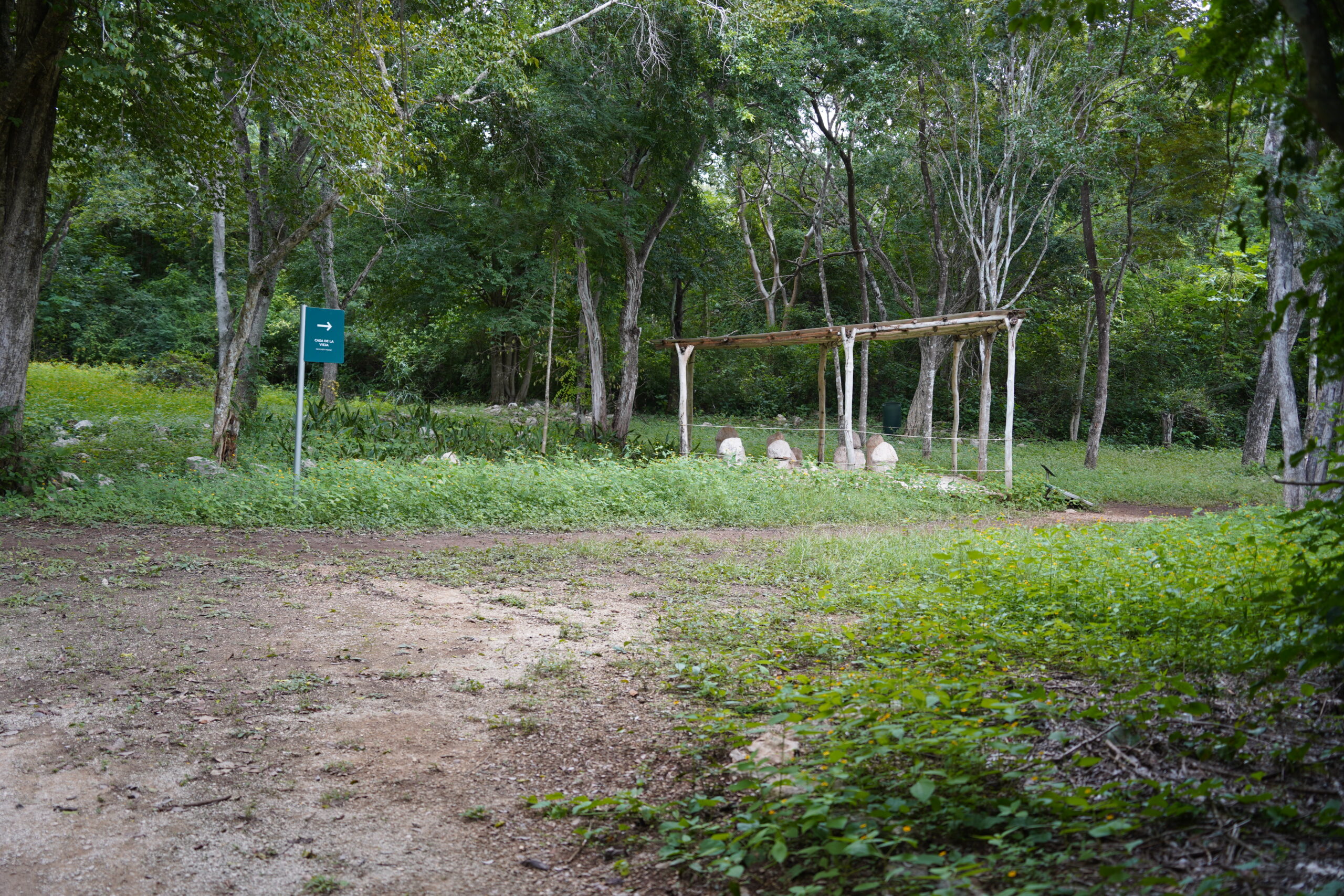 無数の男根像の前には解説の看板が確かにあってここは観光地に違いないのだろうけれど、案内の地図にも乗っていないし本当にウシュマルを訪れた人がほとんど見逃すような場所なのではないかと予想した。それほどに誰も来ないような場所だったからだ。看板にはこれらの石棒が男根であることが明記されており、ぼくの勘違いでないことは明白だった。確かに「魔女のピラミッド」や「総督の宮殿」の前の石棒や柱は、まぁ男根と言われればそうかもしれないしもしかしたらそうじゃないかもしれないという不確かな印象だったが、この森の中に隠されている石棒群は誰が何と言おうと男根であるという気配が高まっていた。