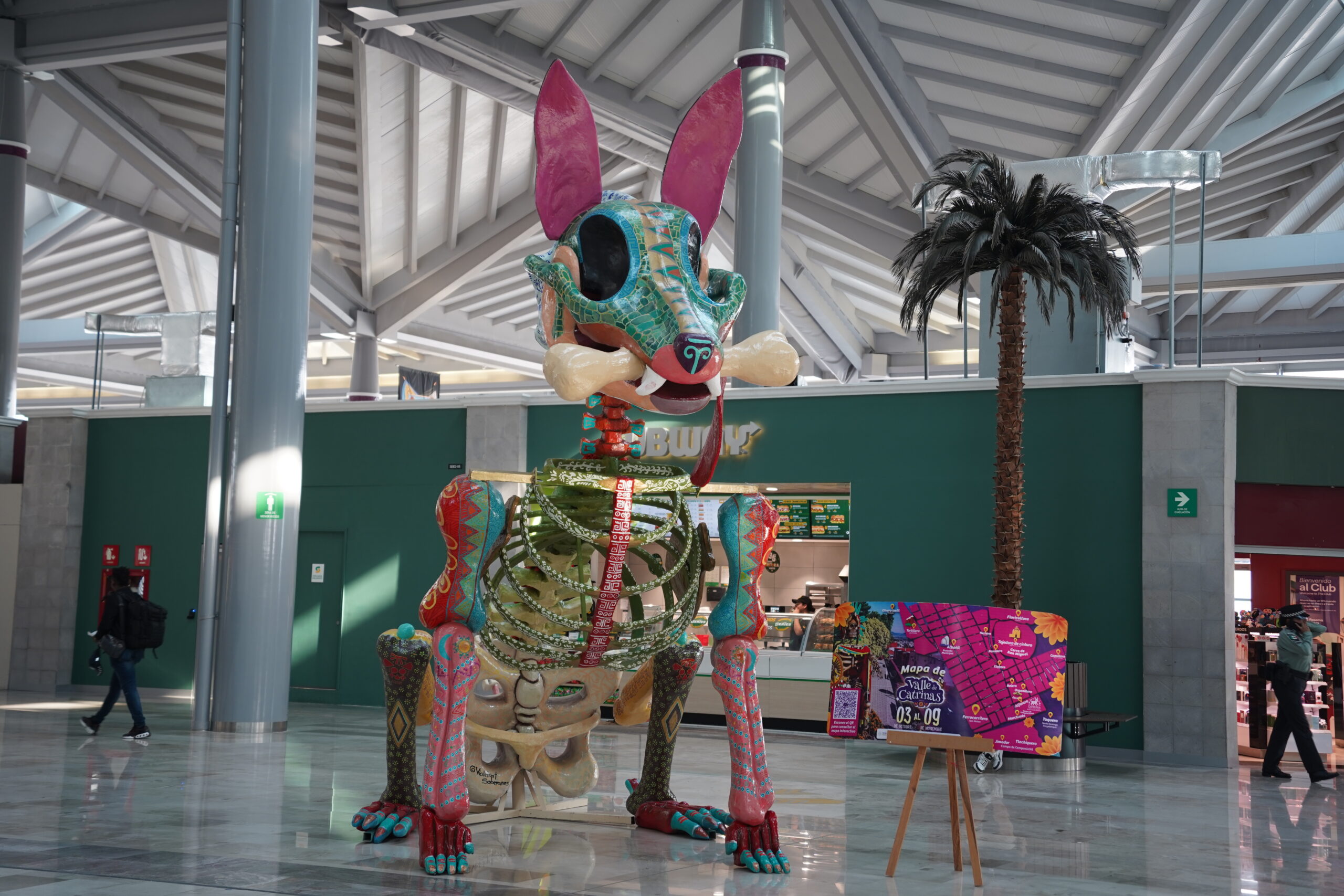 空港内に死者の日の祭壇が供えられていたり、メキシコシティの国立考古学博物館の目玉であるアステカカレンダー(太陽の石)のレプリカが中心に鎮座していたり、メキシコの有名な民芸品のお土産である巨大なアレブリヘが聳え立っていたりして、メキシコらしい遊び心が満点の空港で楽しかった。