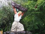 高千穂は「古事記」や「日本書記」などの日本神話の伝説が残っている地域で、夜神楽でもその伝説の中のひとつ「天岩戸伝説(あまのいわとでんせつ)」がメインとして演じられていた。「天岩戸伝説」とは、弟のスサノオが地上で大暴れして仕方がないので姉のアマテラスが悲しみのあまり天岩戸という岩に閉じこもってしまったという物語だ。アマテラスとはすなわち太陽のことであるので、アマテラスが岩に閉じこもってしまったことにより世界は闇に満たされ、次々と悪いことが起こった。